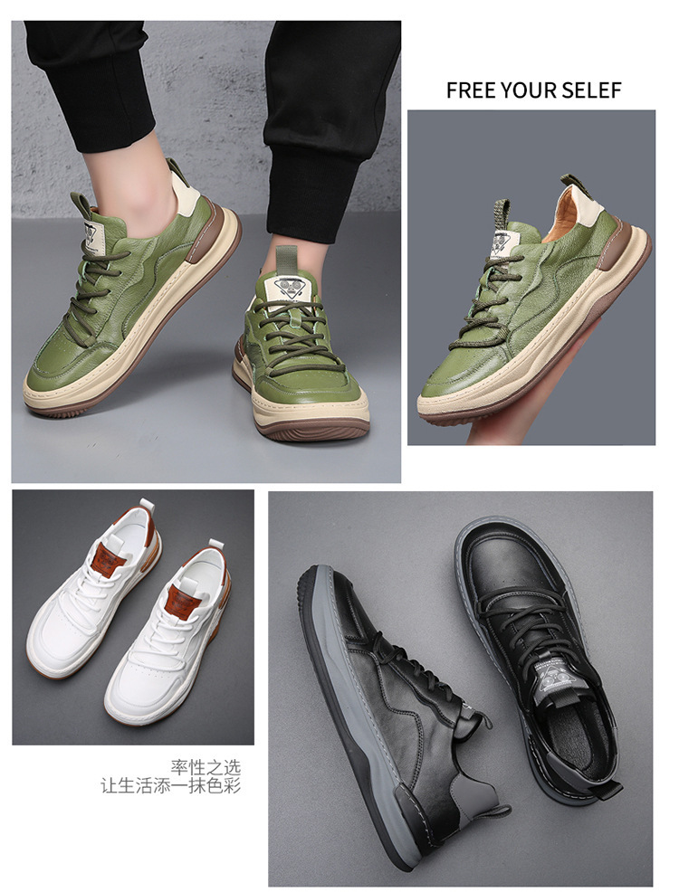 소가죽 남성 신발 2025 가을 신상 틸트 헤드 광대 신발 트렌디한 부드러운 가죽 통기성 다용도 남성용 스포츠 캐주얼 신발