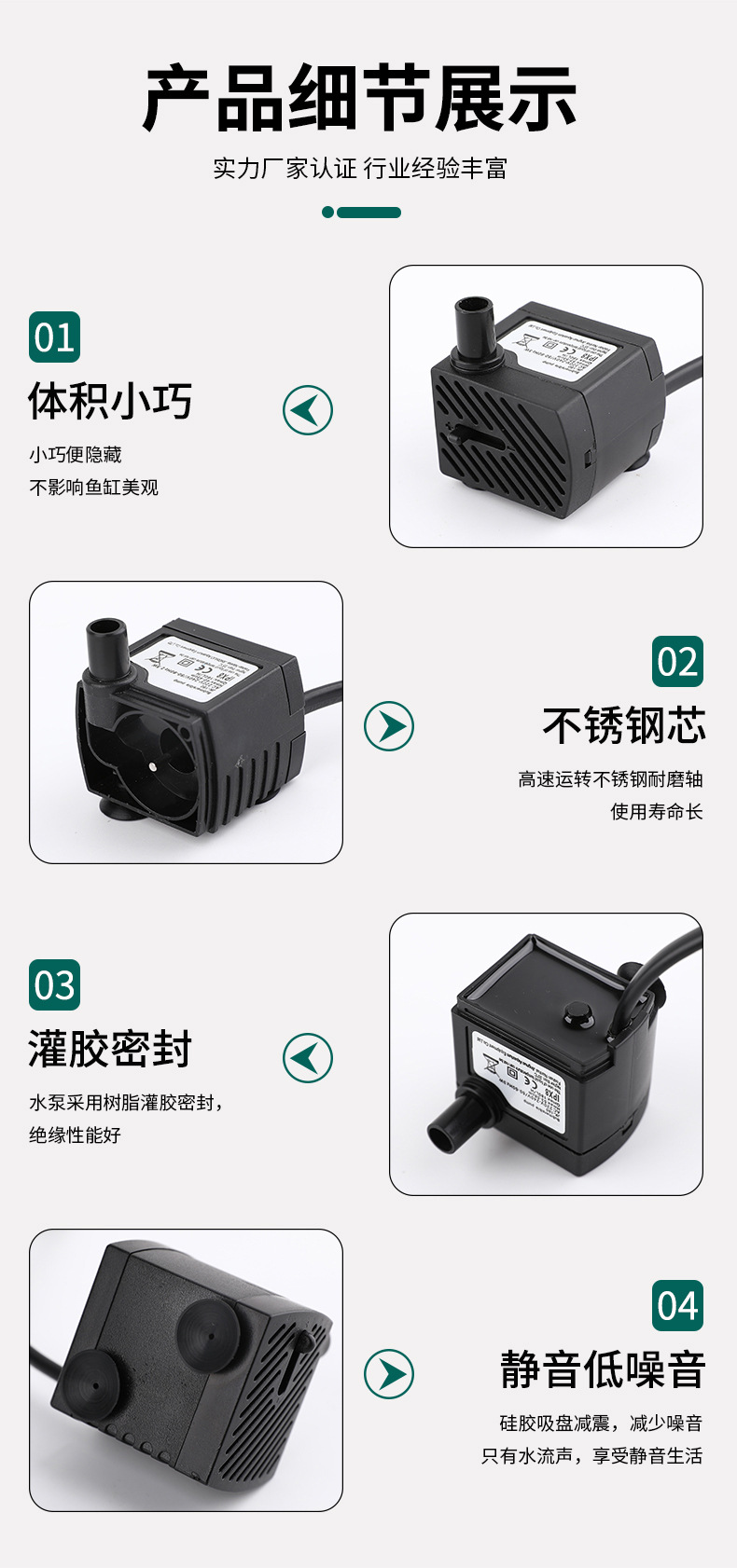 어항 잠수정 펌프 필터 펌프 수륙 양용 물 교환기 순환 워터 펌프 가정용 ABS 어항 침묵 워터 펌프