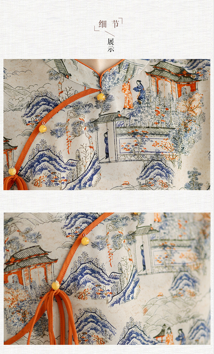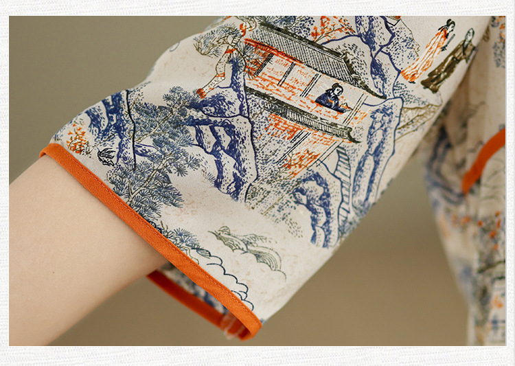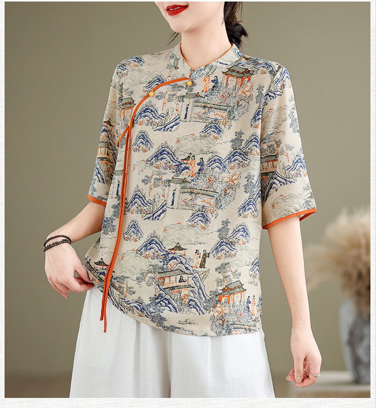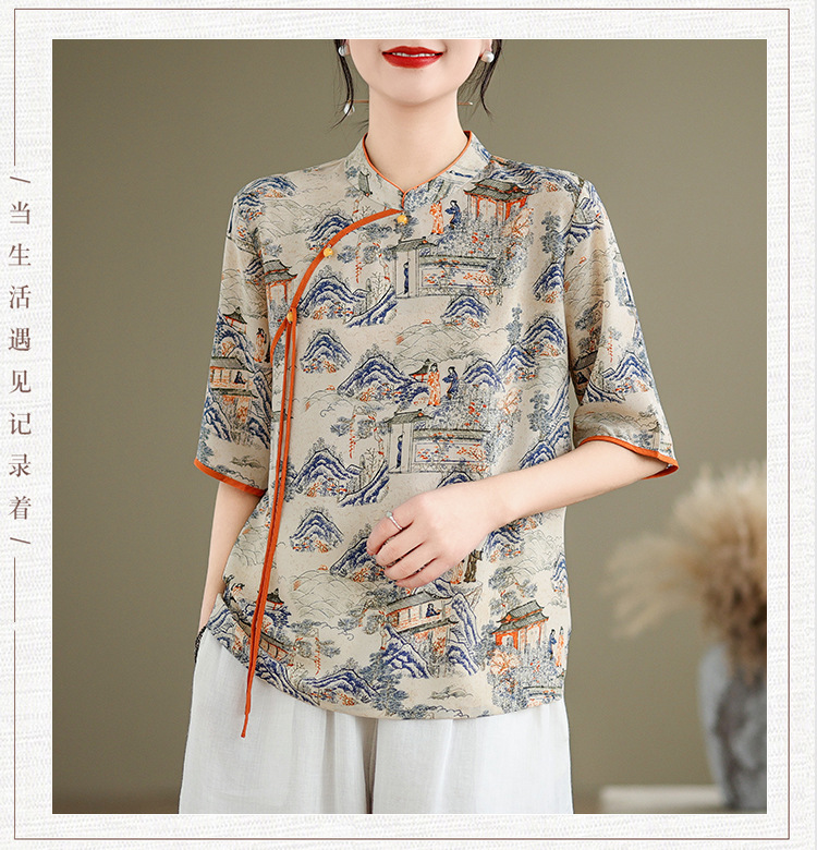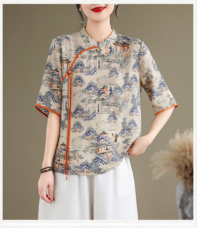 리얼 샷 2024 새로운 중국 인쇄 쉬폰 셔츠 플러스 사이즈 느슨한 패션 국가 스타일 5 소매 최고 여성스토어 가기