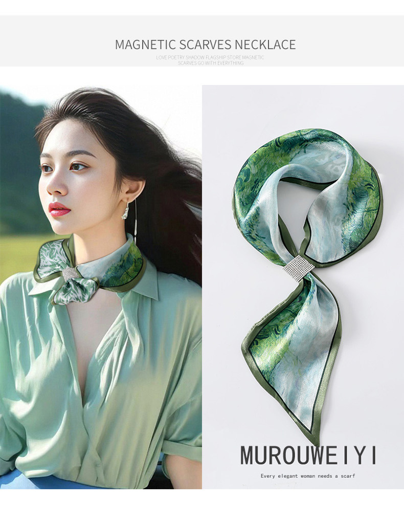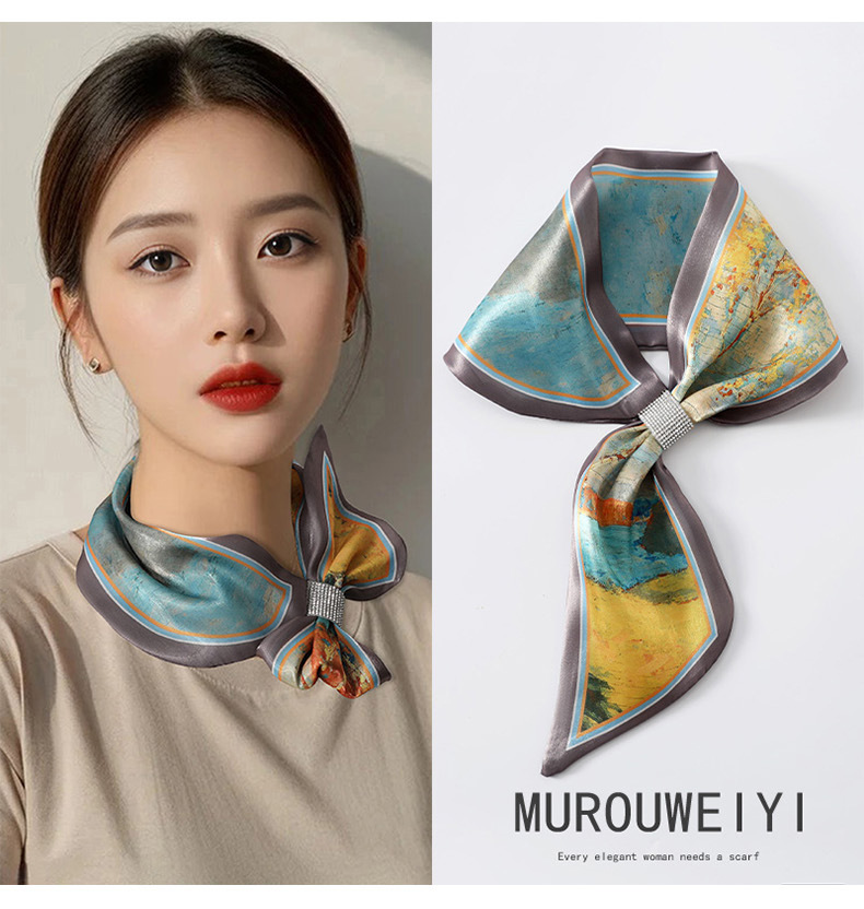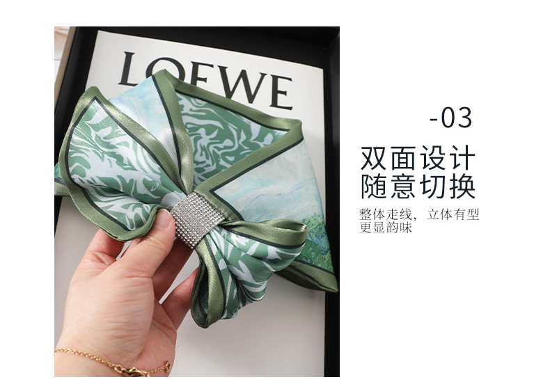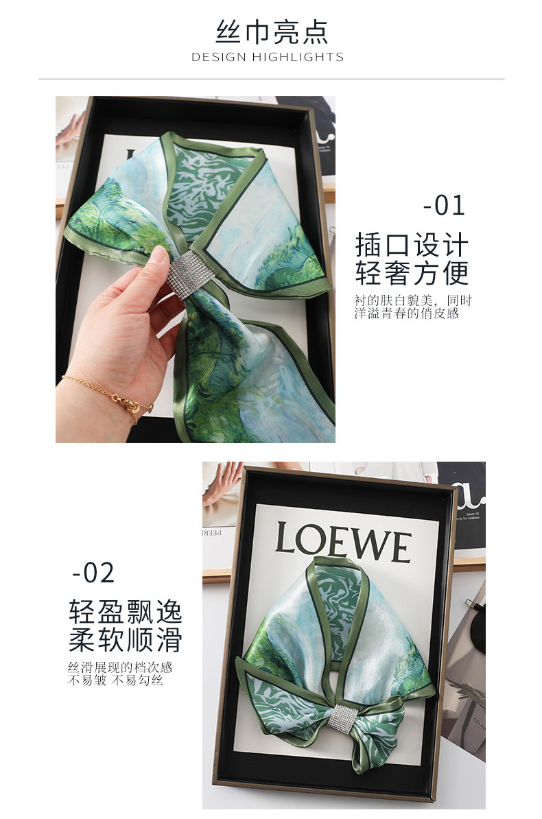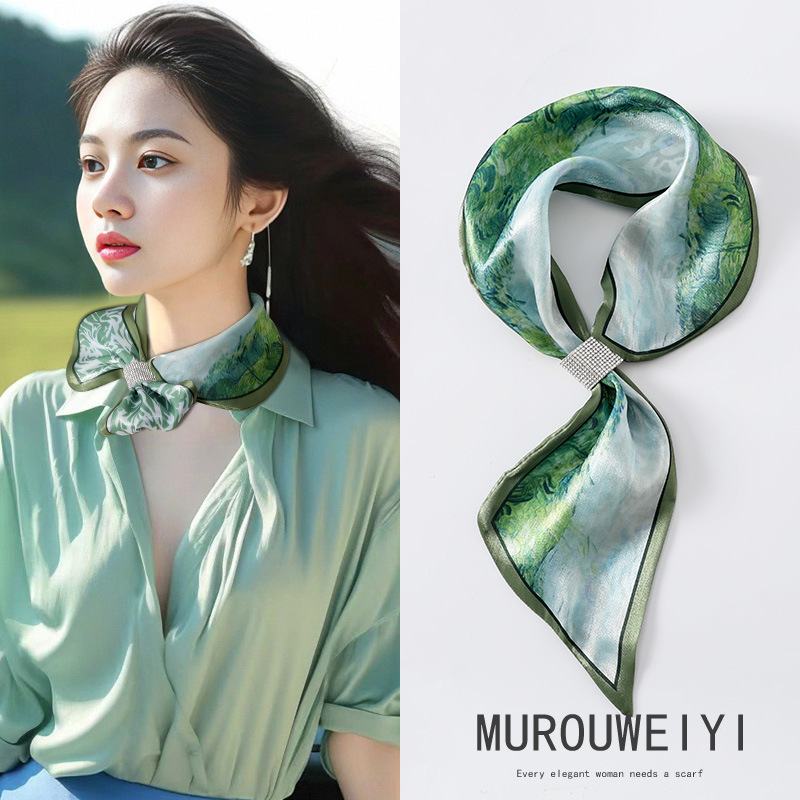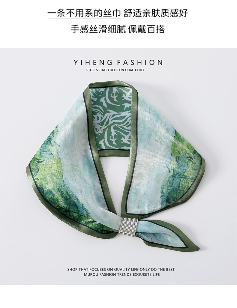• (스트리머 원사) 다크 그린 반 고흐 유화 작은 귀 스카프 13*75cm