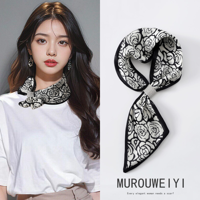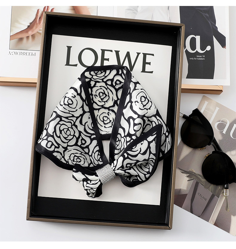 • (스트리머 원사) 검은 잉크 장미 작은 귀 스카프 13*75cm