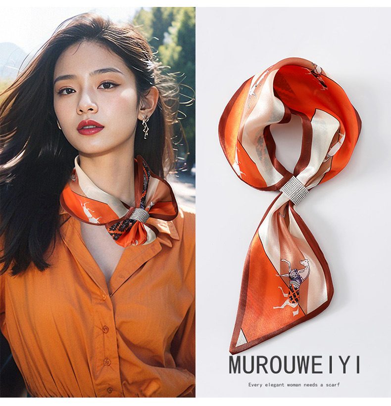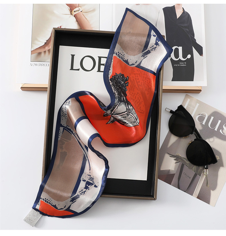 • (스트리머 원사) 오렌지 말 질주 작은 귀 스카프 13*75cm