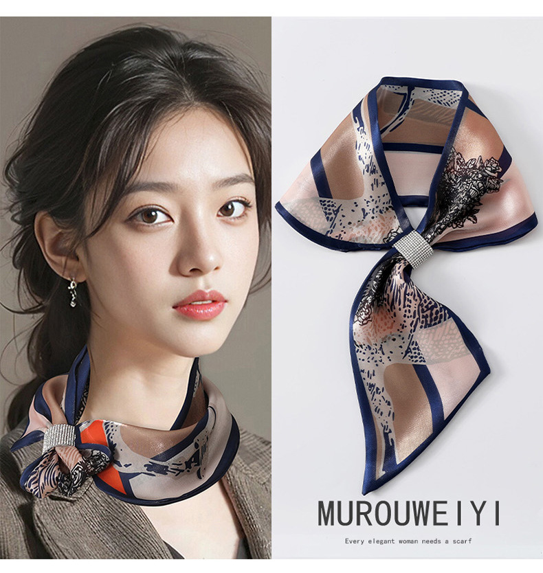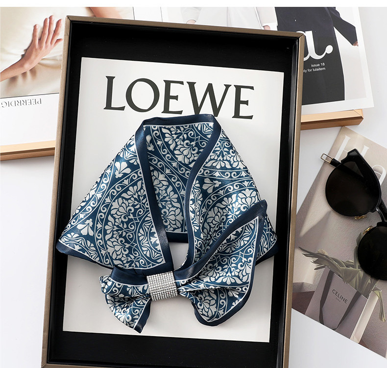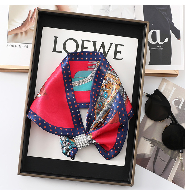 • (스트리머 원사) 해군 붉은 말 장미 작은 귀 스카프 13*75cm