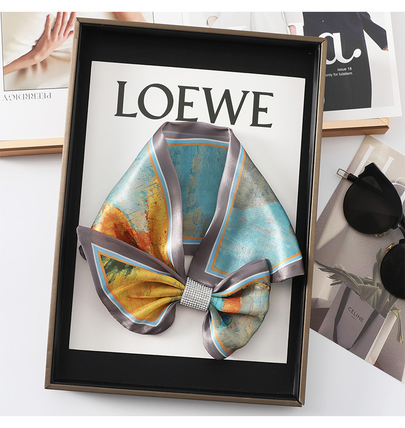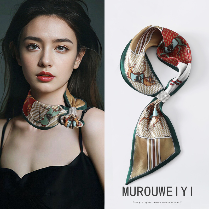 • (스트리머 원사) 골드 레트로 작은 귀 스카프 13*75cm