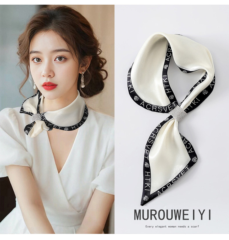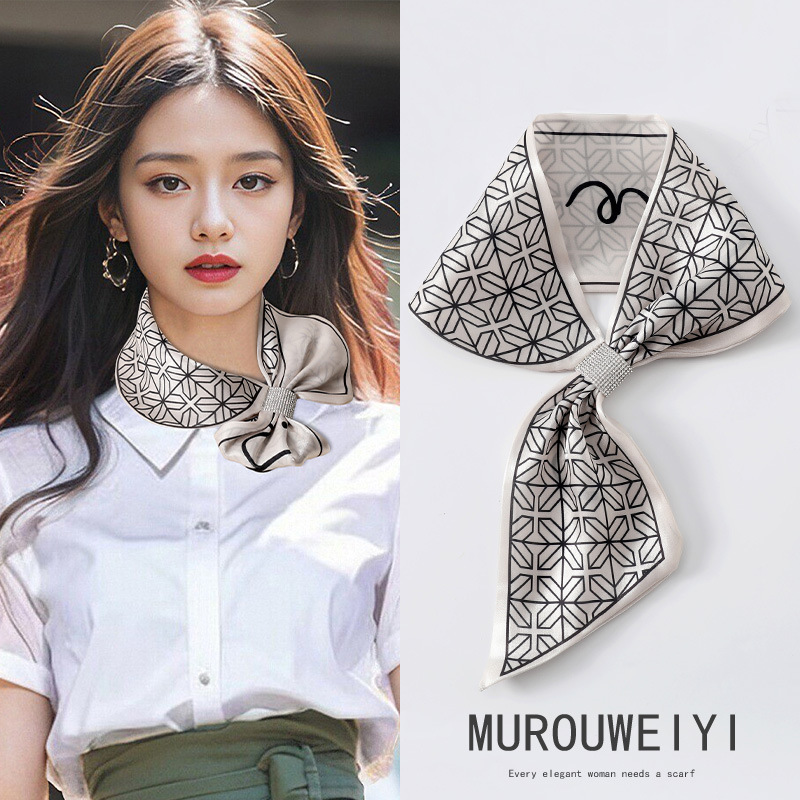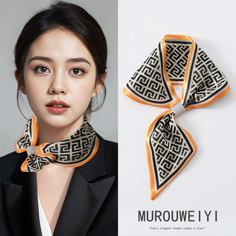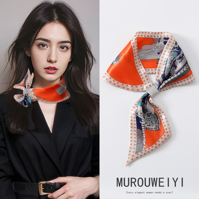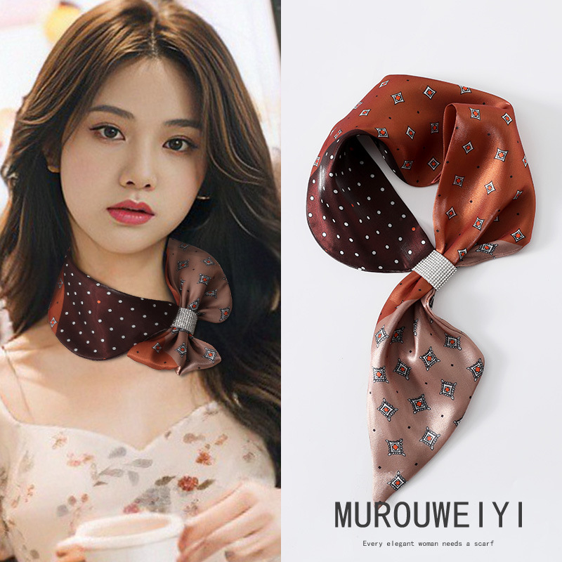 새로운 레트로 더블 레이어 목 보호 목 스카프 장식 타이 백 헤어 밴드 스퀘어 스카프 작은 긴 여자 올 매치