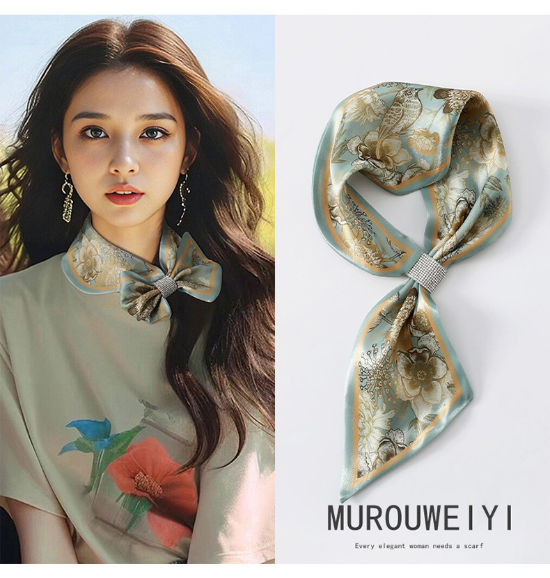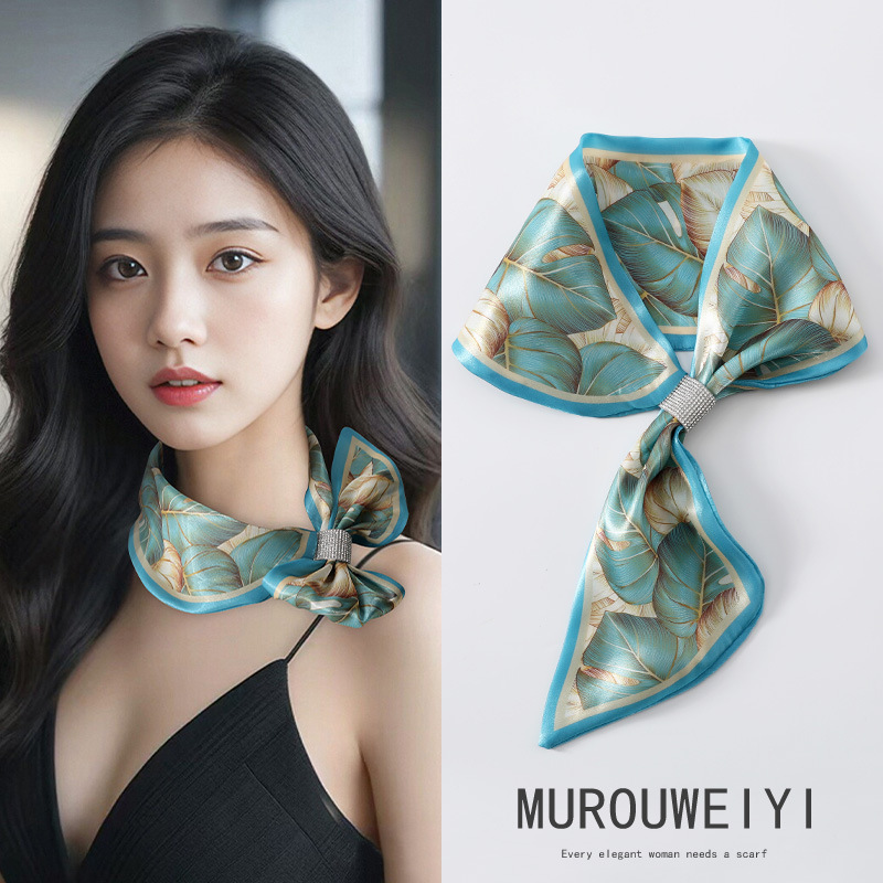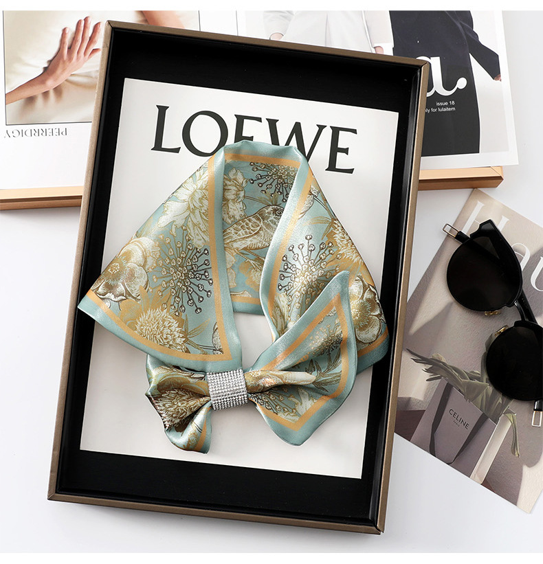 • (스트리머 원사) 라이트 블루 골드 가지 까치 작은 귀 스카프 13*75cm