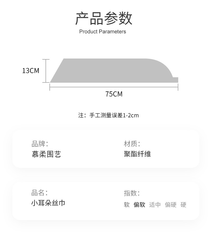 • (스트리머 원사) 살구색 쌀 순수한 바닥 작은 동백 가장자리 작은 귀 스카프 13*75cm