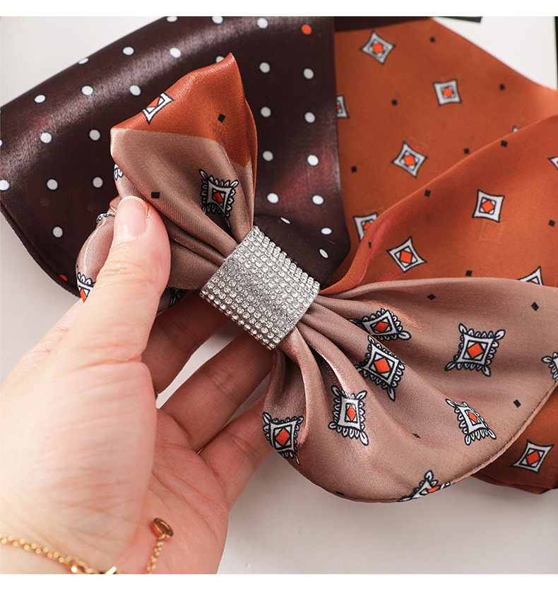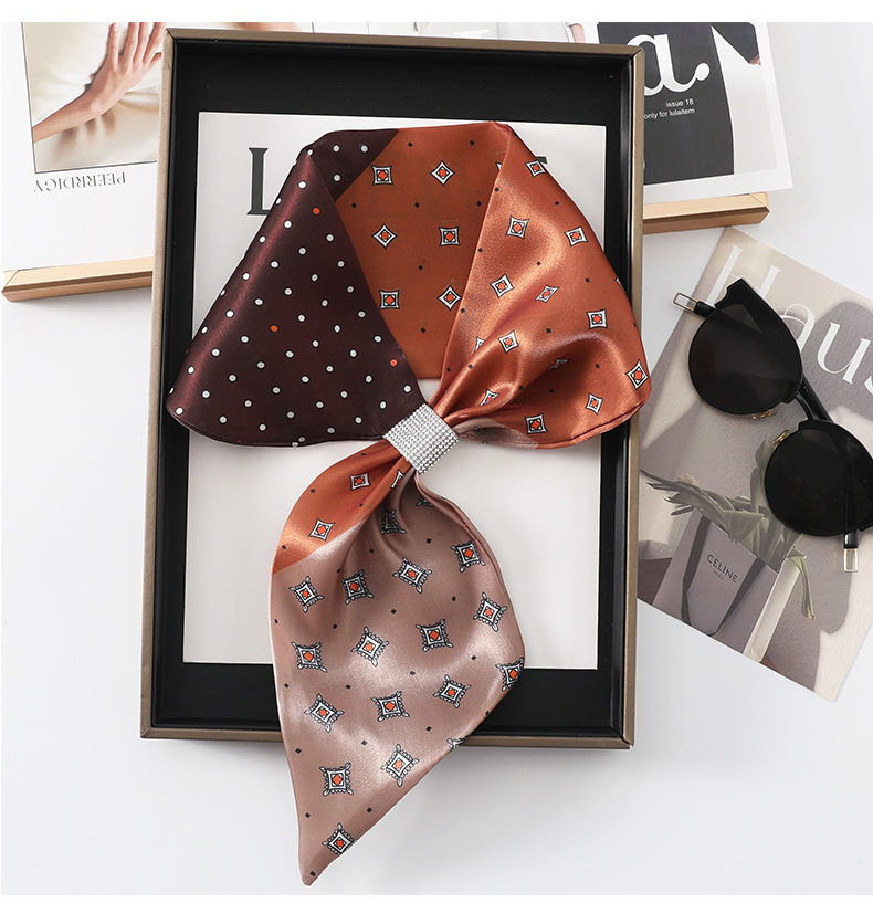 • (스트리머 원사) 다크 브라운 레드 다이아몬드 웨이브 도트 작은 귀 스카프 13*75cm