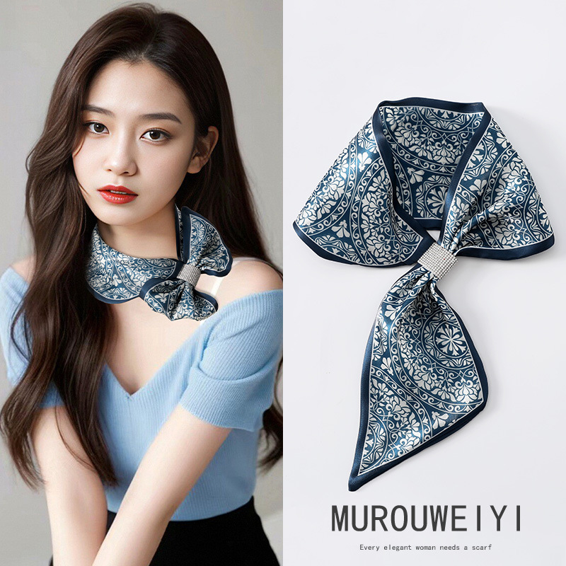 • (스트리머 원사) 한국 파란색과 흰색 도자기 작은 귀 스카프 13*75cm