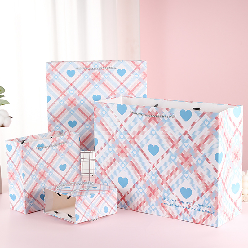 선물 가방 대형 한국 핑크 격자 무늬 선물 종이 가방 선물 가방 생일 핸드백 화장품 포장 가방스토어 가기