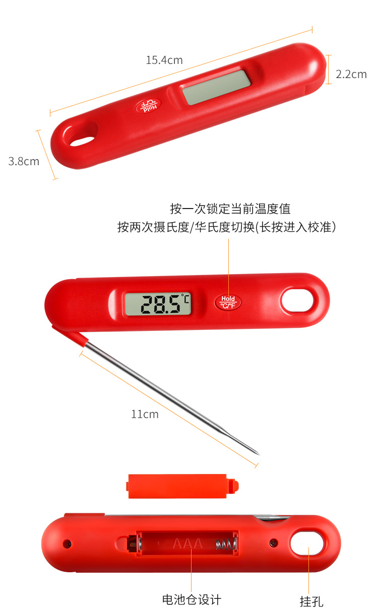 국경을 넘는 인기 상품 접이식 주방 식품 온도계 전자 디지털 디스플레이 바베큐 고기 온도계 우유 물 온도계