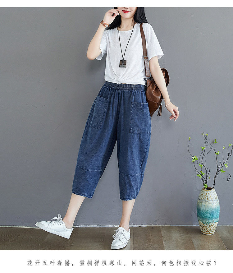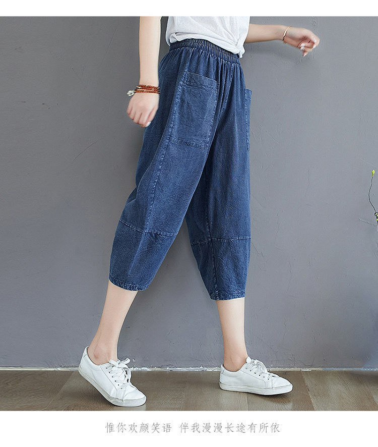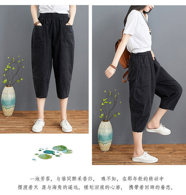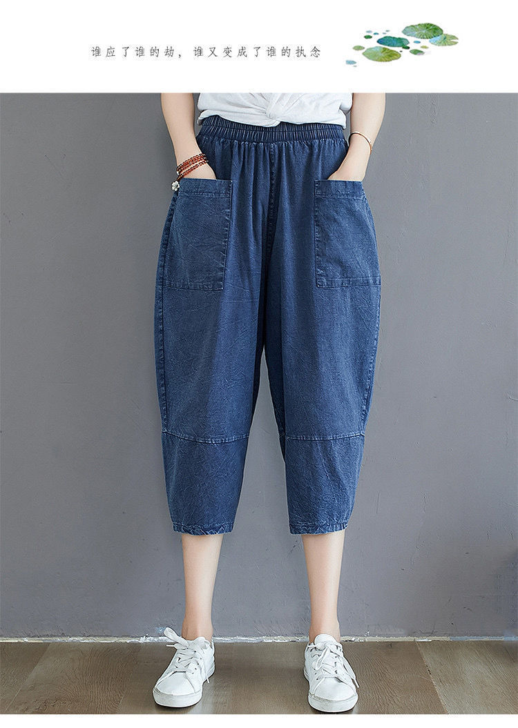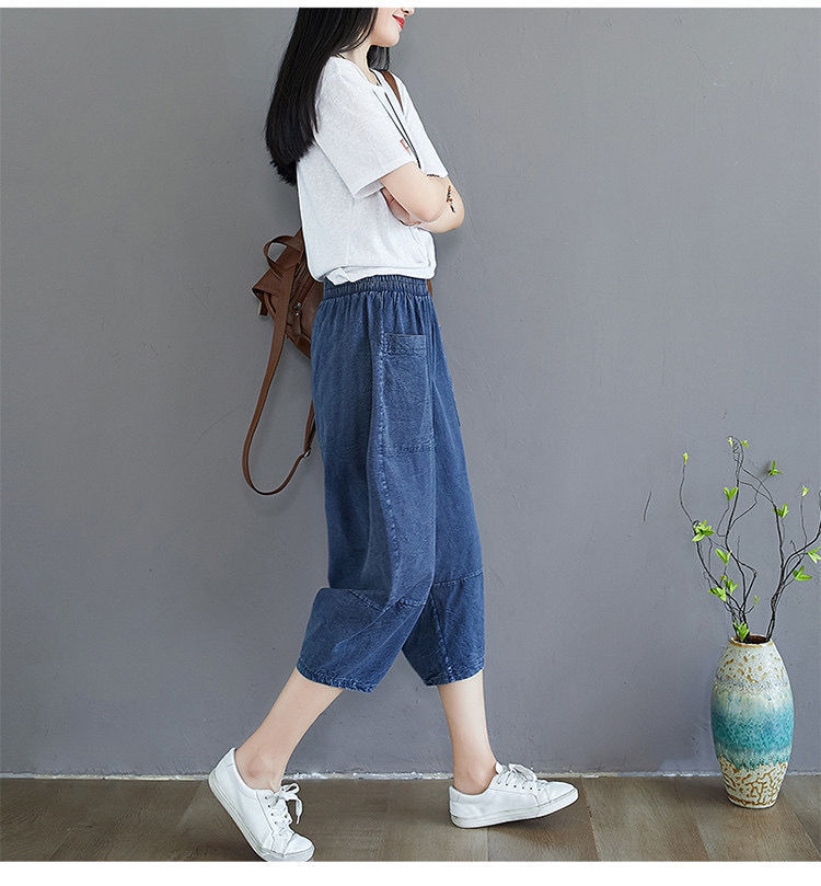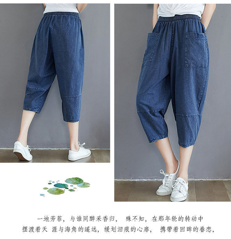 데님 바지 여성의 새로운 여름 넓은 다리 플러스 사이즈 통통한 자매 슬리밍 느슨한 허리 시대 감소 카프리 팬츠 할란 바지스토어 가기