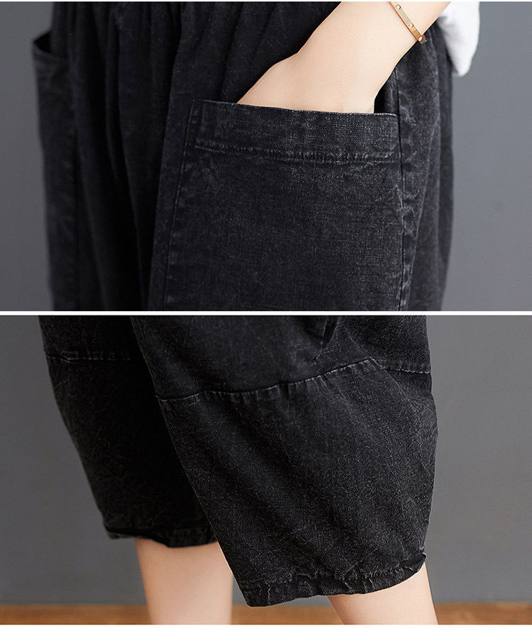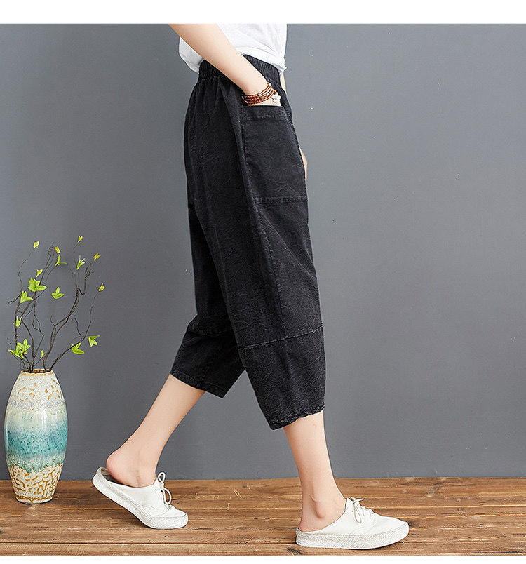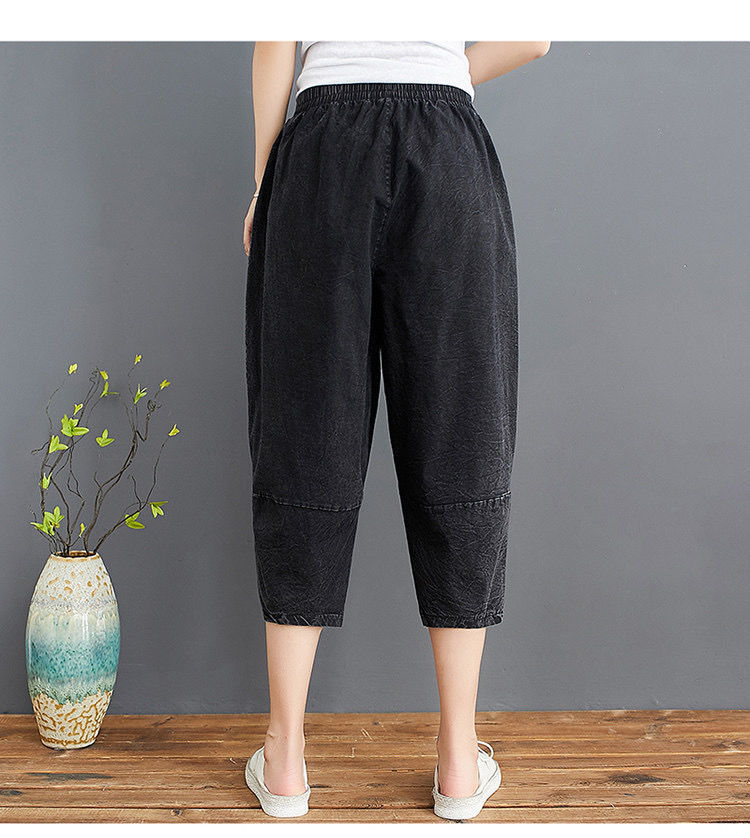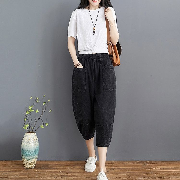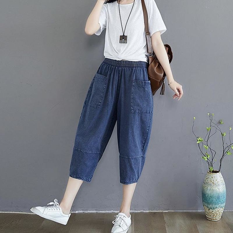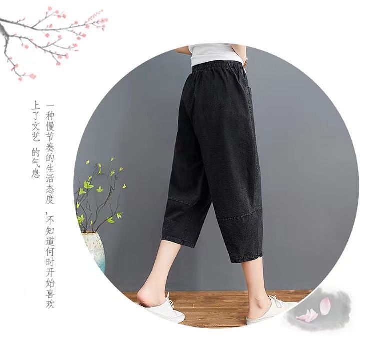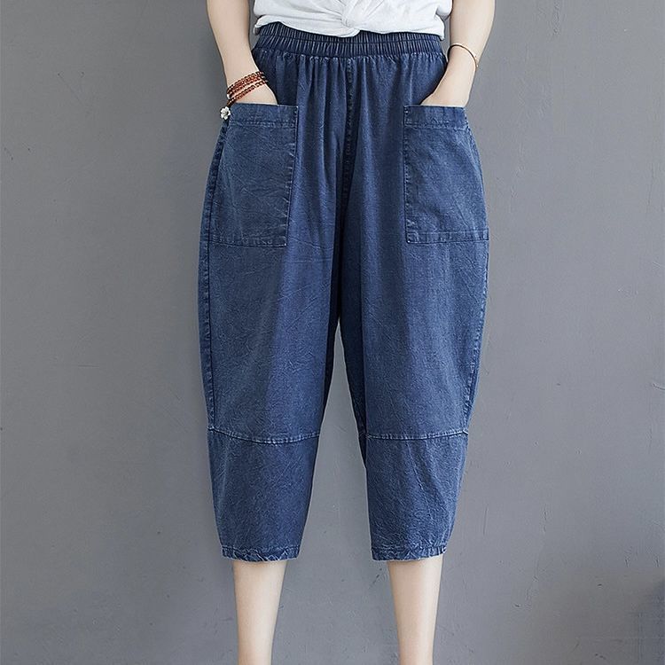 데님 바지 여성의 새로운 여름 넓은 다리 플러스 사이즈 통통한 자매 슬리밍 느슨한 허리 시대 감소 카프리 팬츠 할란 바지스토어 가기
