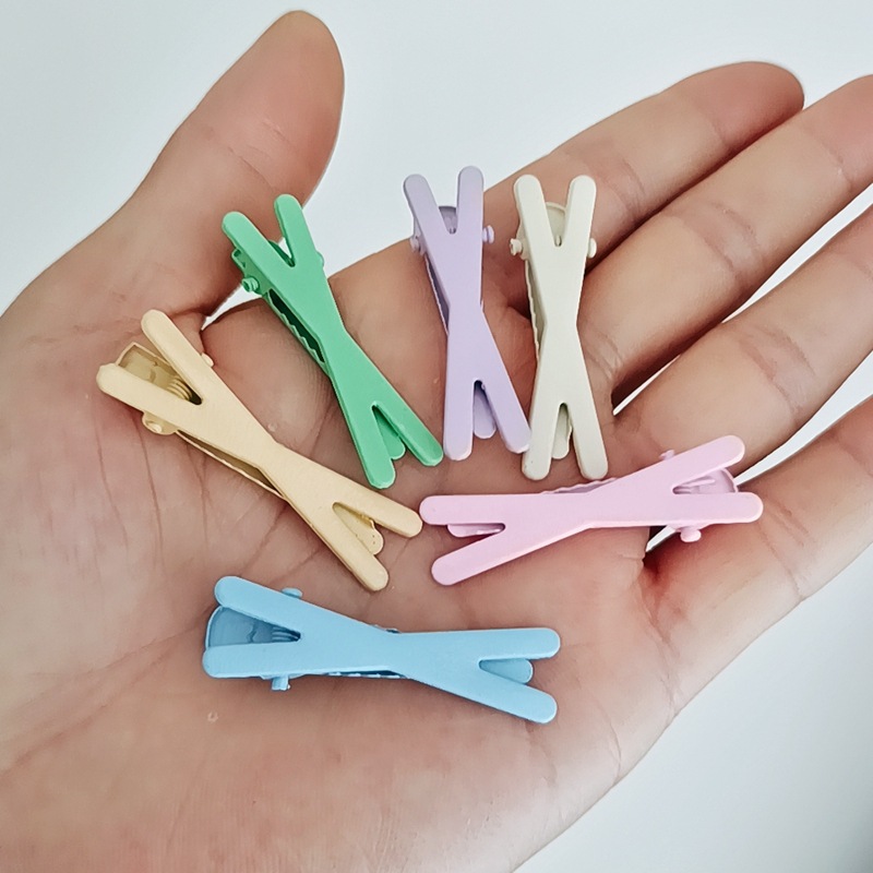 4.5cm 캔디 컬러 덕빌 클립 크로스 헤어 클립 어린이 만화 사이드 클립 헤어 액세서리 새로운 합금 원라인 클립 컬러