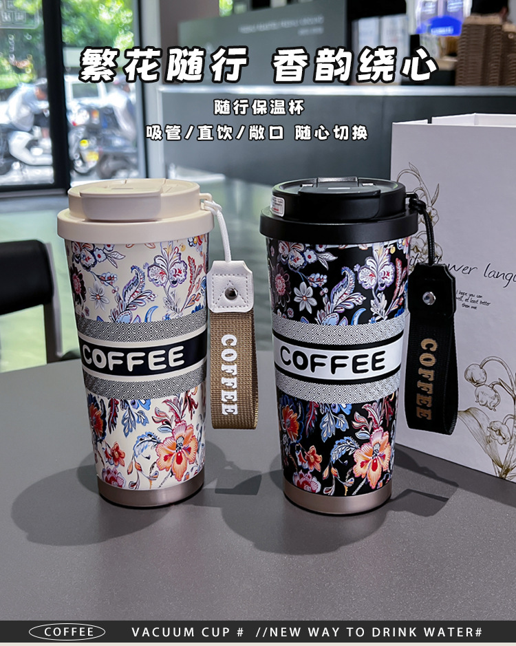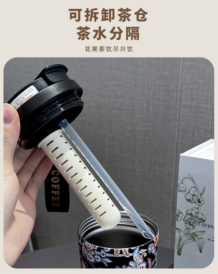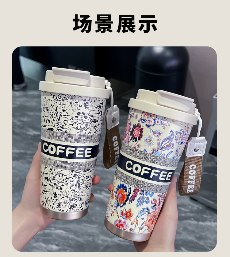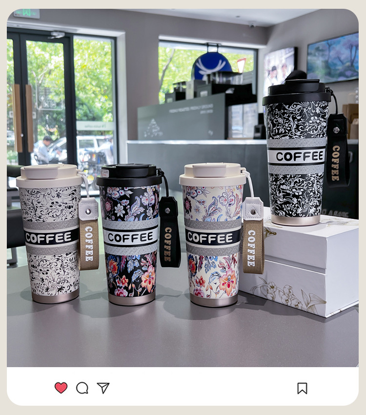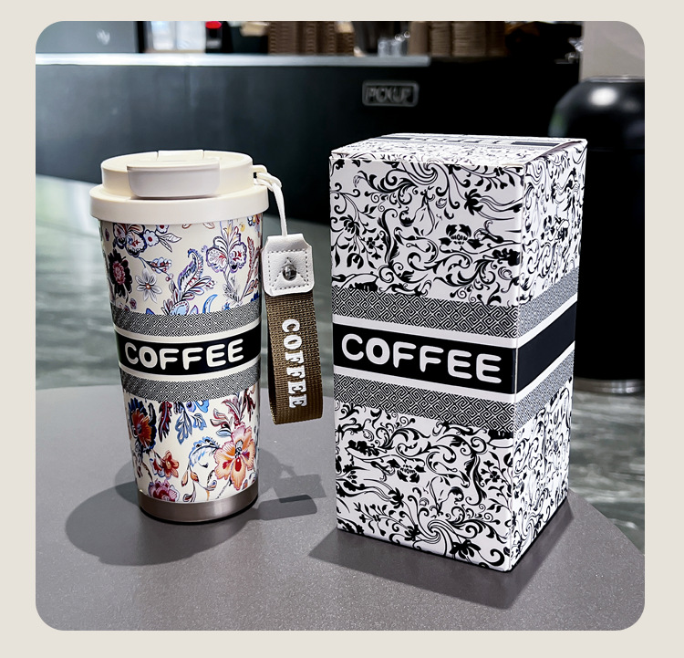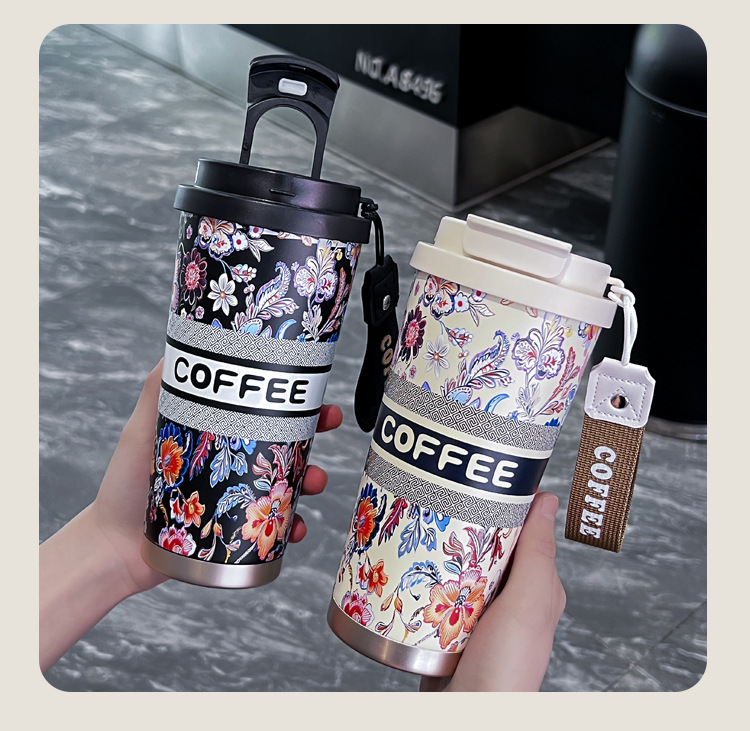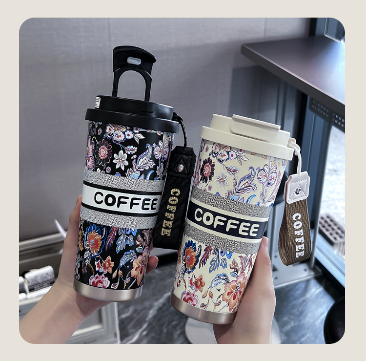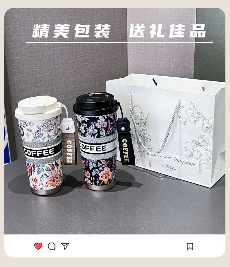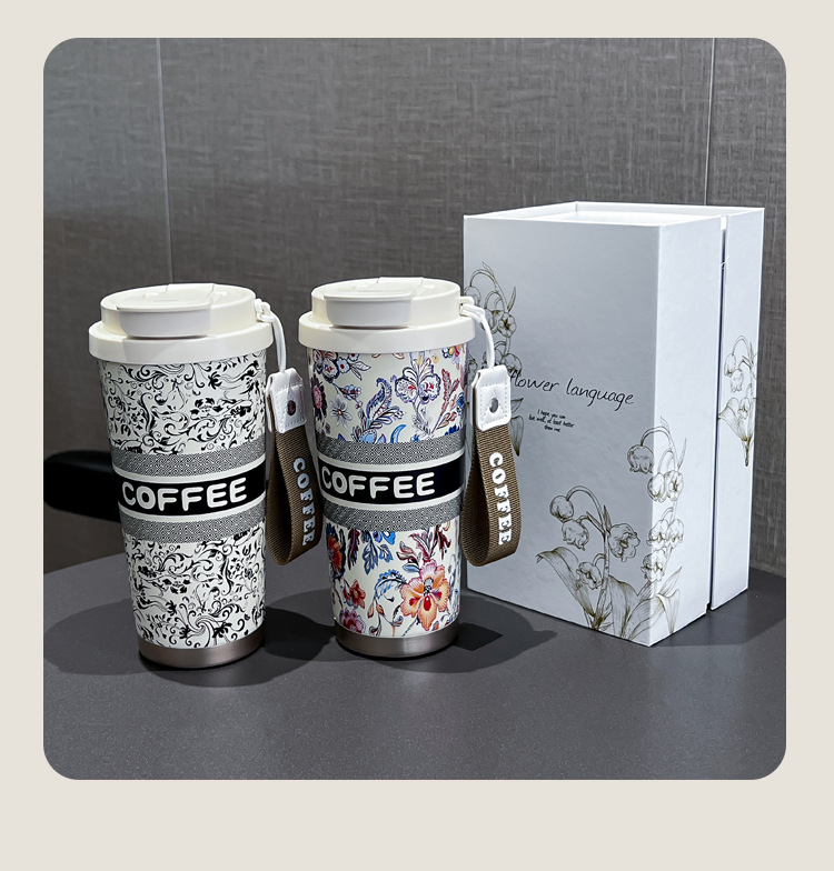 인터넷 유명인과 같은 스타일의 세라믹 이중 음료컵, 은방울꽃 디자인의 고급스러운 커피컵, 차량용 선물용 보온컵 맞춤 제작스토어 가기
