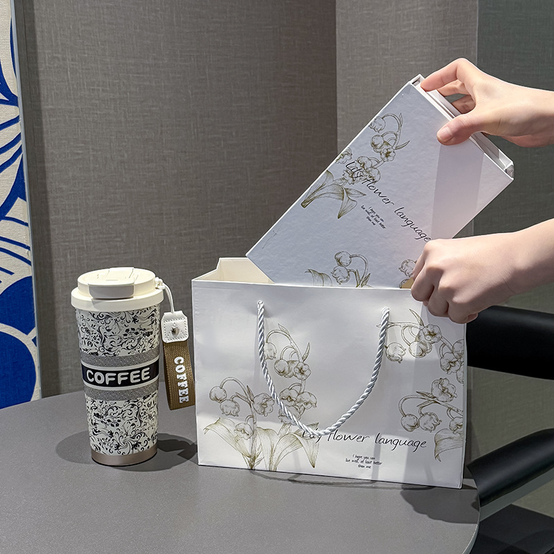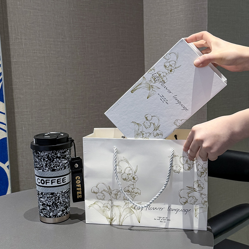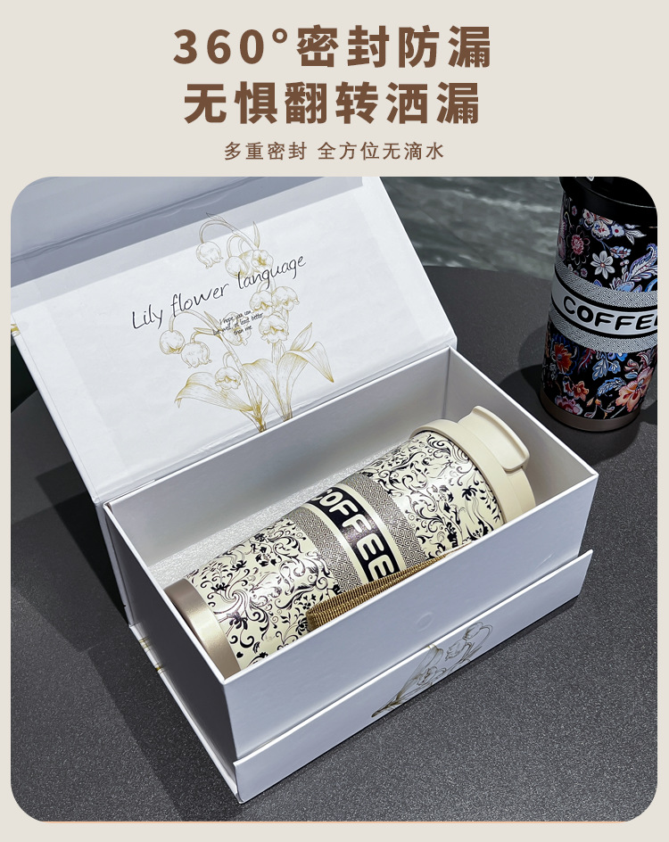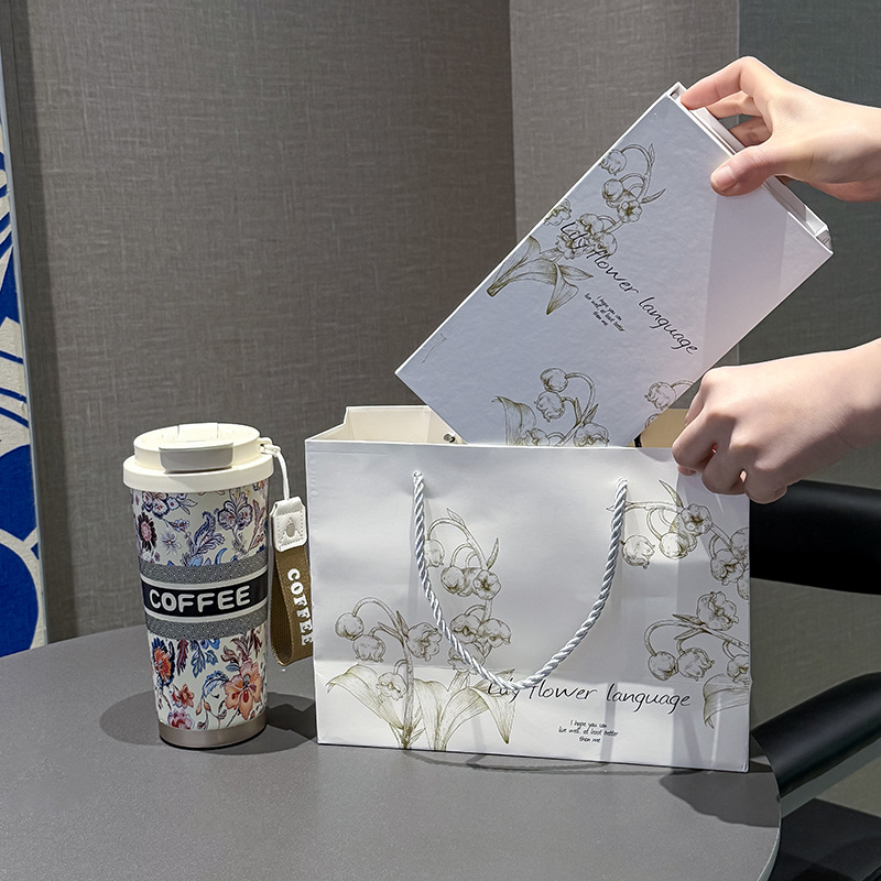 인터넷 유명인과 같은 스타일의 세라믹 이중 음료컵, 은방울꽃 디자인의 고급스러운 커피컵, 차량용 선물용 보온컵 맞춤 제작