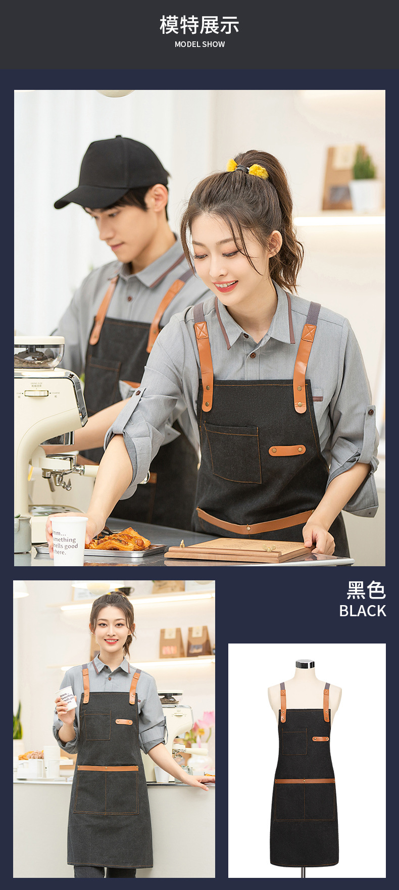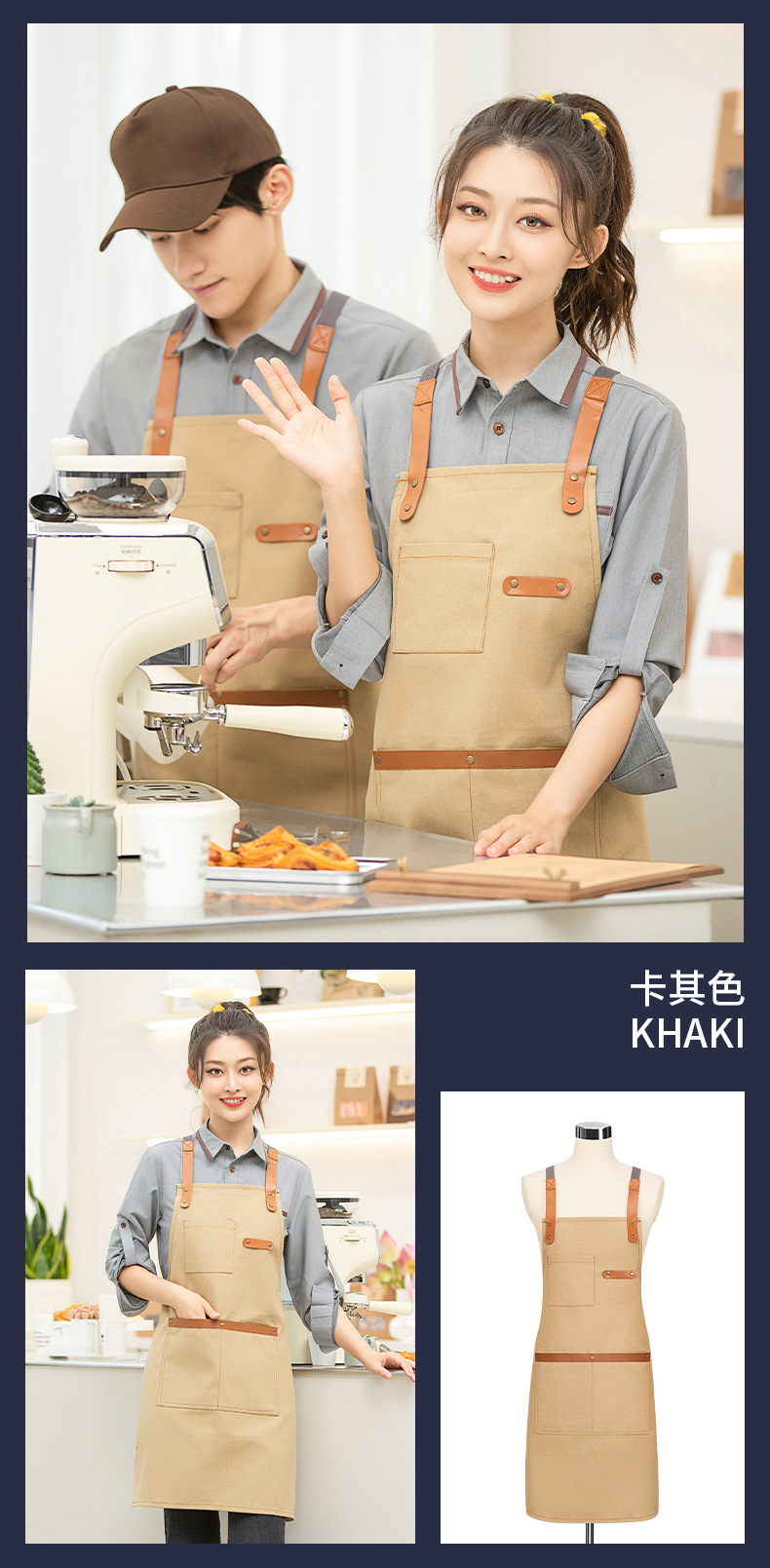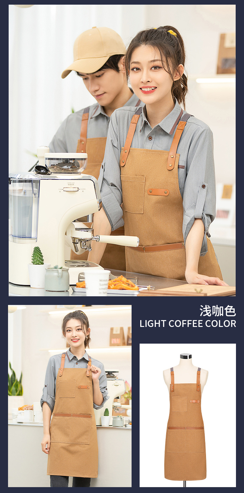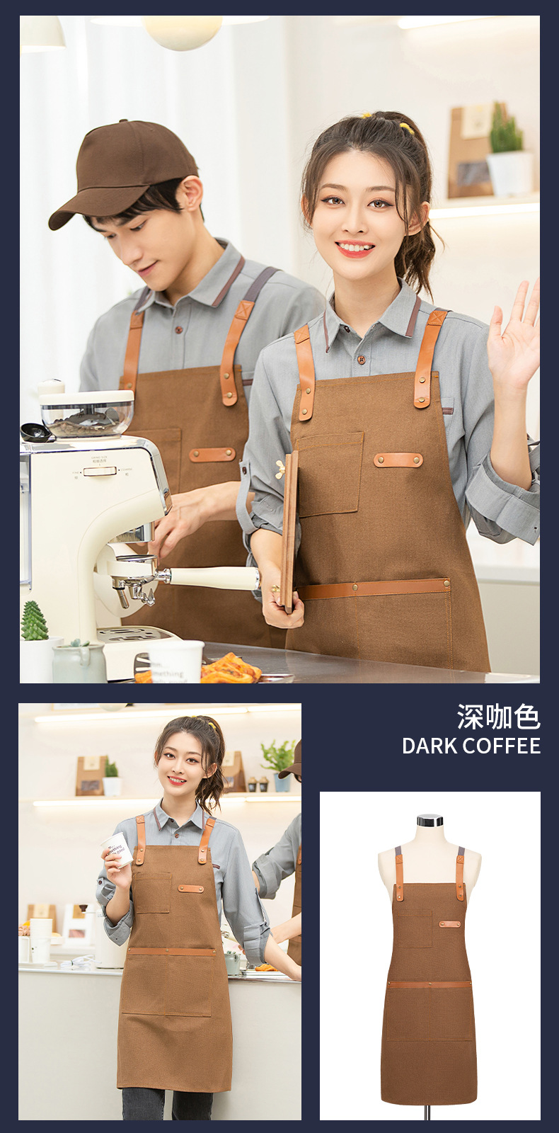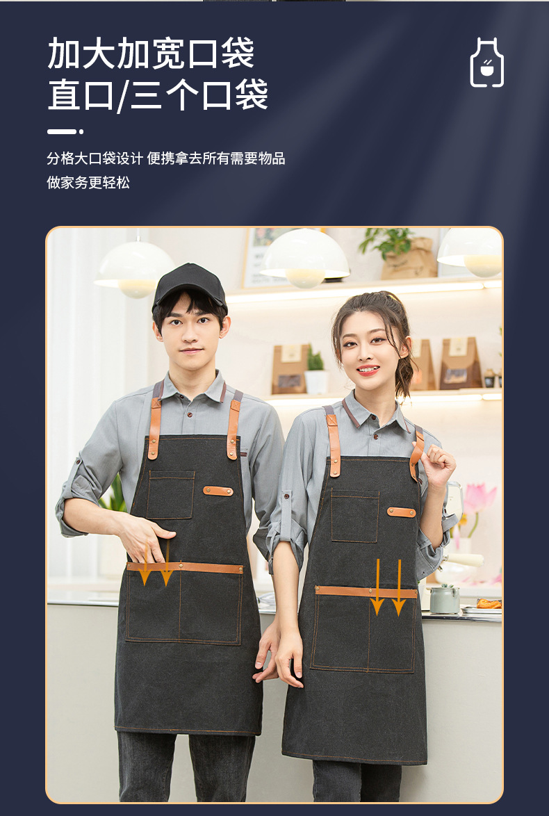 카페, 케이터링 샵, 밀크 티 샵, 케이크 샵, 베이커리, 웨스턴 레스토랑 웨이터, 캔버스 어깨, 대형 포켓 앞치마