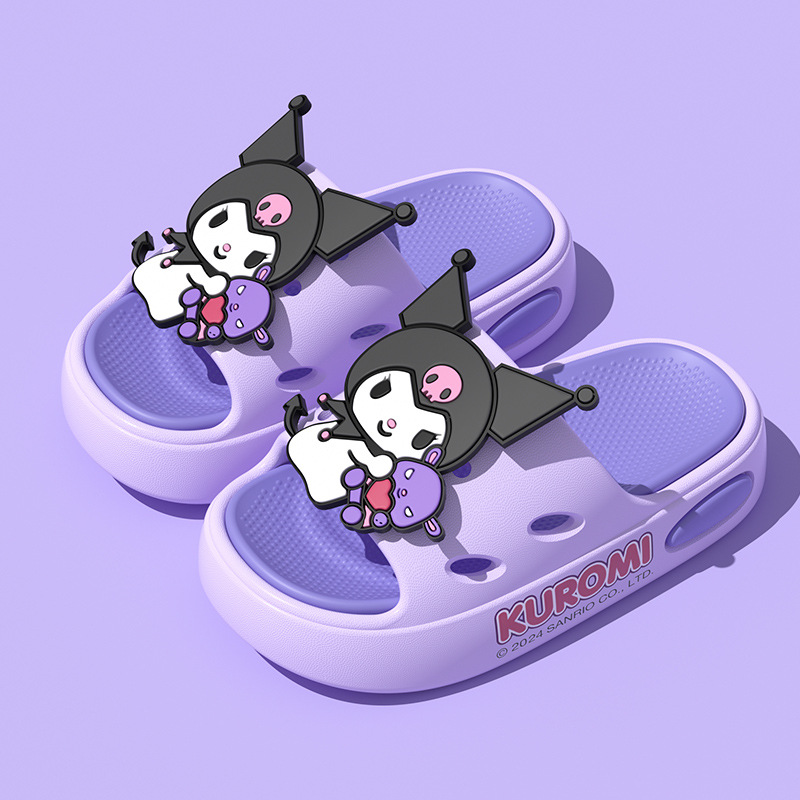 여자 슬리퍼 Kuromi 여름 실내 2025 새로운 여자 홈 미끄럼 방지 아기 Sanrio 어린이 슬리퍼