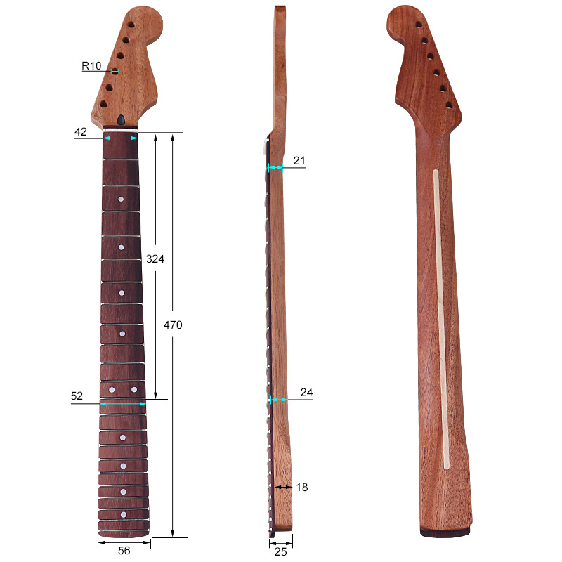 ST6弦电吉他琴颈琴柄哑光桃花芯玫瑰木琴柄吉他DIY改装乐器配件