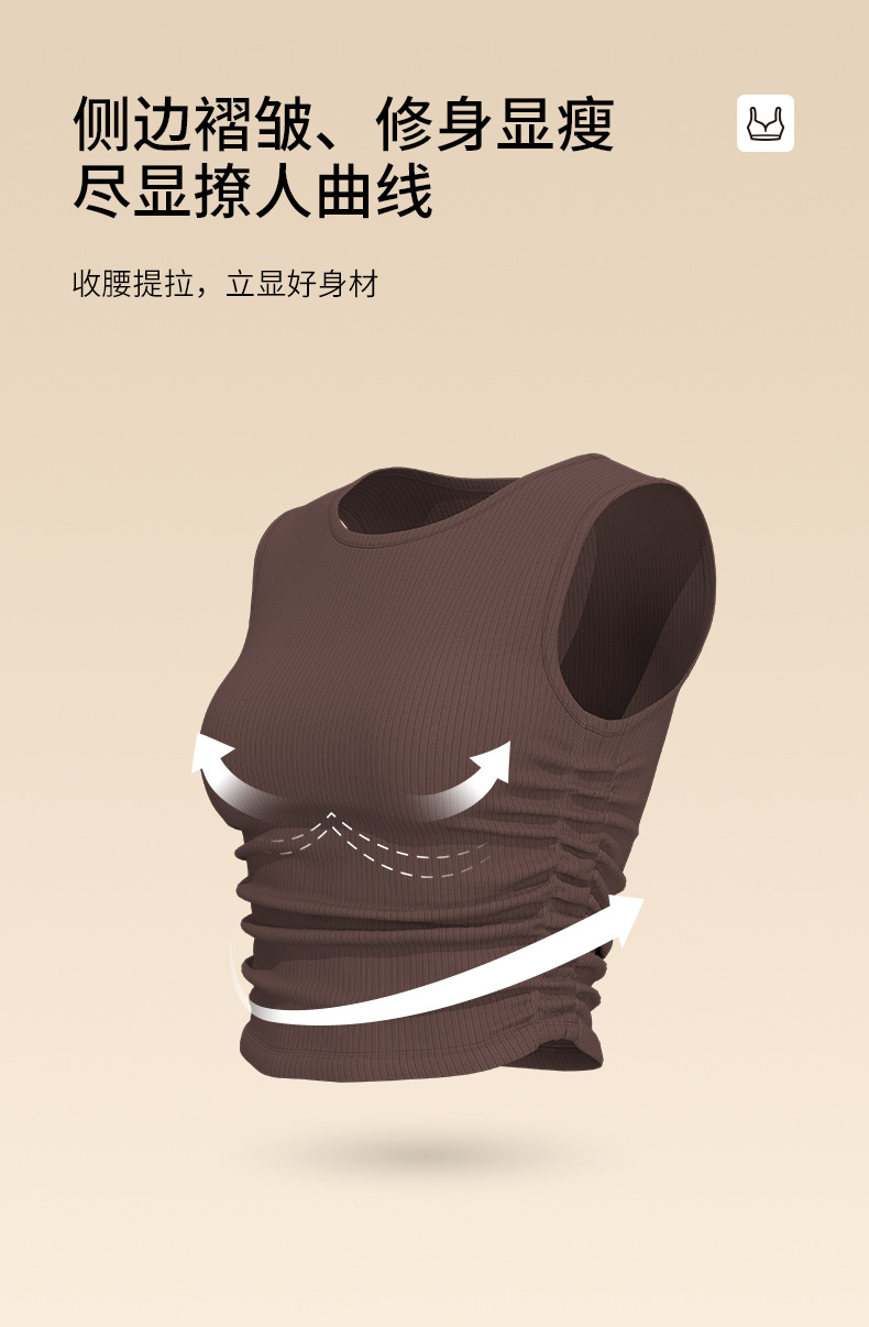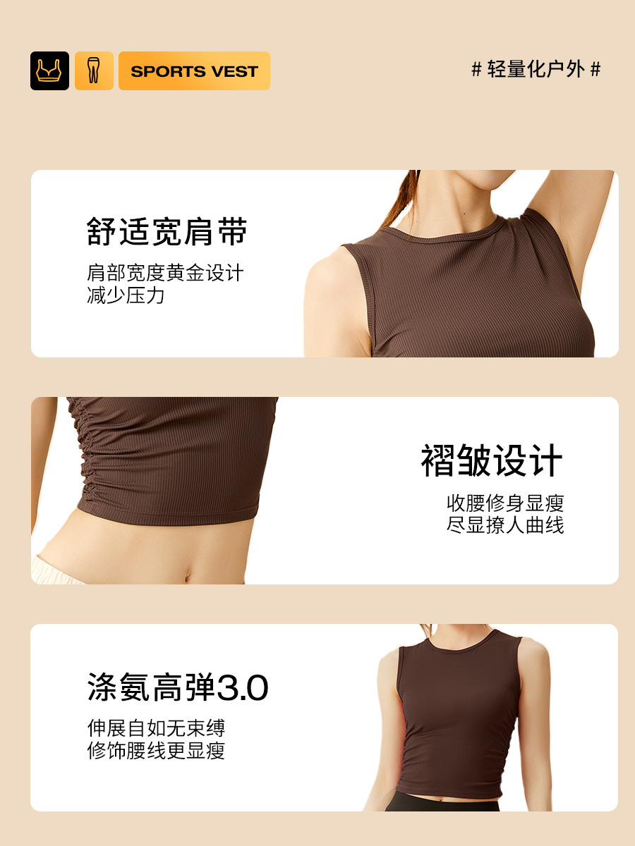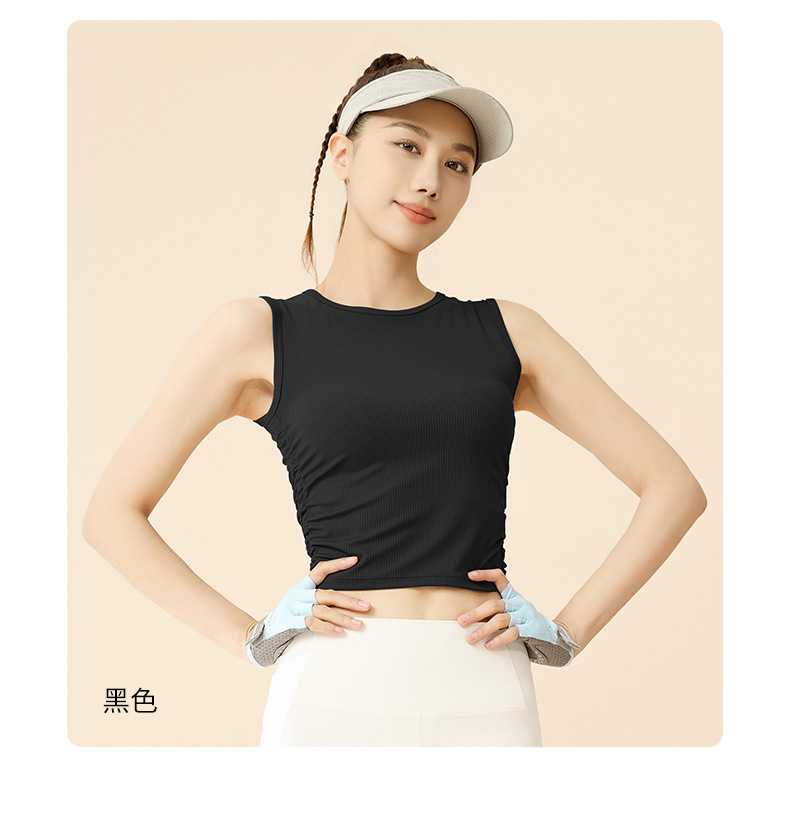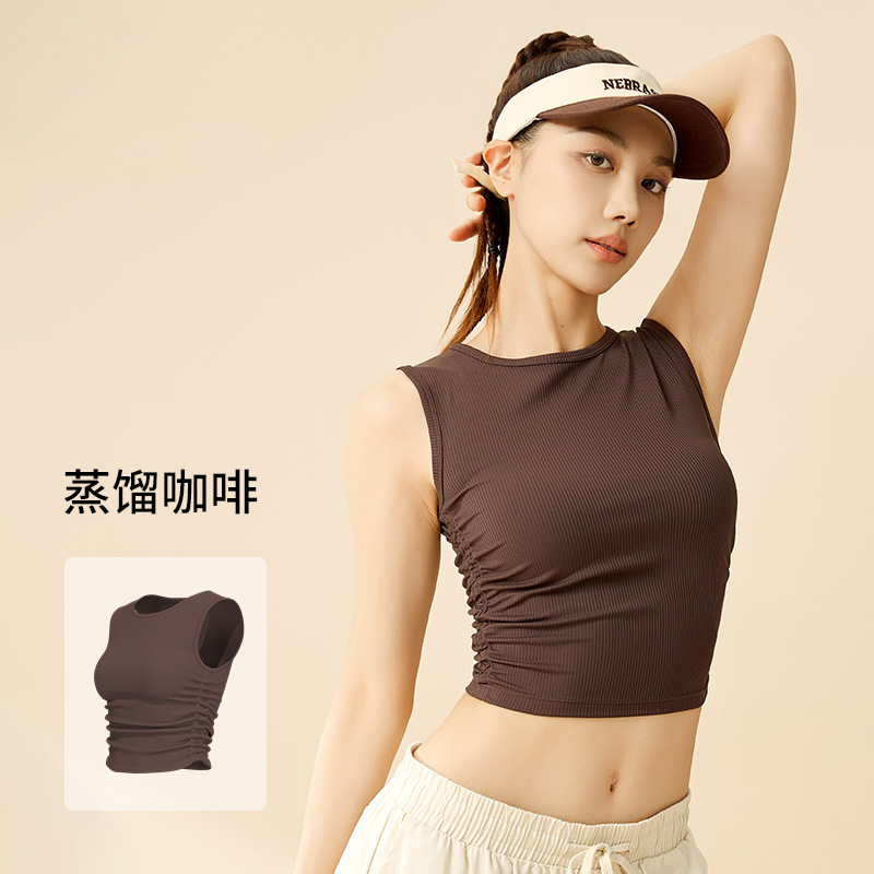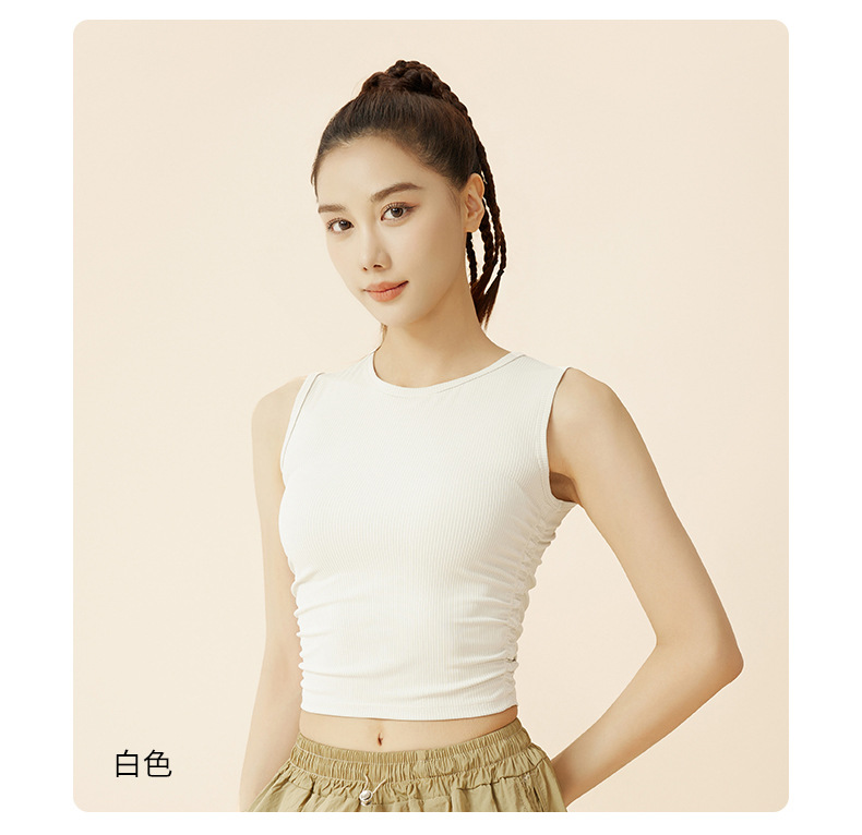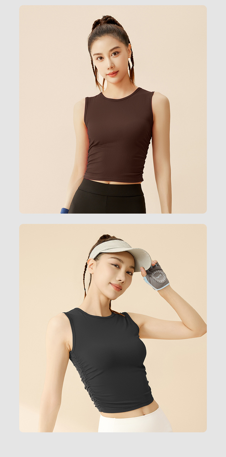 Juyitang 여름 신제품 양면 주름 골지 민소매 탑 슬림 허리 요가 스포츠 조끼 여성용스토어 가기