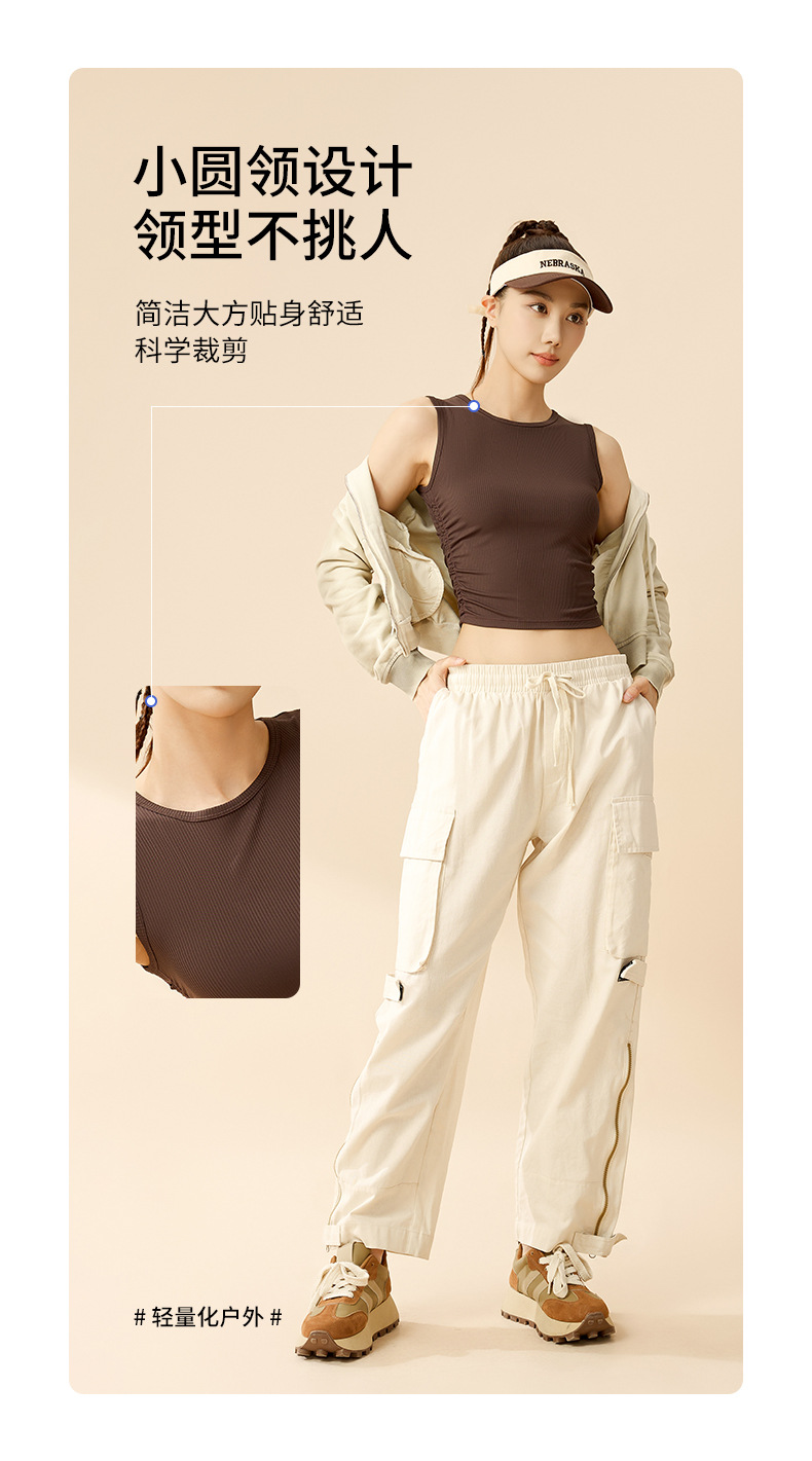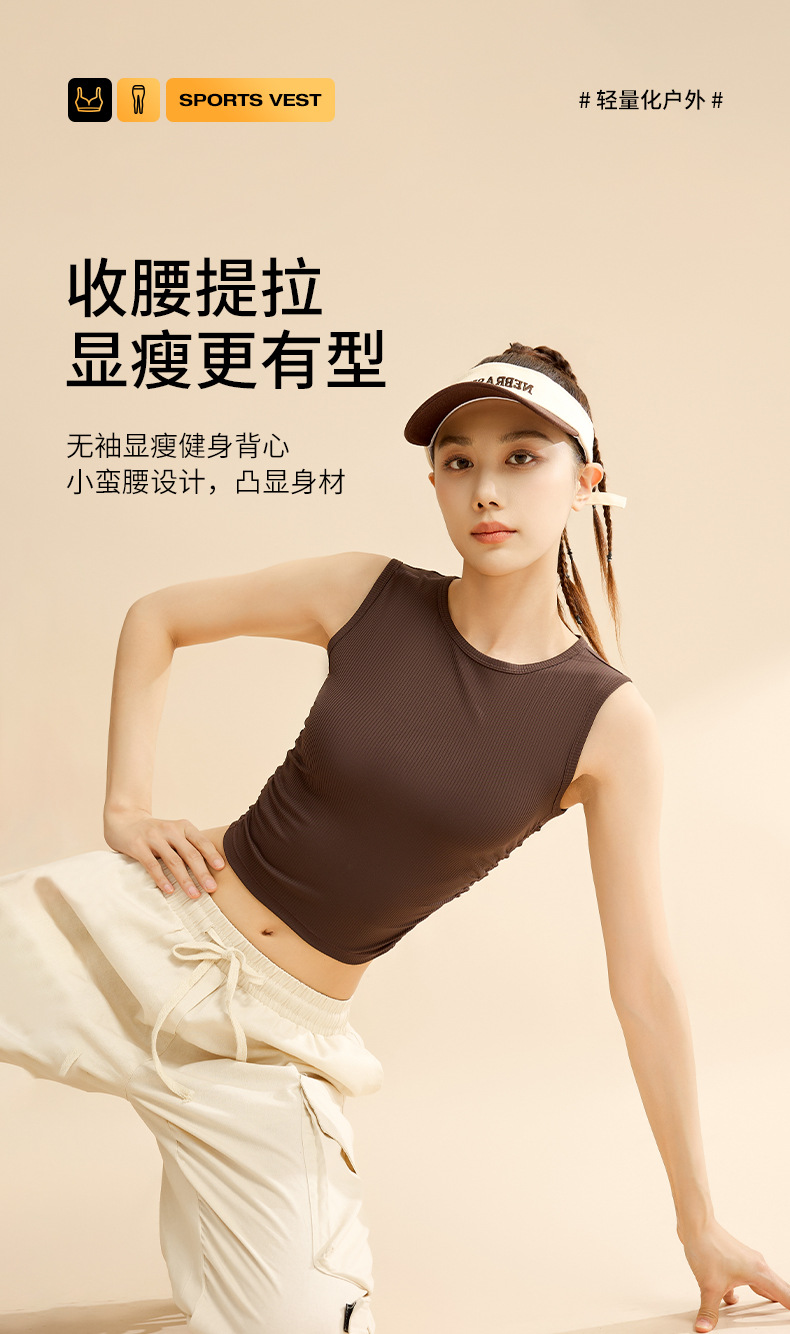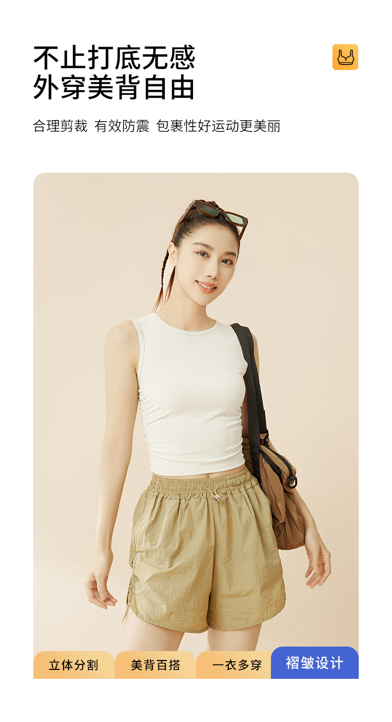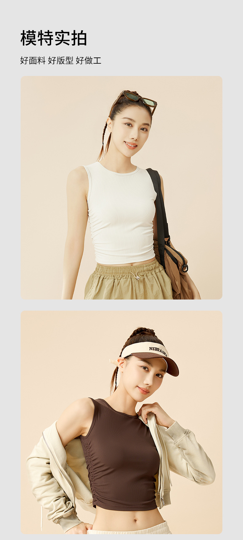 Juyitang 여름 신제품 양면 주름 골지 민소매 탑 슬림 허리 요가 스포츠 조끼 여성용스토어 가기