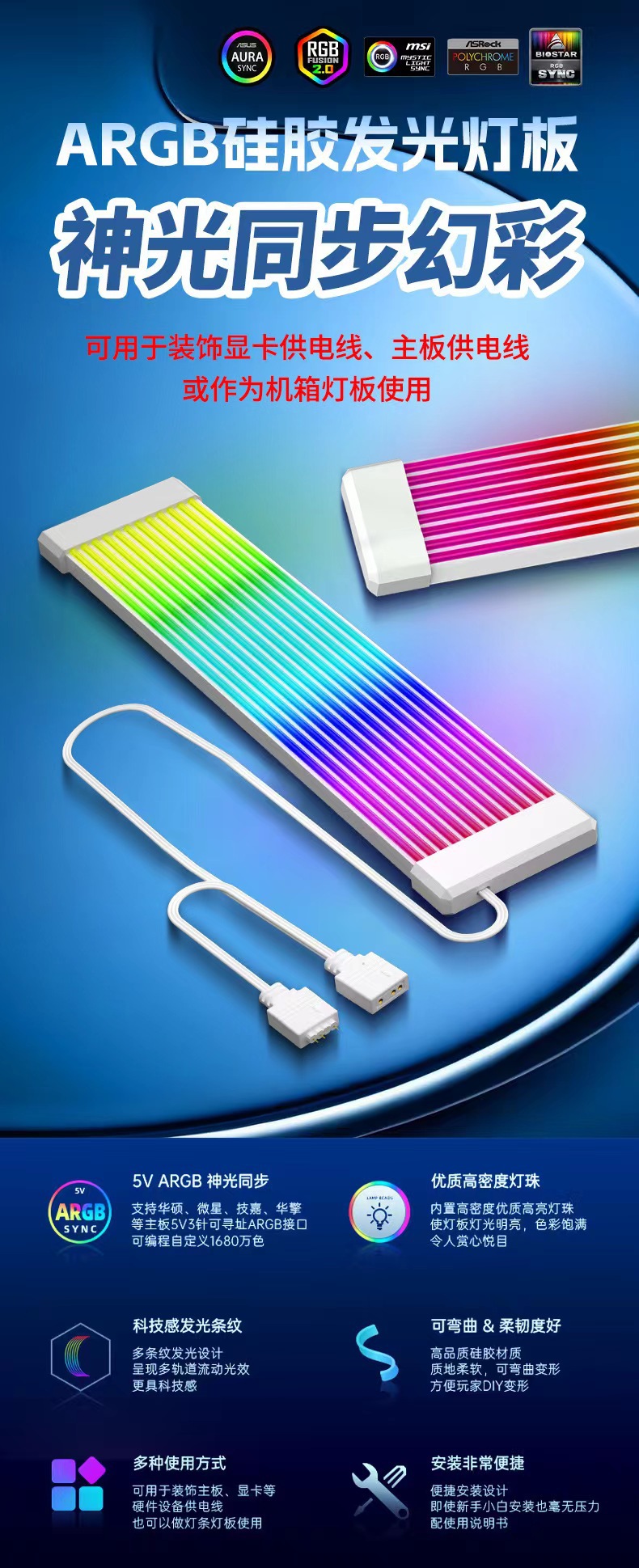 빛나는 ARGB 네온 라인 그래픽 마더 보드 ARGB 컬러 마더 보드 24PIN8P 컴퓨터 전원 공급 장치 장식 조명
