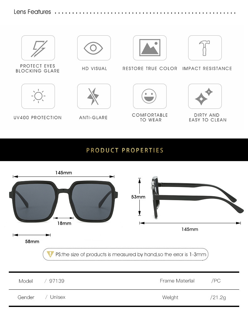 새로운 광장 대형 프레임 캐주얼 스타일 그라디언트 패션 개인화 된 거리 사진 촬영 트렌드 유니섹스 선글라스 UV 보호