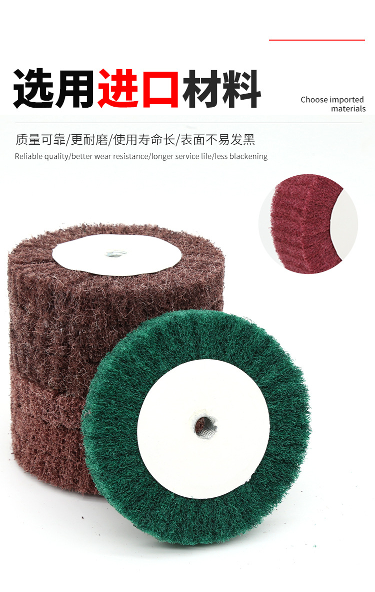 앵글 그라인더 와이어 드로잉 휠 스테인레스 스틸 연마 휠 스크류 치아 스크러링 천 섬유 휠 금속 탈루 연마 휠