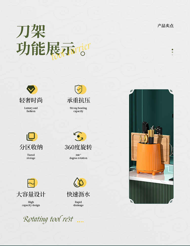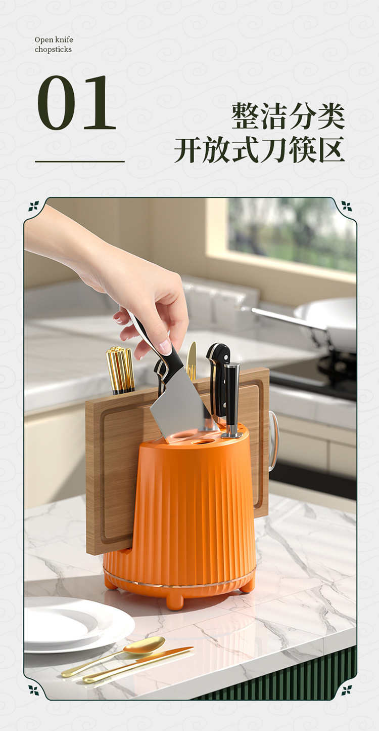 칼꽂이 주방 회전식 수납 선반 칼 젓가락 보관함 다기능 조리대 수납 가정용 수납 도구