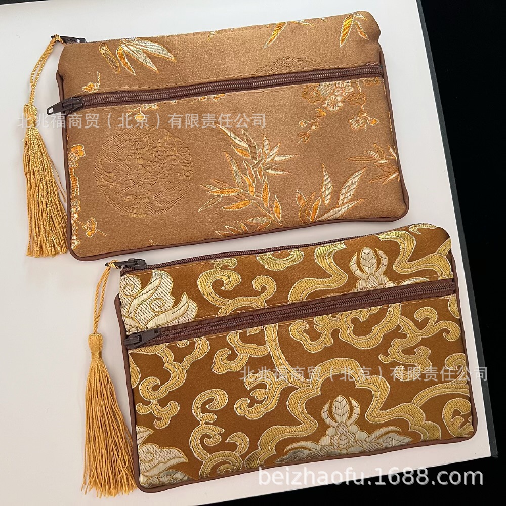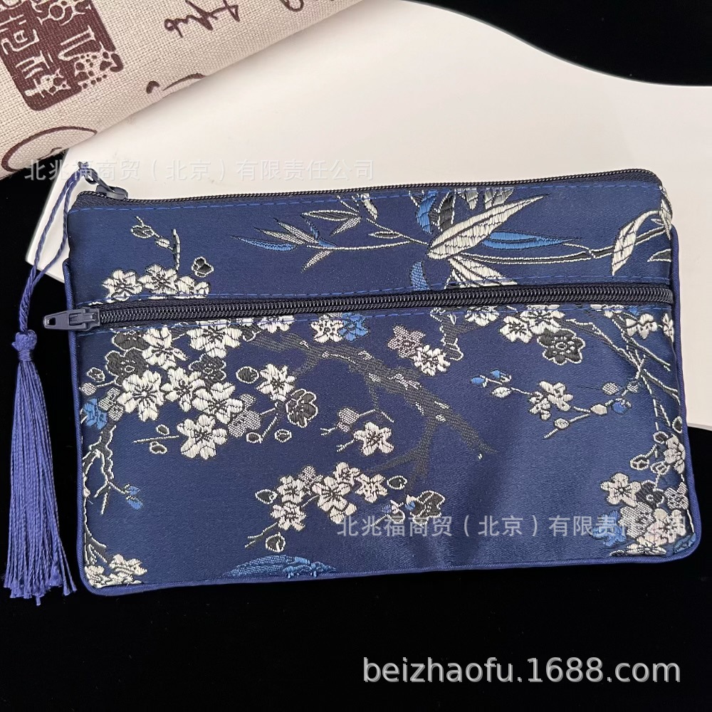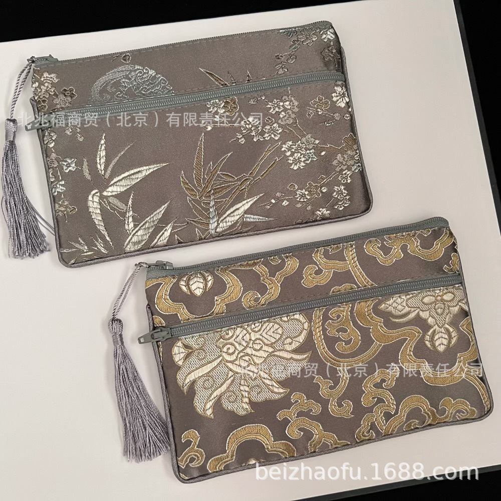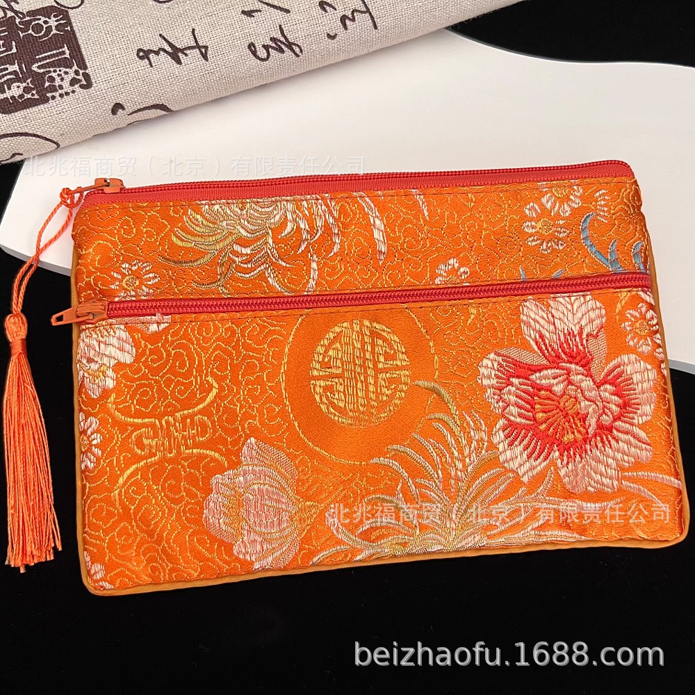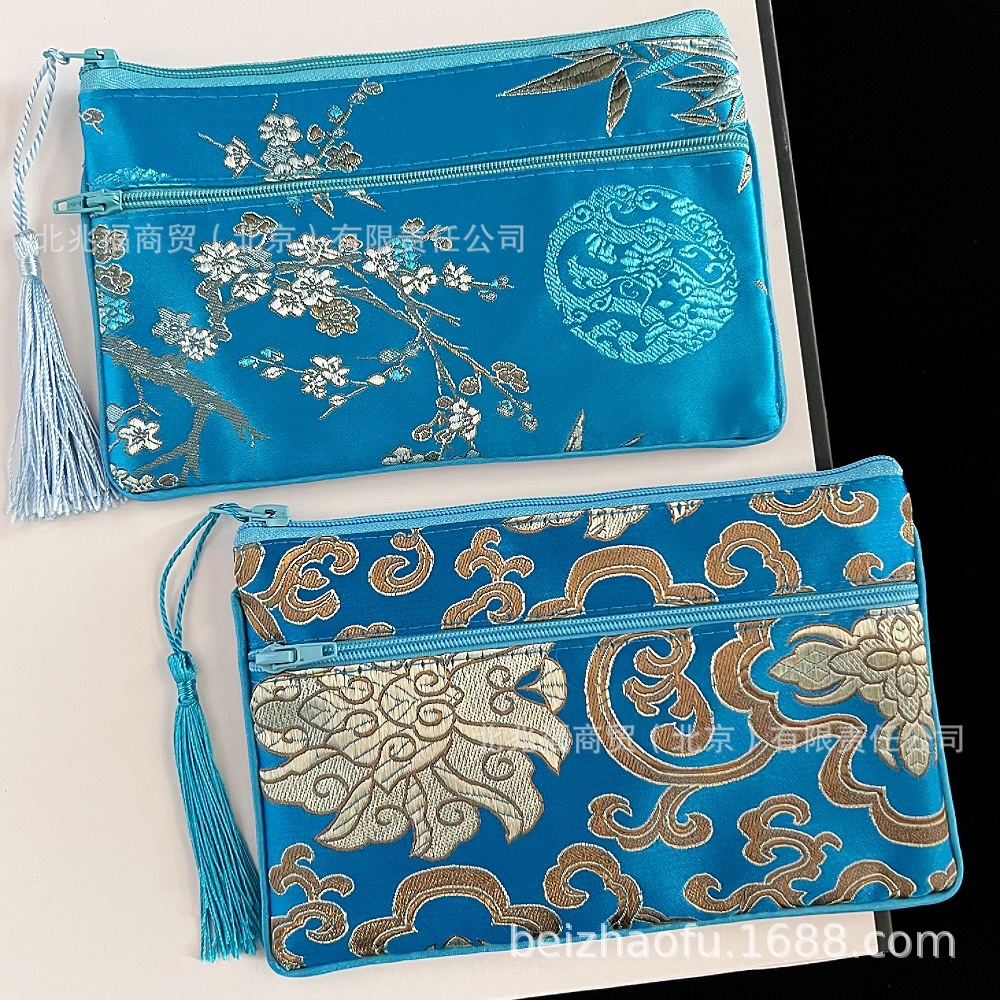 새로운 중국 스타일 브로케이드 더블 지퍼 동전 지갑 숙녀 긴 중국 보석 가방 저장 메이크업 작은 가방 키