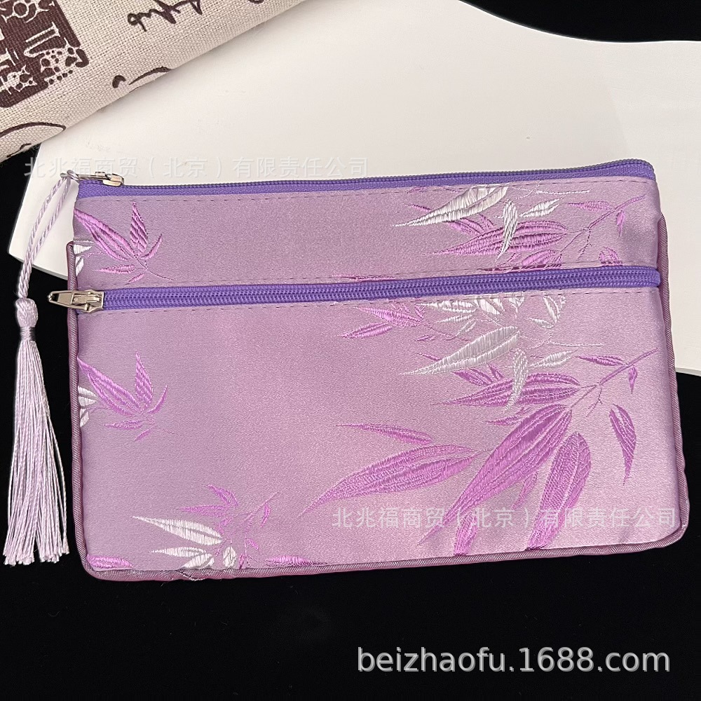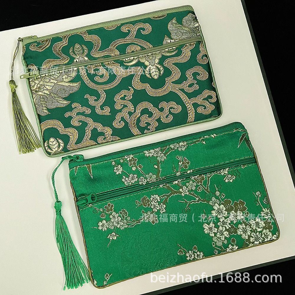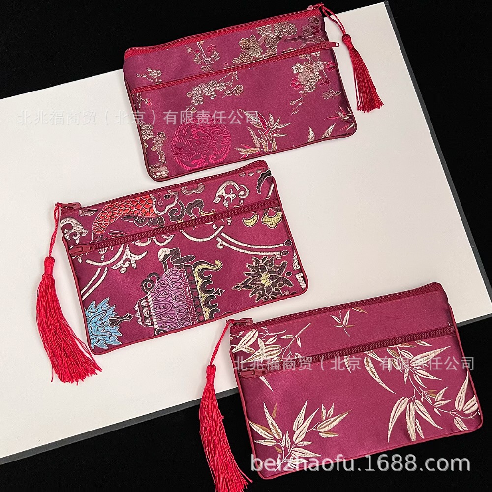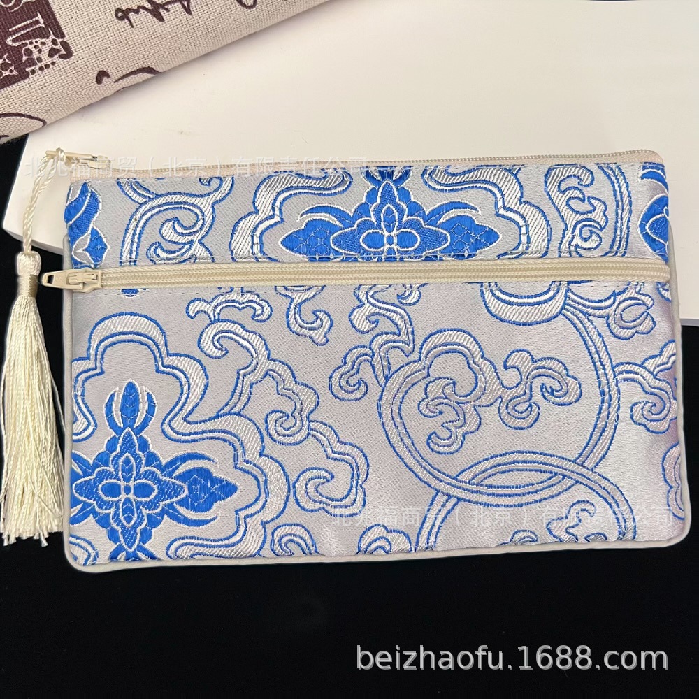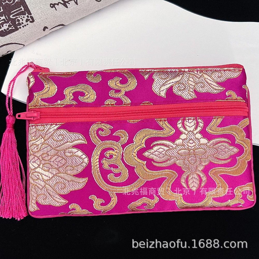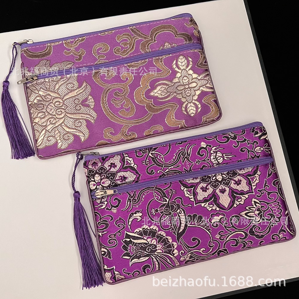 새로운 중국 스타일 브로케이드 더블 지퍼 동전 지갑 숙녀 긴 중국 보석 가방 저장 메이크업 작은 가방 키