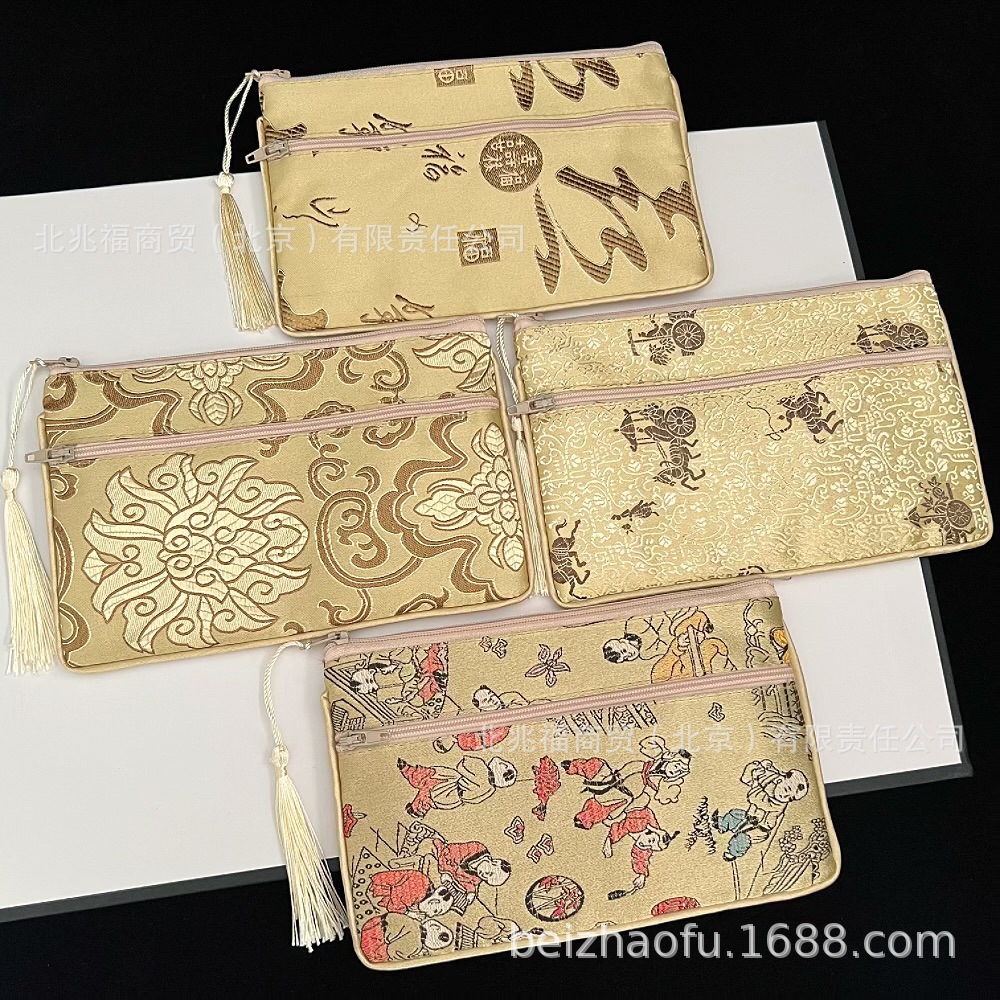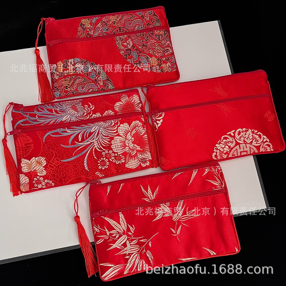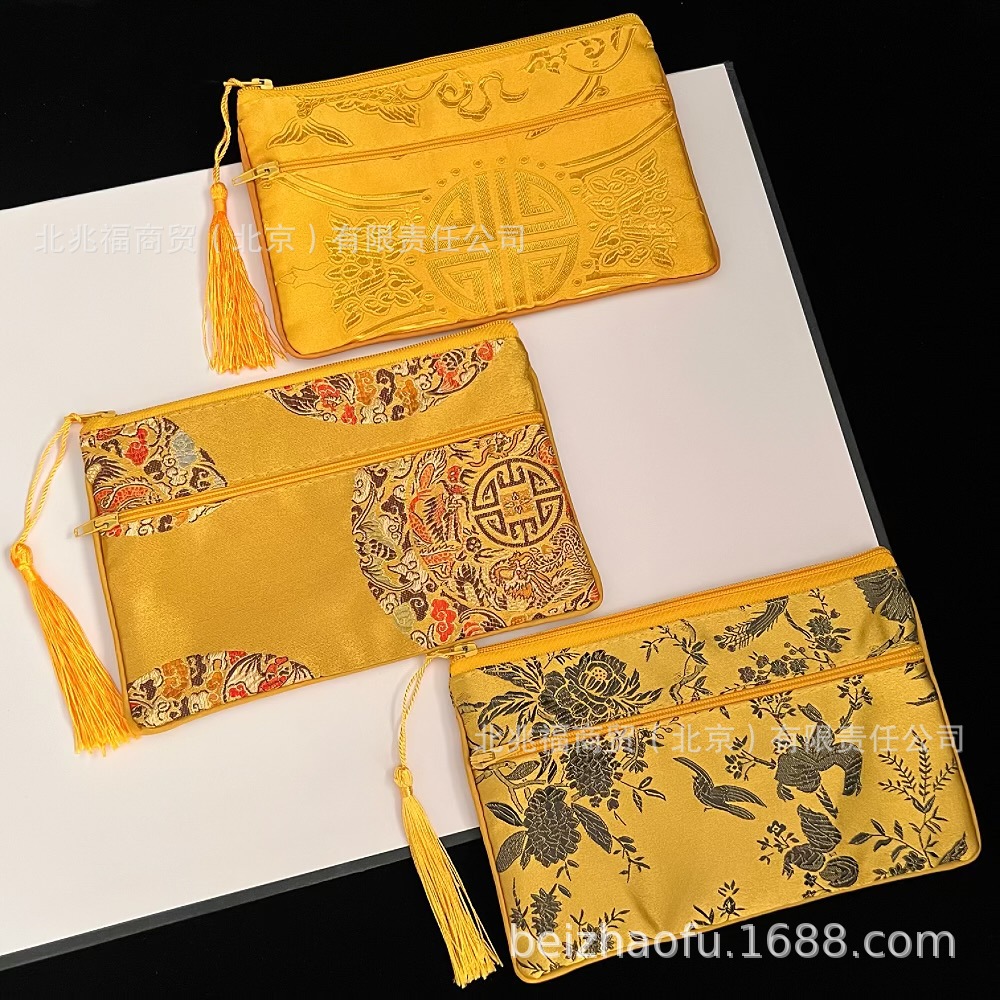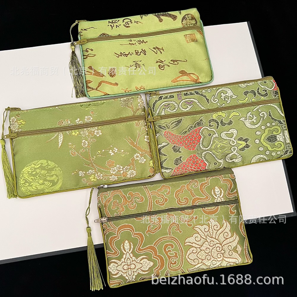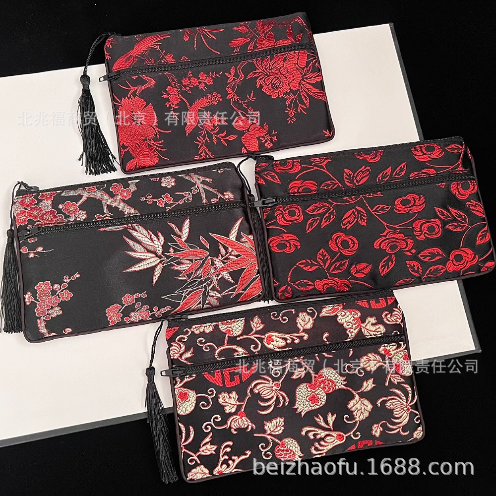 새로운 중국 스타일 브로케이드 더블 지퍼 동전 지갑 숙녀 긴 중국 보석 가방 저장 메이크업 작은 가방 키