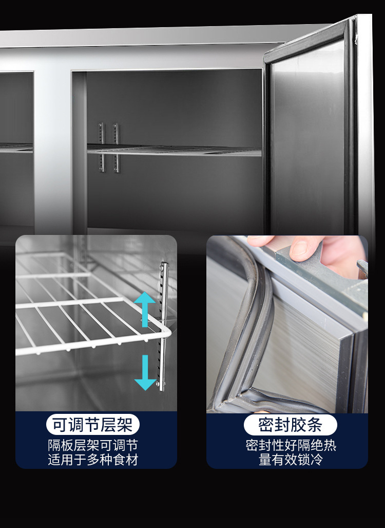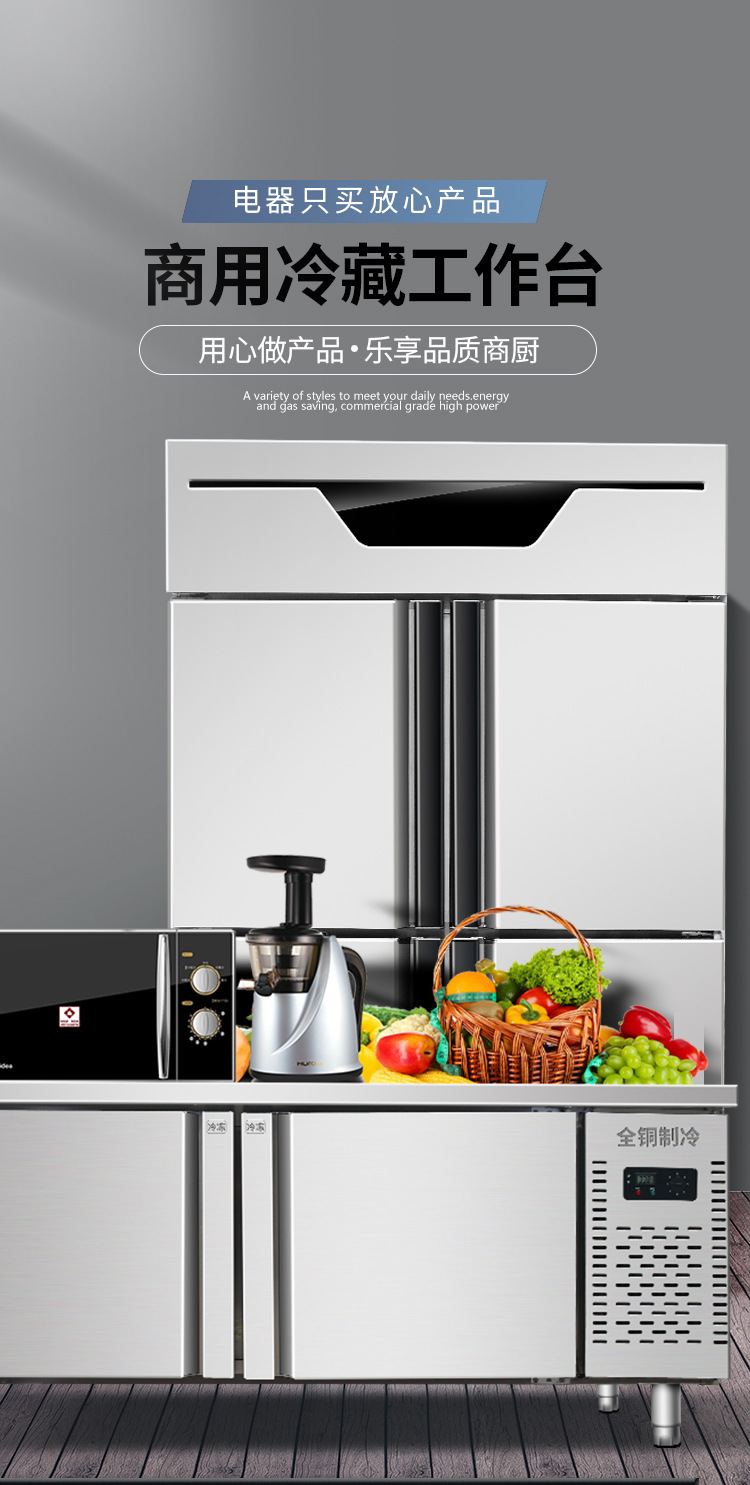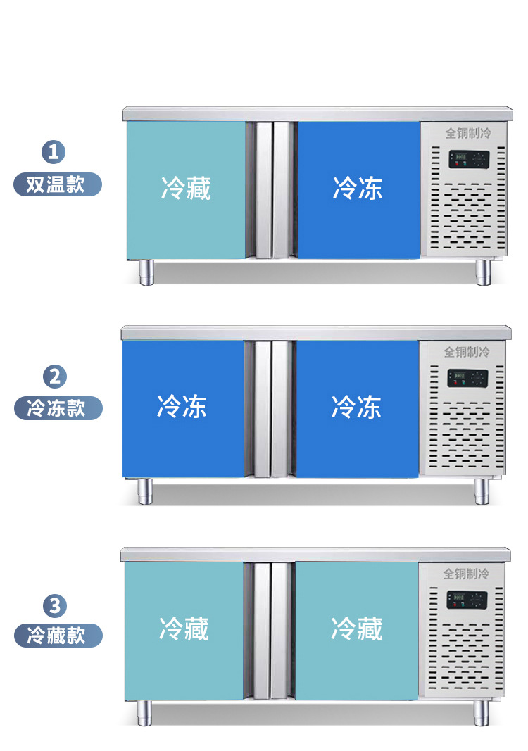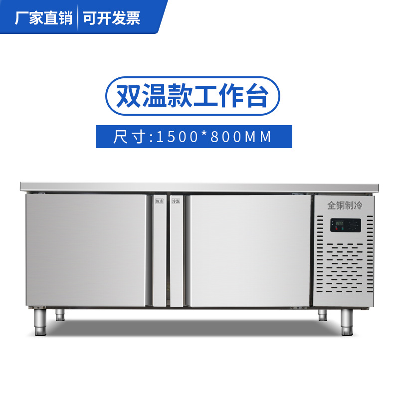 냉동 작업대 상업용 냉장고 콘솔 시스템 동결 수평 냉동고 평면 냉각 신선한 물 바 장비 두 배 온도스토어 가기