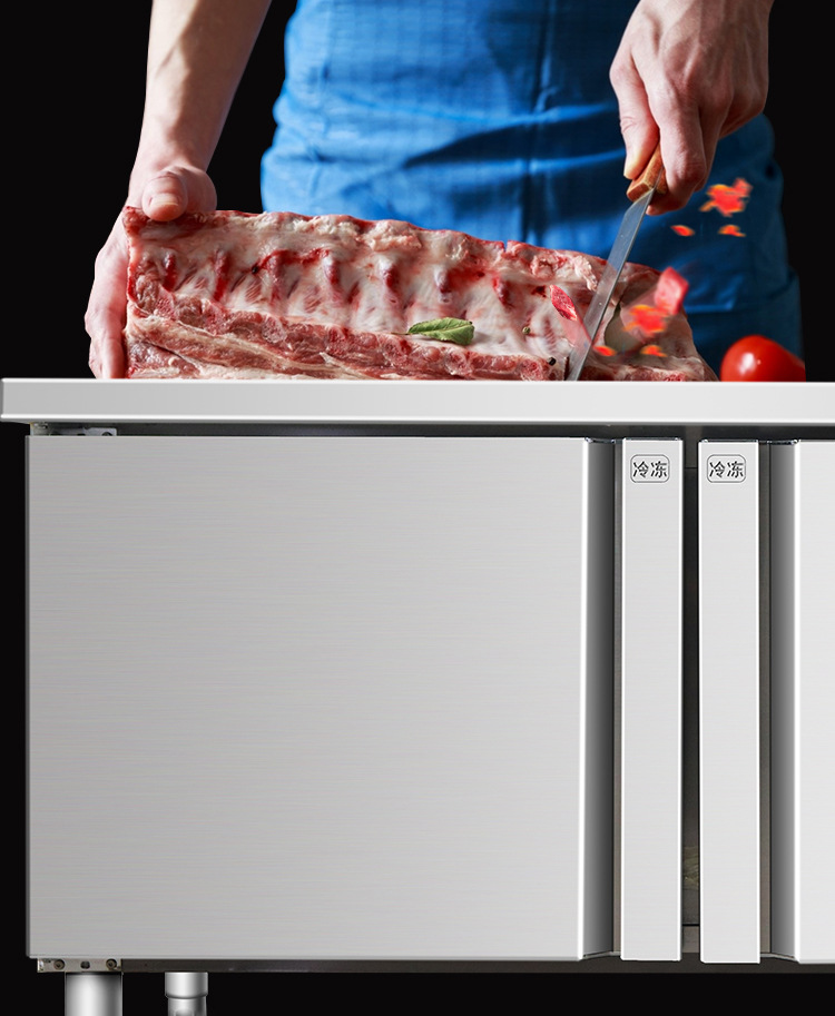 냉동 작업대 상업용 냉장고 콘솔 시스템 동결 수평 냉동고 평면 냉각 신선한 물 바 장비 두 배 온도