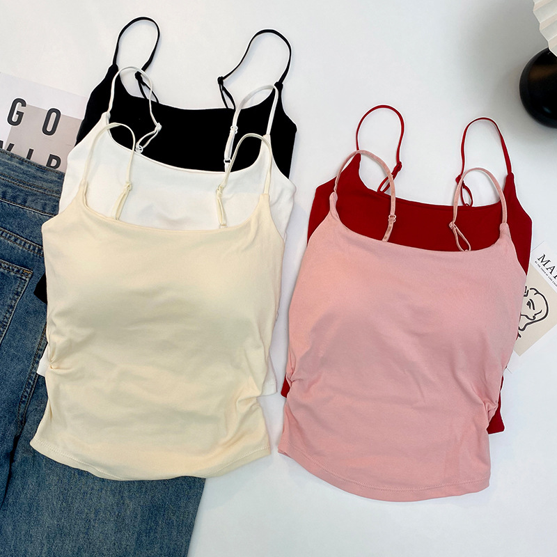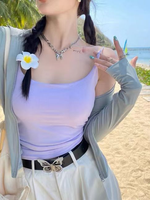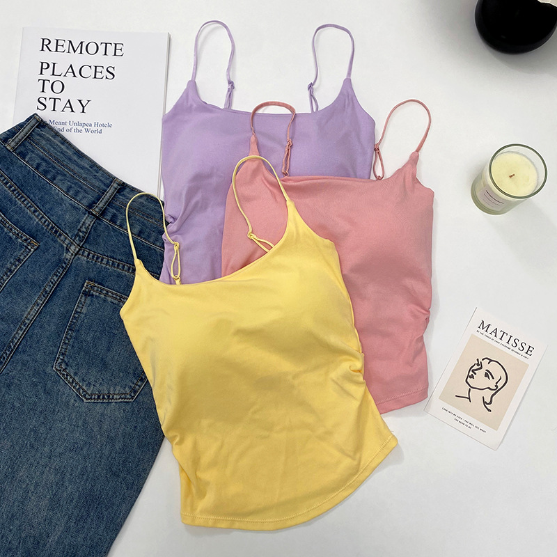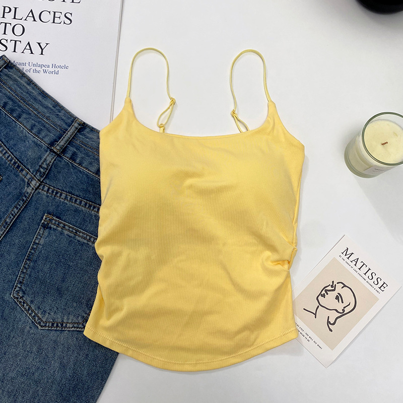 바느질면 노란색 주름 된 카미 솔 여성 벨트 가슴 패드 외부 착용 내부 입고 보라색 새 경고 아름다운 뒤로 여름 옷