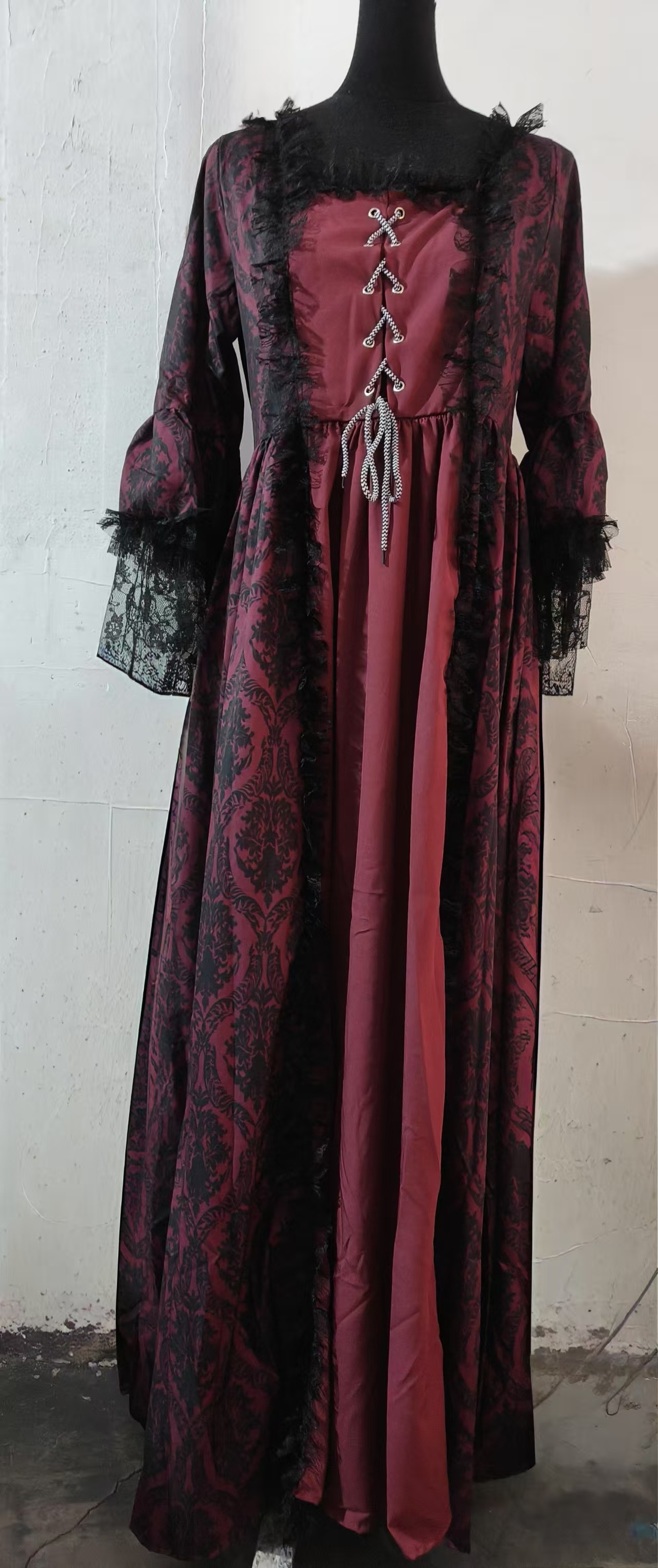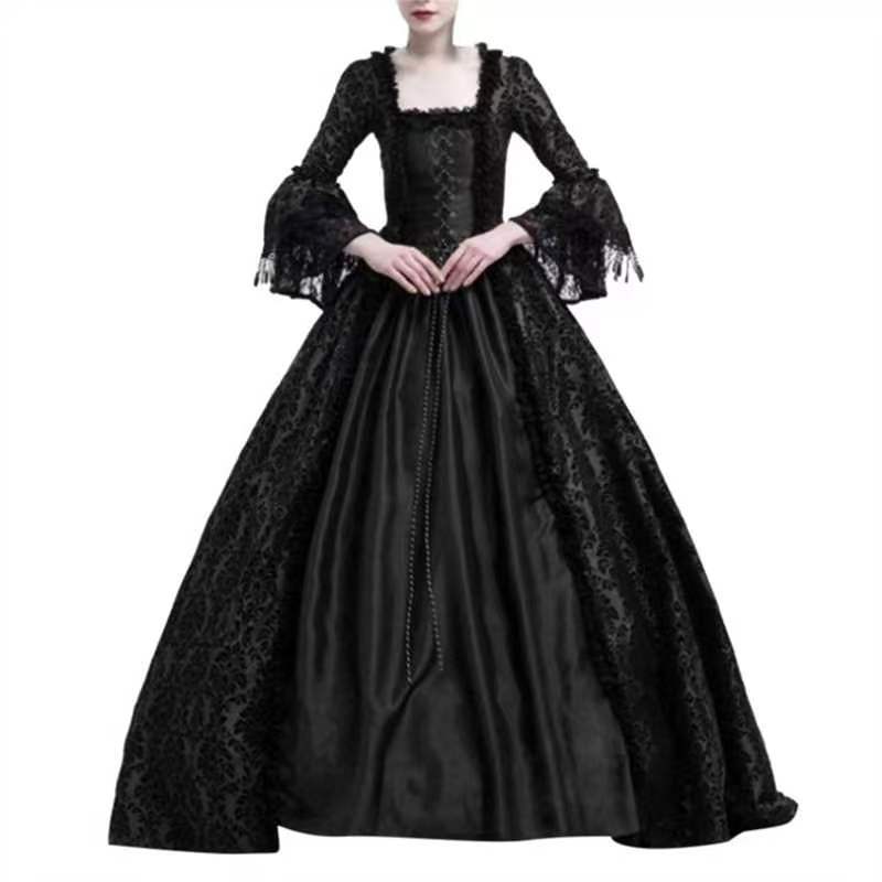 S-3XL 대형 사이즈 고급 궁전 드레스 레이스 스티치 와이드 스커트 레트로 중세 르네상스 드레스