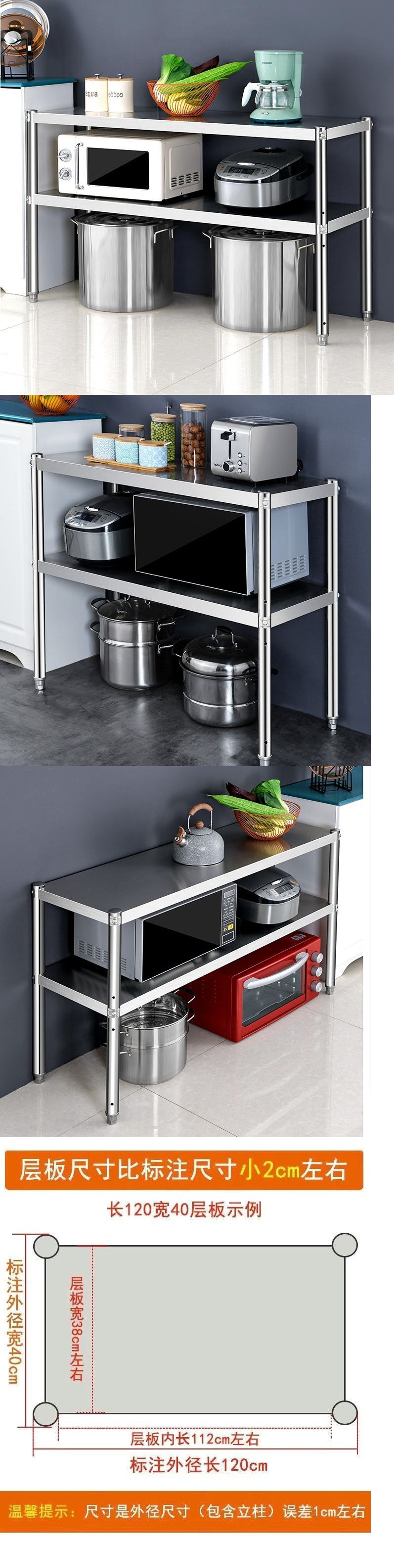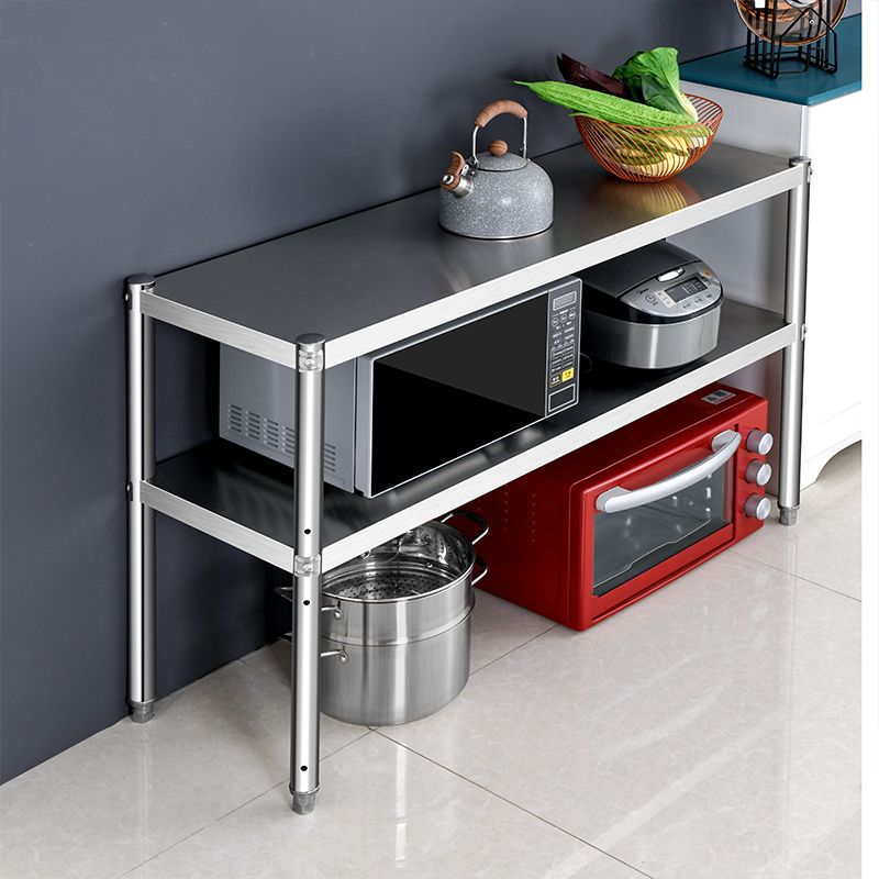 스토리지 랙 바닥 더블 레이어 스테인레스 스틸 주방 카운터 탑 전자 레인지 랙 캐비닛 스토리지 2 층 포트 랙 니스스토어 가기