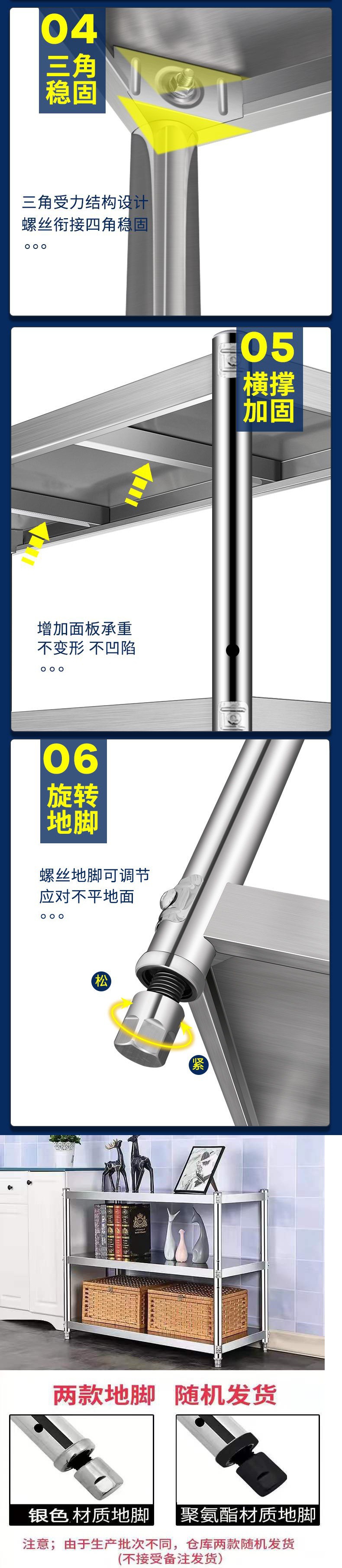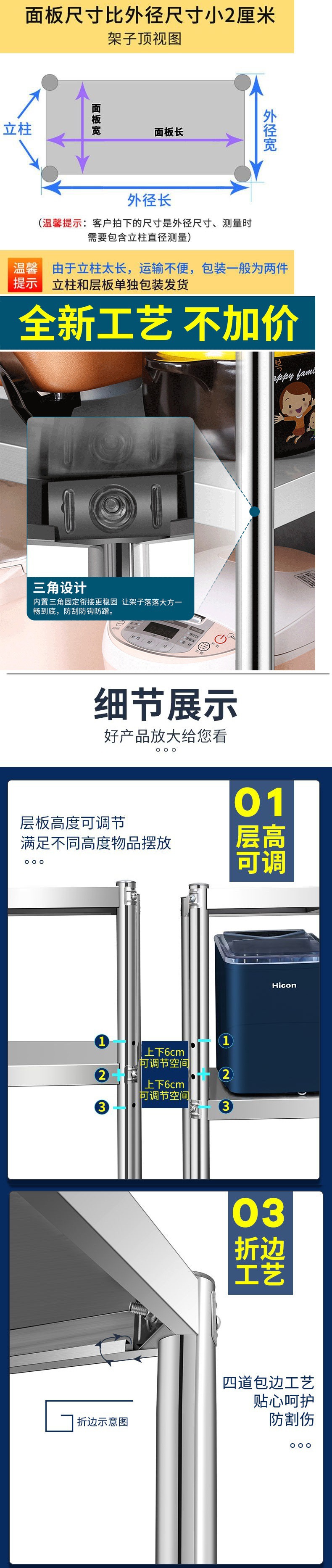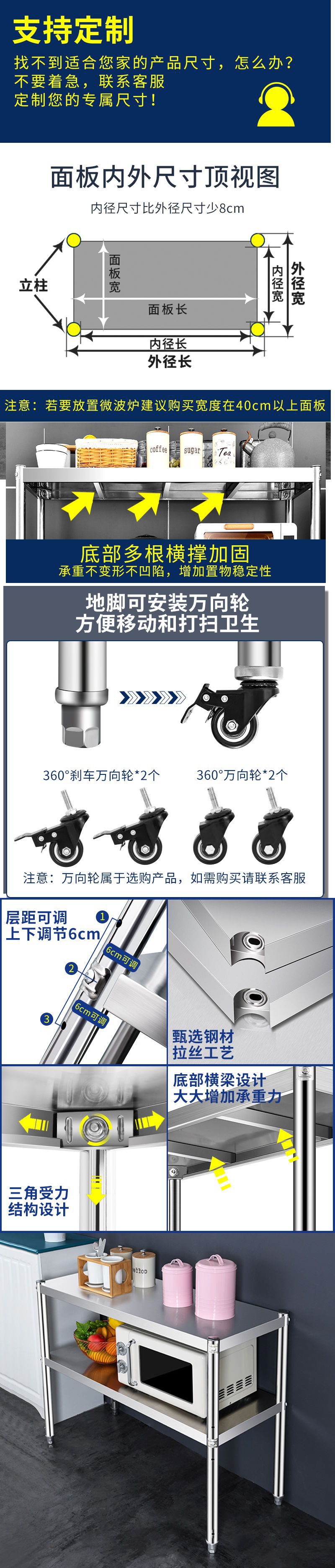스토리지 랙 바닥 더블 레이어 스테인레스 스틸 주방 카운터 탑 전자 레인지 랙 캐비닛 스토리지 2 층 포트 랙 니스