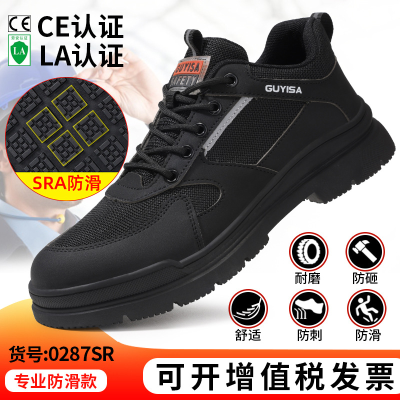 SRA 미끄럼 방지 신발, 사계절 노동 보호 신발, 충격 방지 및 펑크 방지 강철 발가락 안전 신발, 장시간 서 있어도 편안하고 피곤하지 않은 신발, 내마모성 신발