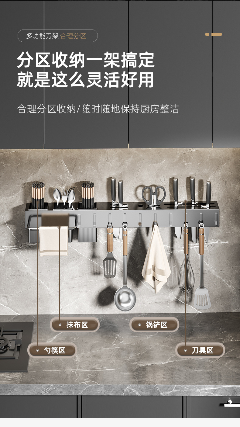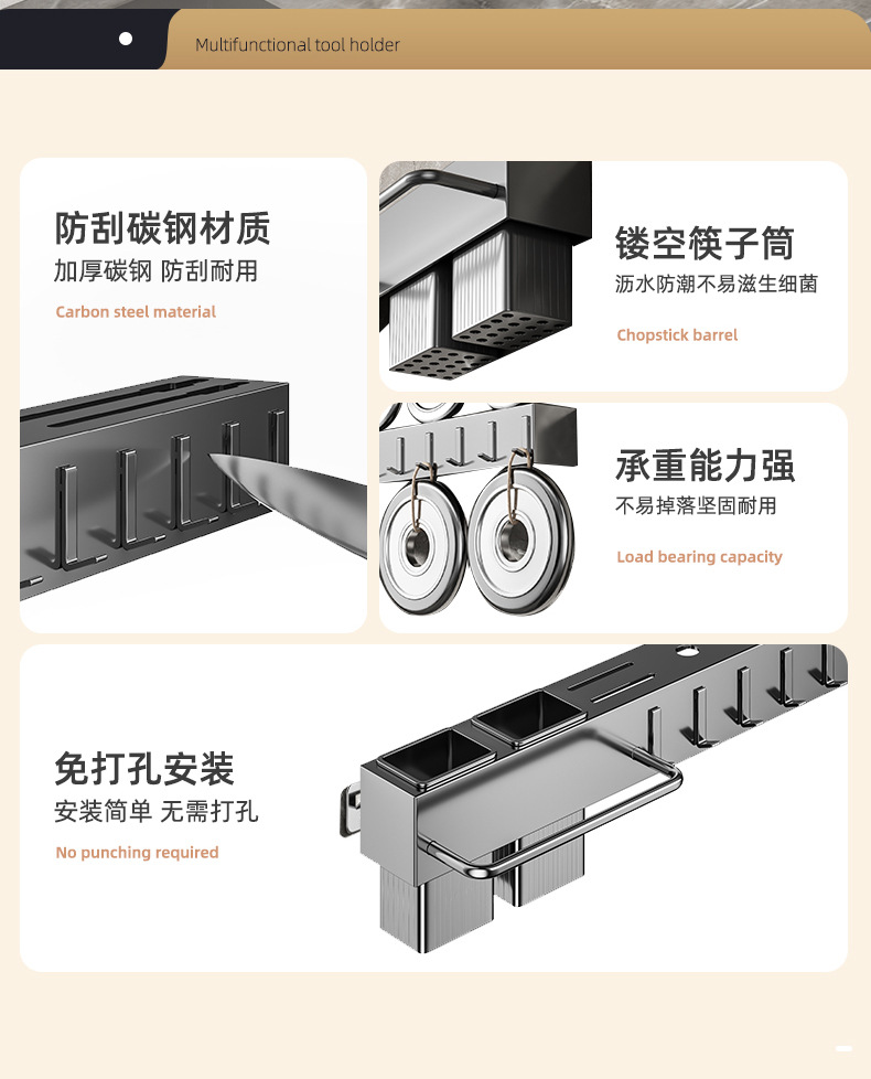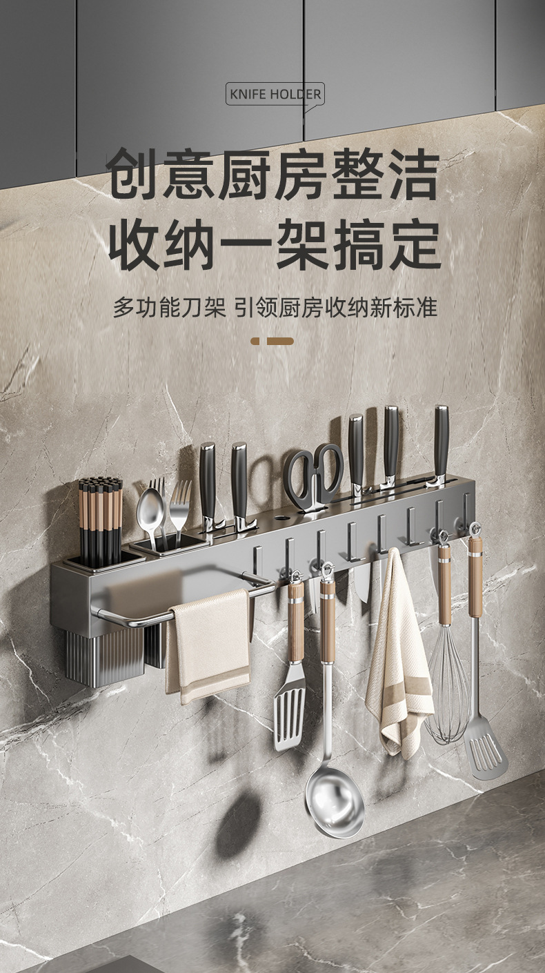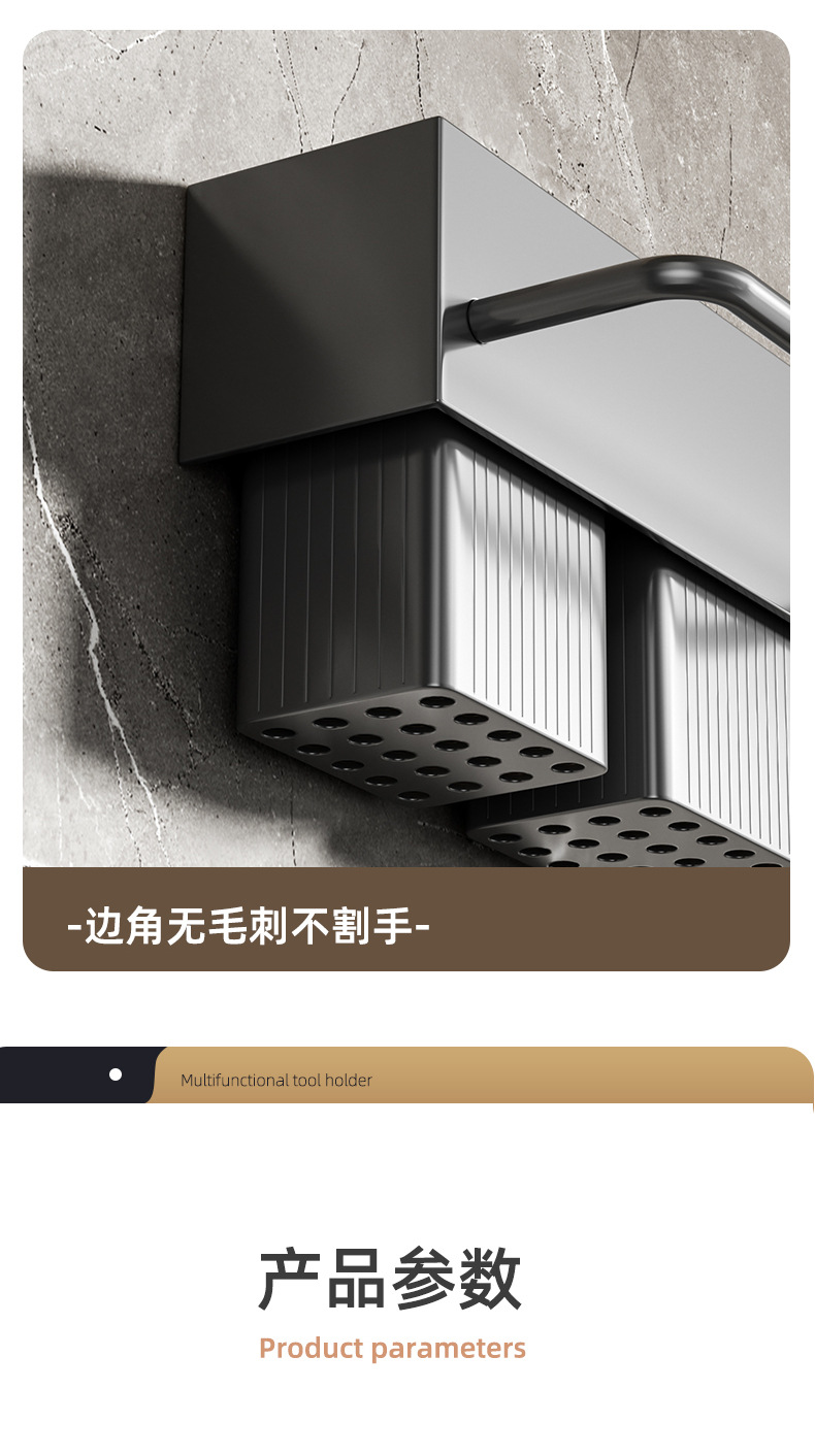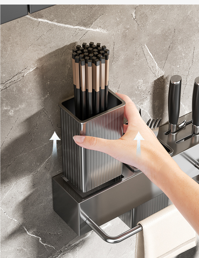 벽에 장착 된 다기능 나이프 홀더 펀치 프리 주방 나이프 홀더 젓가락 케이지 통합 주방 나이프 홀더 스토리지 랙