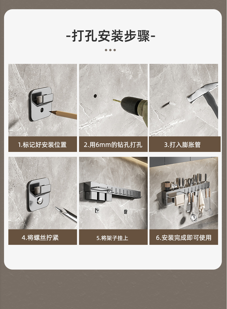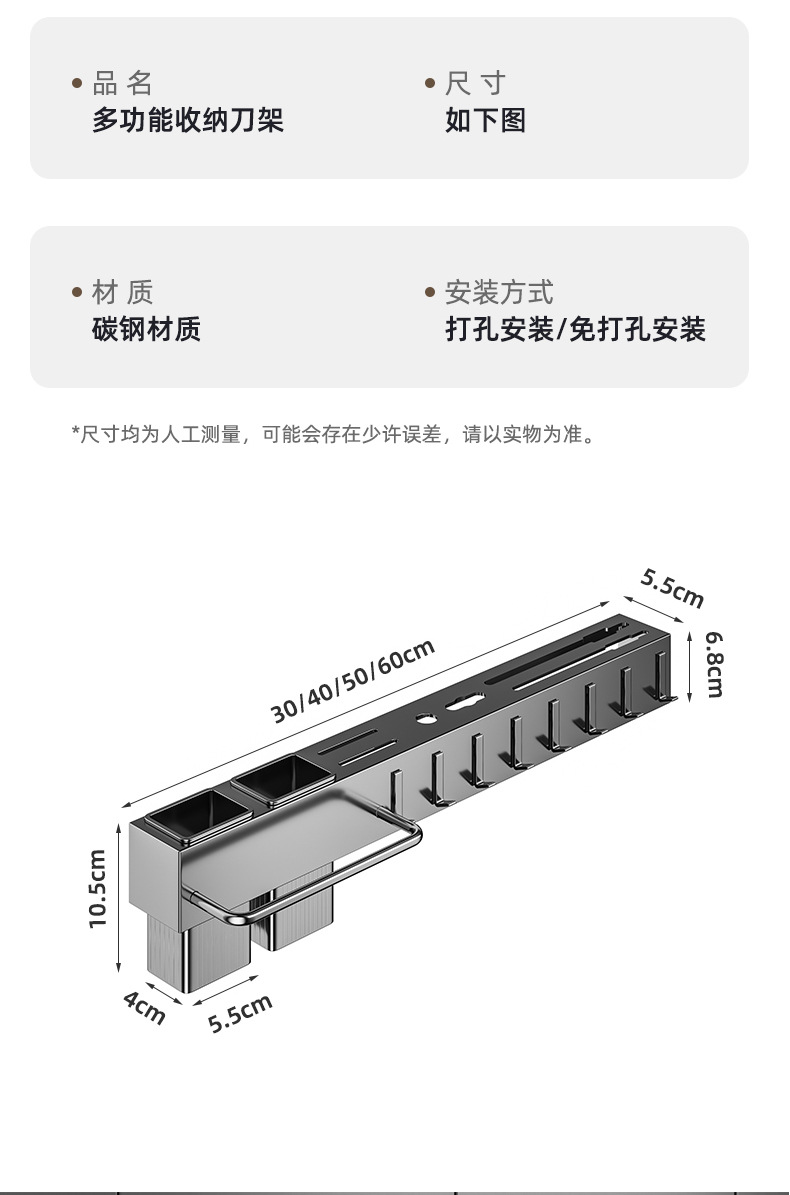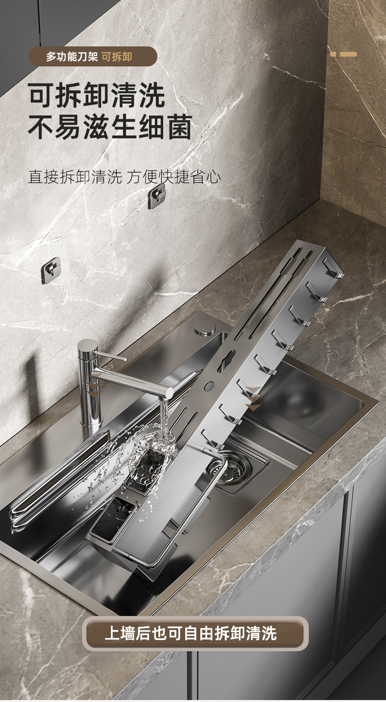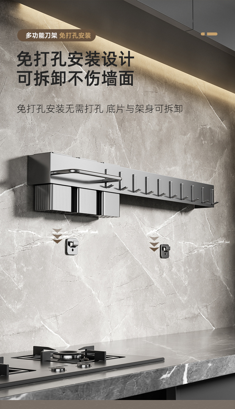 벽에 장착 된 다기능 나이프 홀더 펀치 프리 주방 나이프 홀더 젓가락 케이지 통합 주방 나이프 홀더 스토리지 랙
