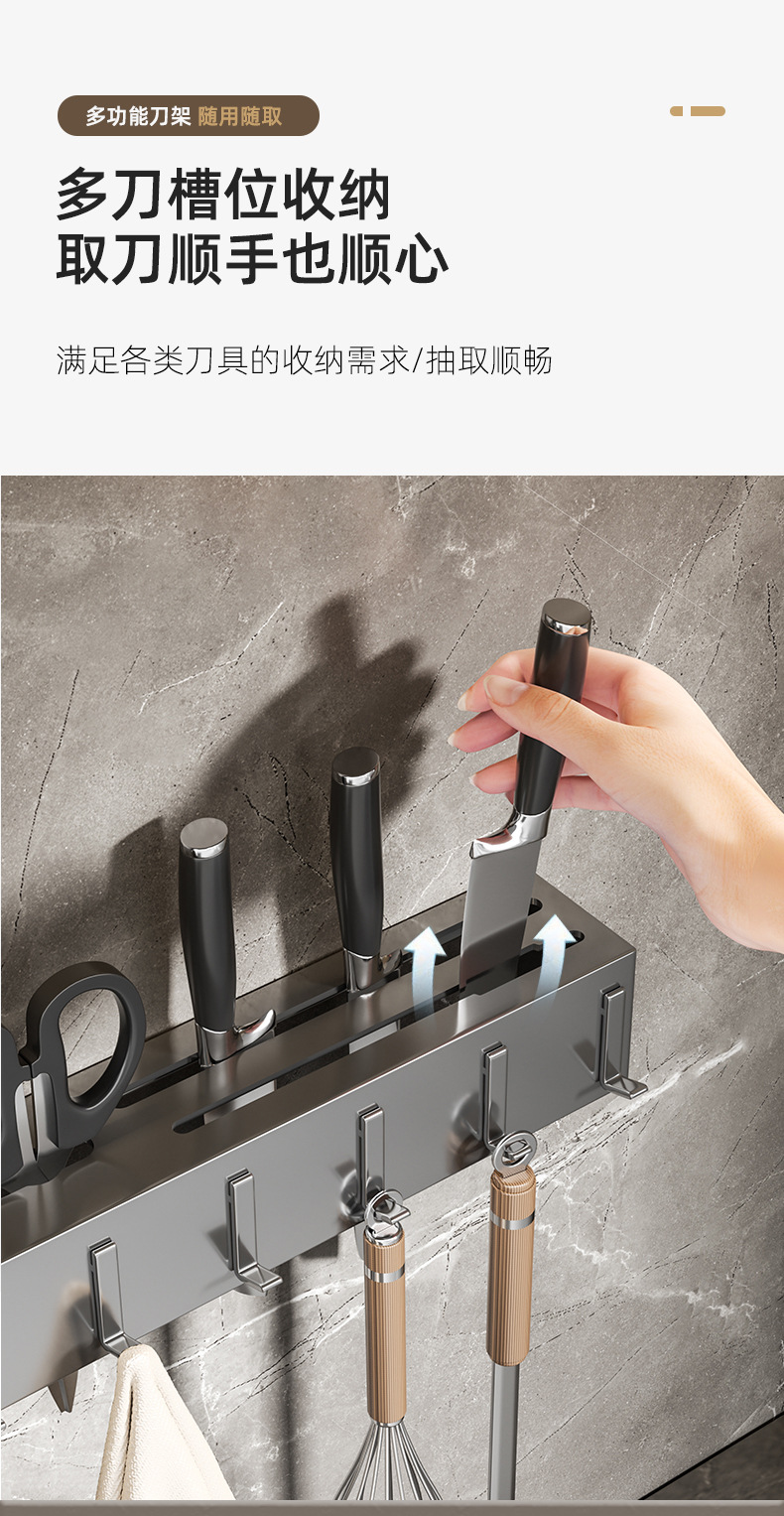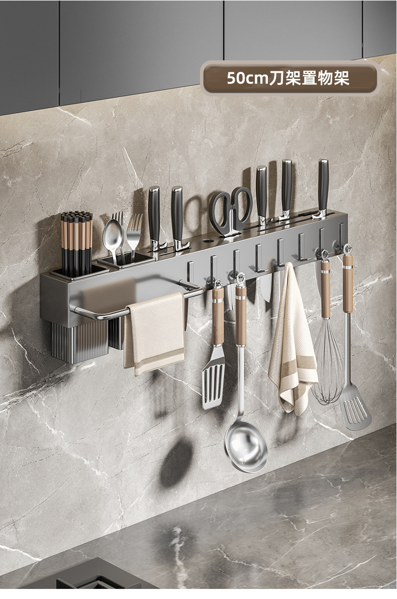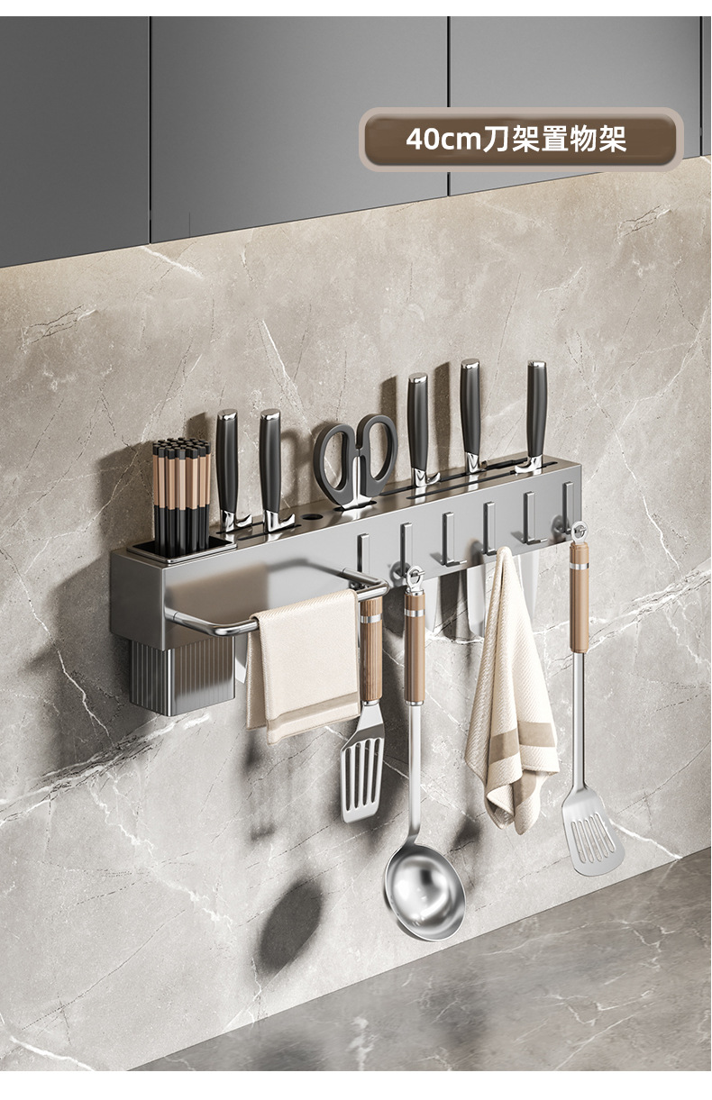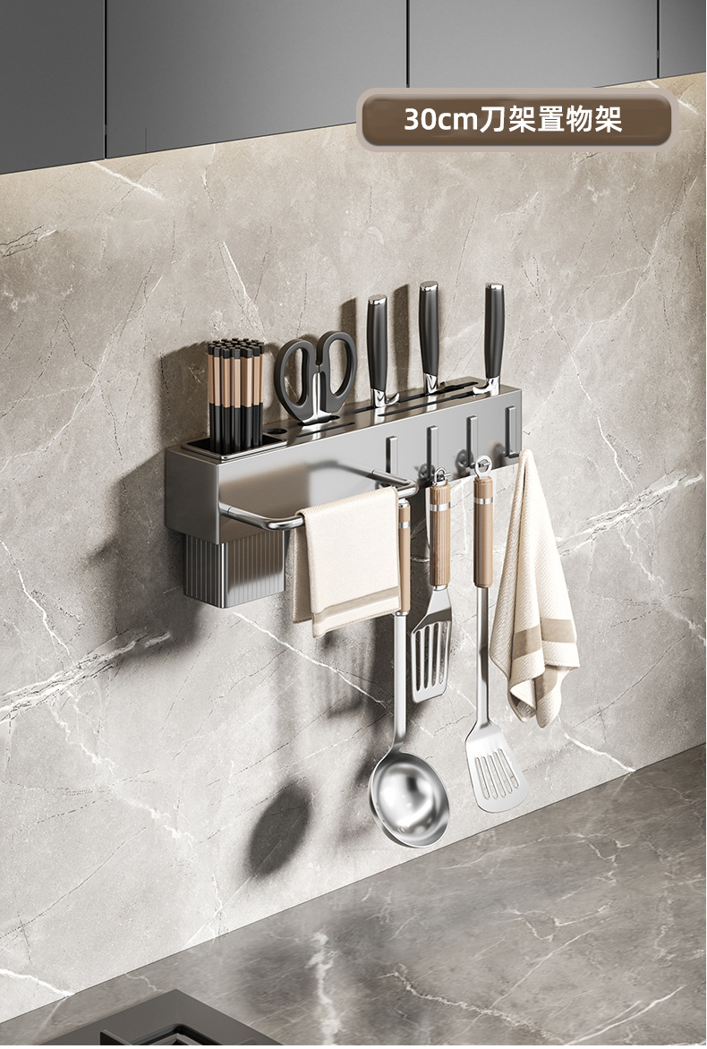 벽에 장착 된 다기능 나이프 홀더 펀치 프리 주방 나이프 홀더 젓가락 케이지 통합 주방 나이프 홀더 스토리지 랙스토어 가기
