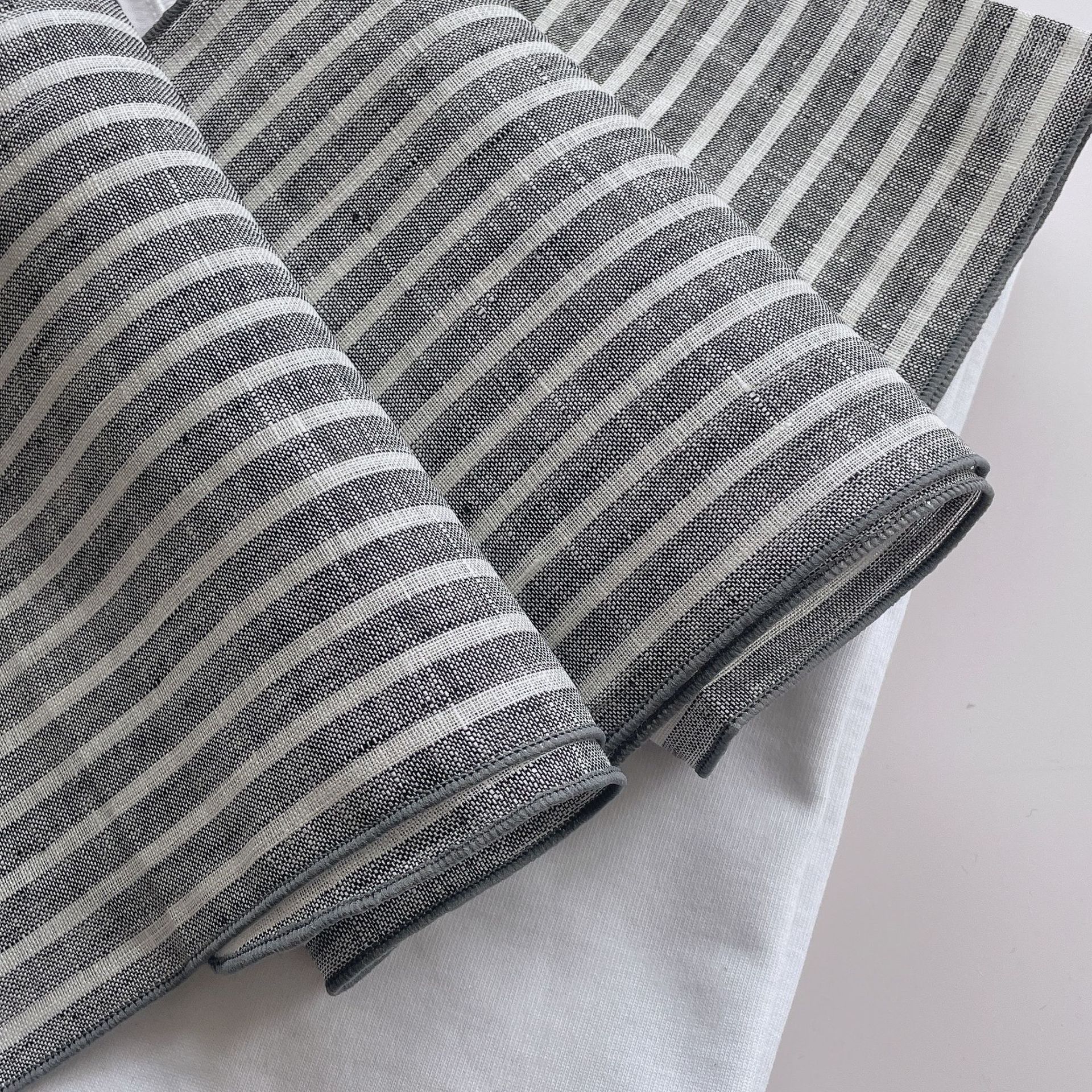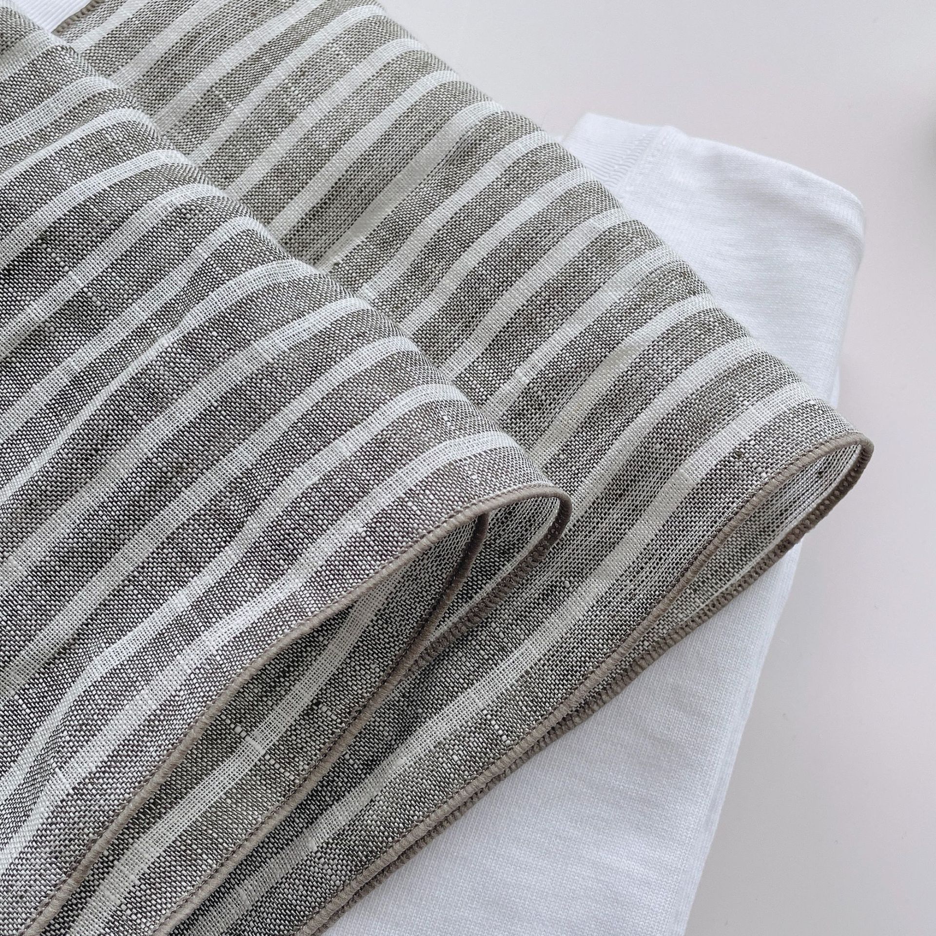 • 순수한 리넨 긴 수직 줄무늬 다크 그레이