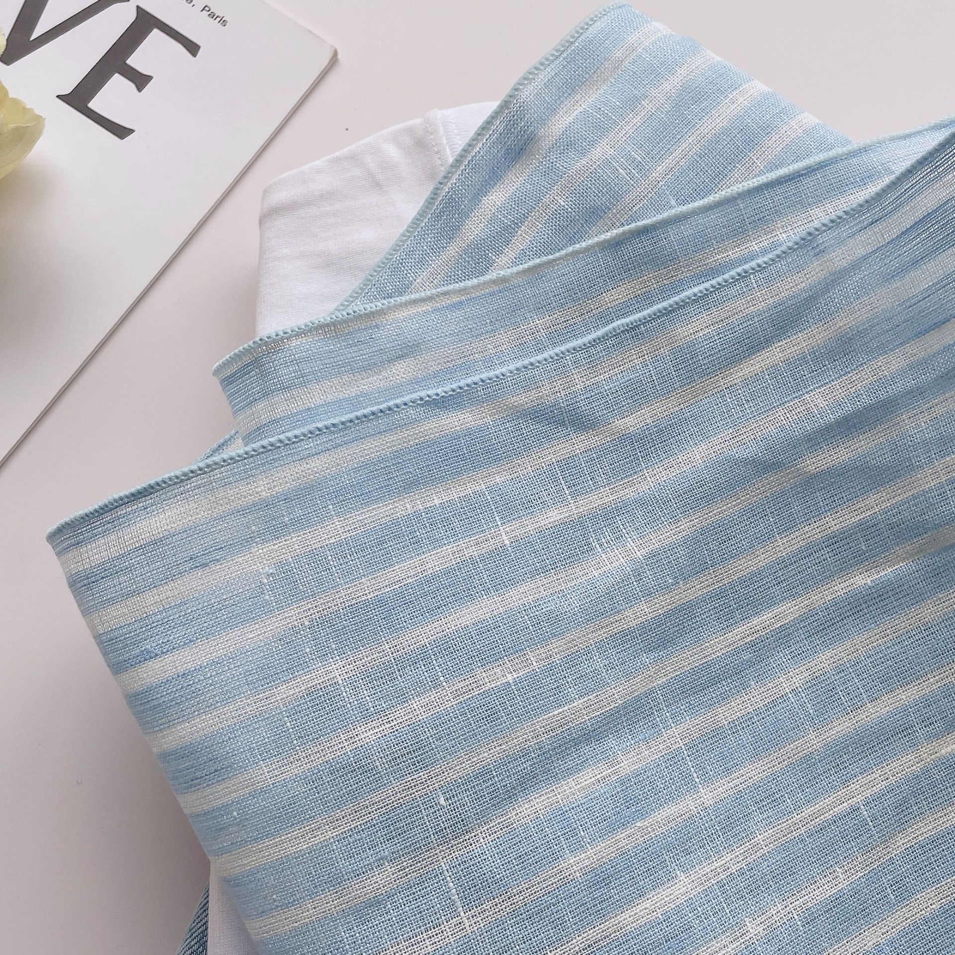 • 순수한 리넨 긴 수직 줄무늬 블루