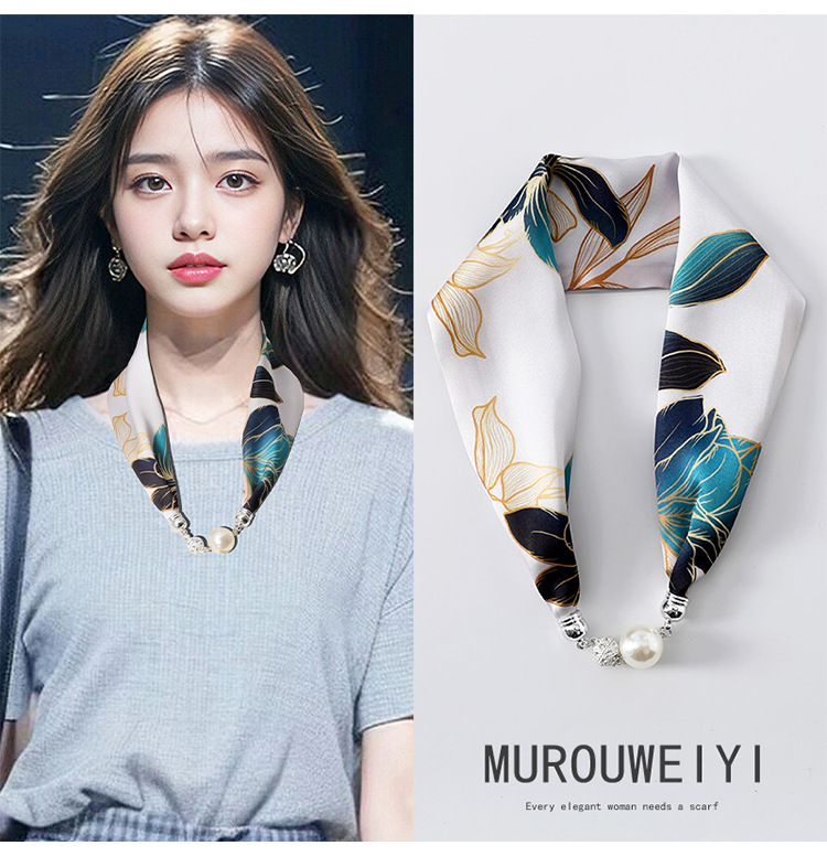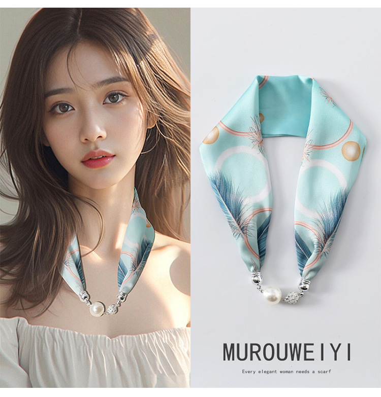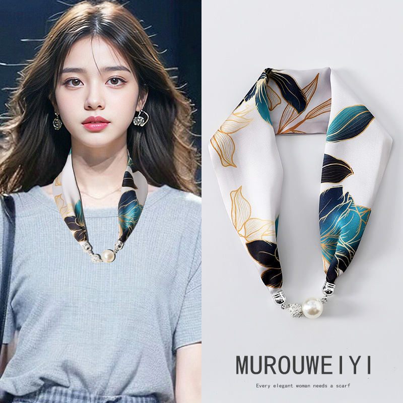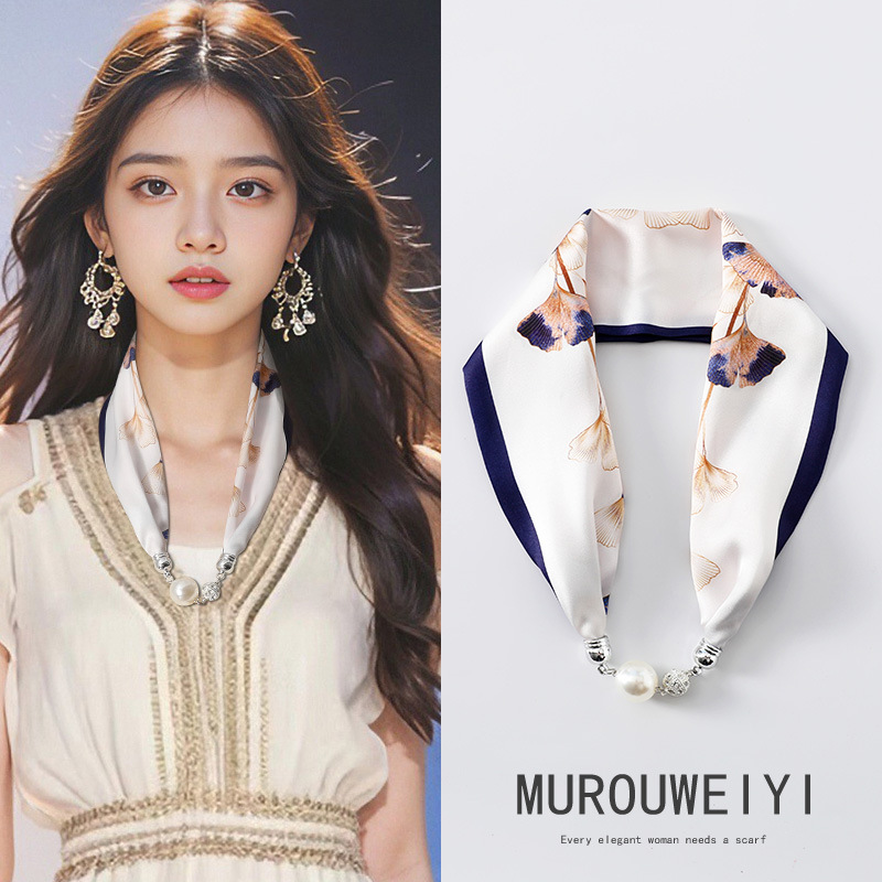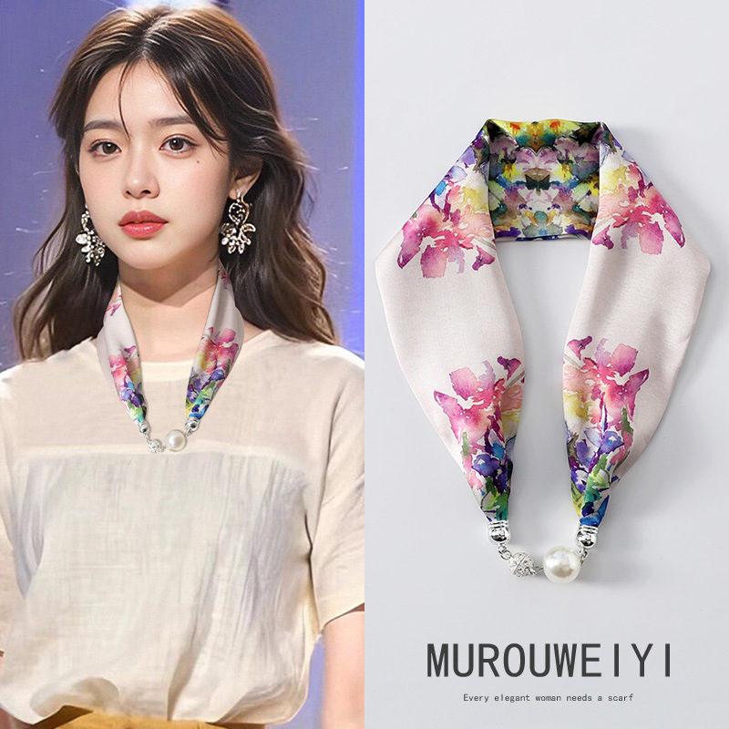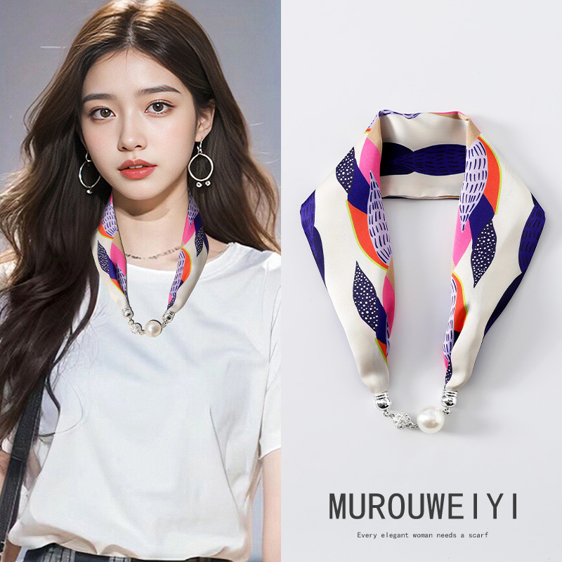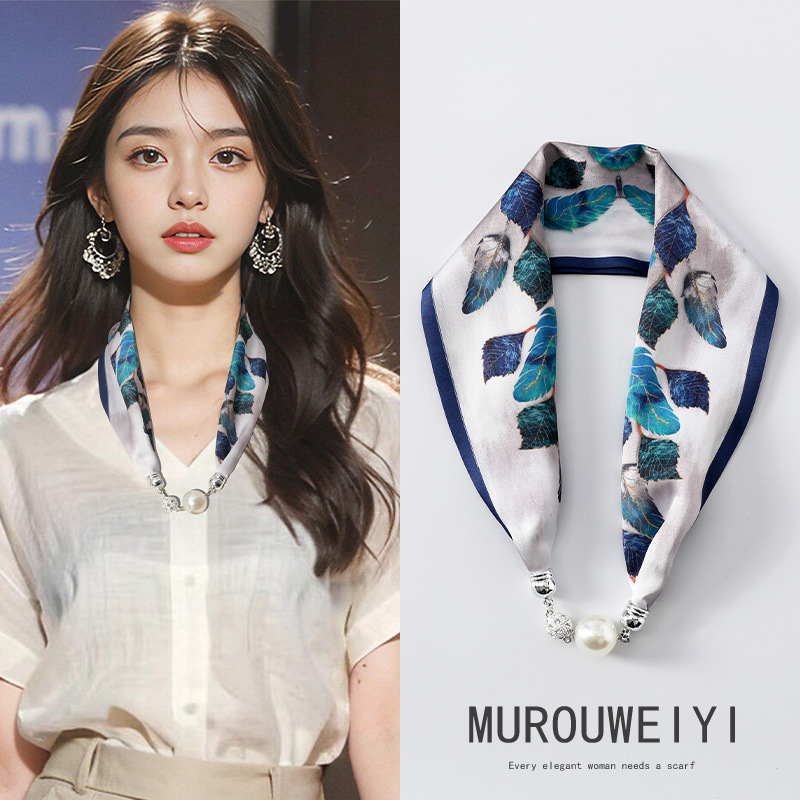 실크 스카프 2024 새로운 자석 버클 목걸이 그늘 아티팩트 여름 장식 목 흉터 목 패턴 목 보호 작은 스카프