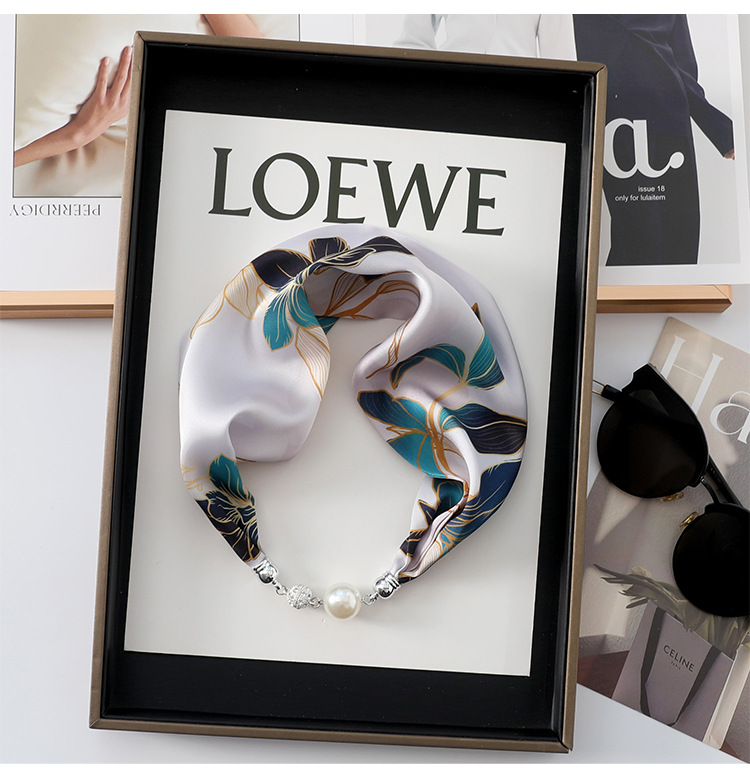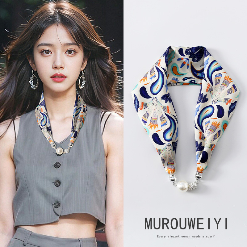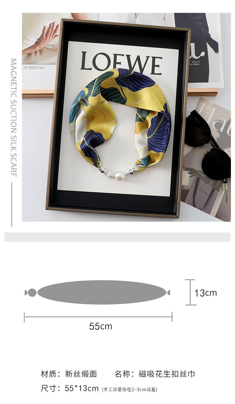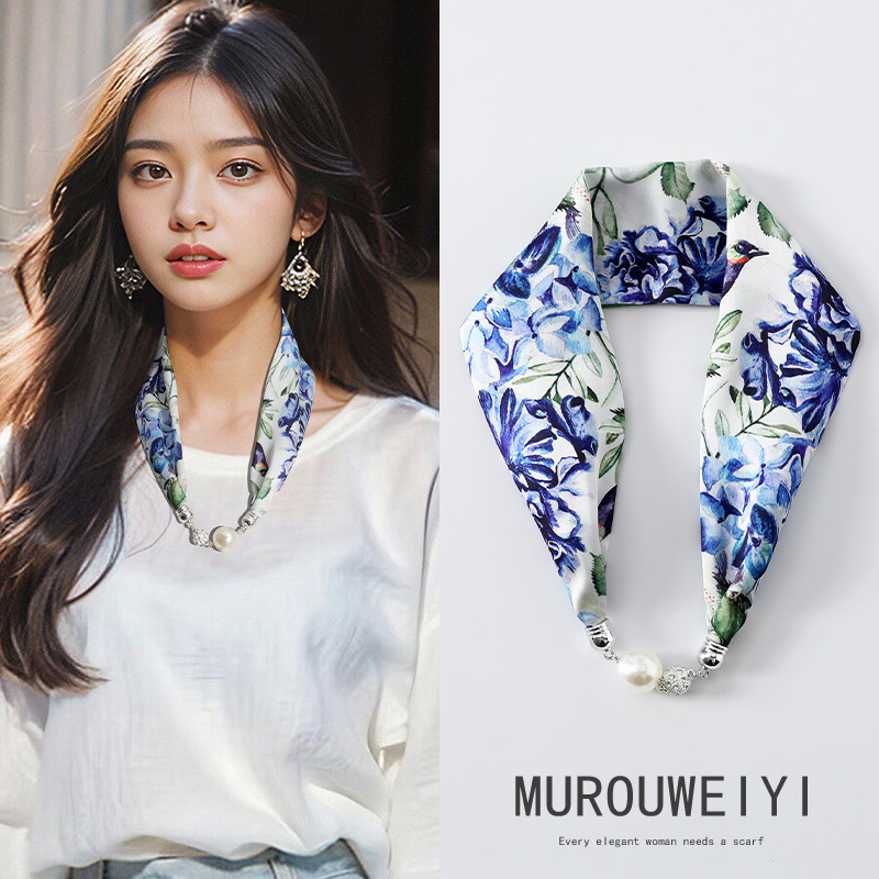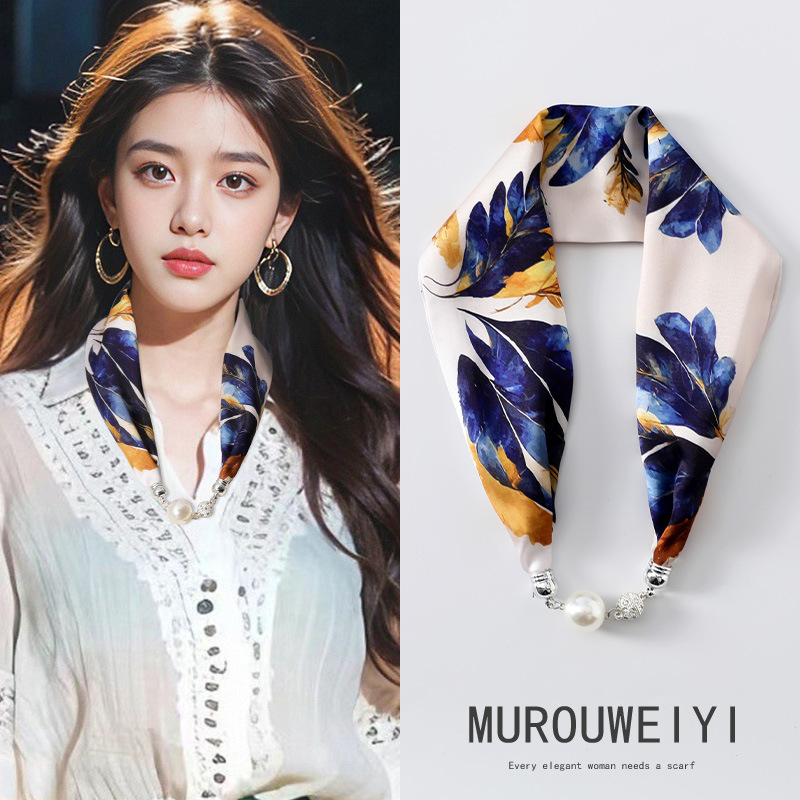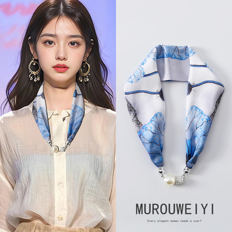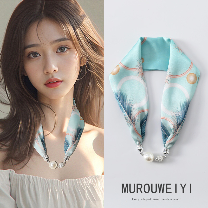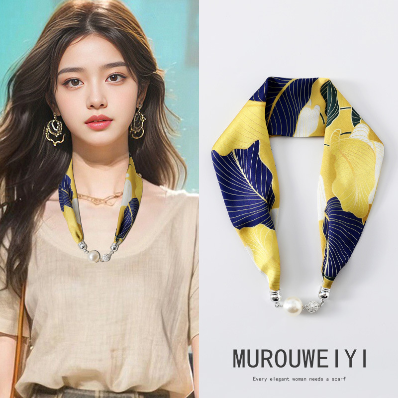 실크 스카프 2024 새로운 자석 버클 목걸이 그늘 아티팩트 여름 장식 목 흉터 목 패턴 목 보호 작은 스카프스토어 가기