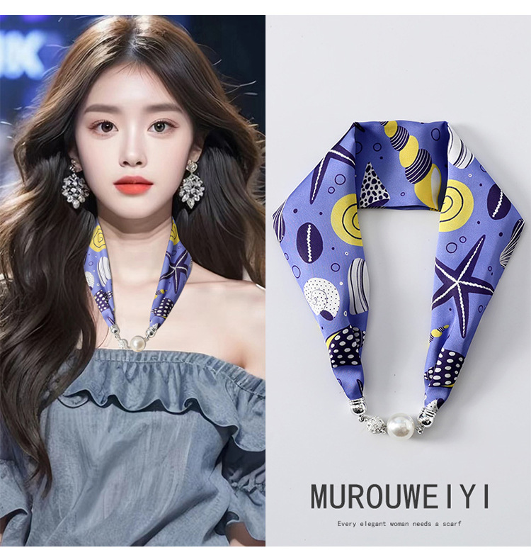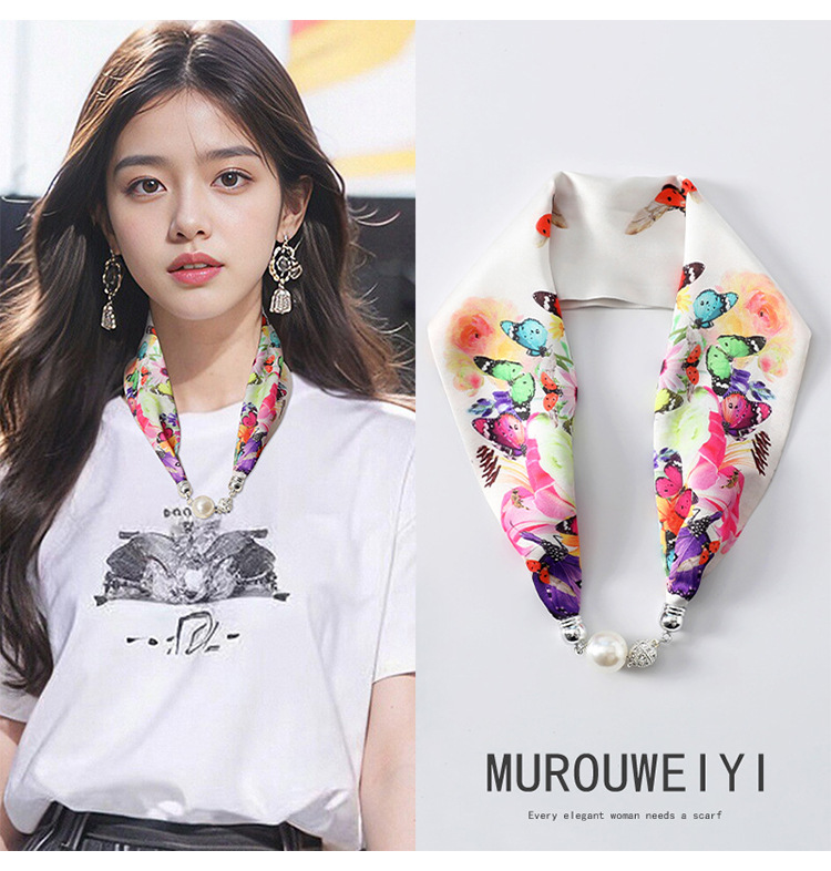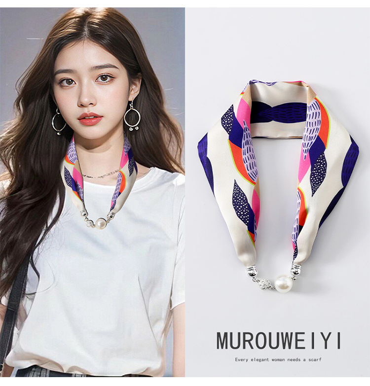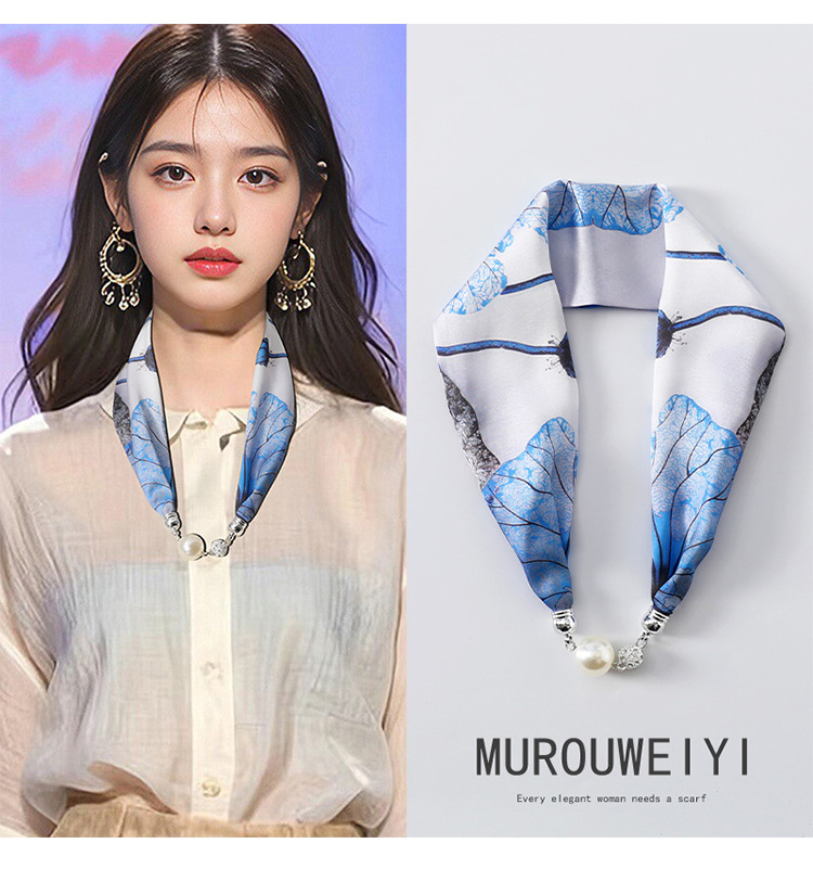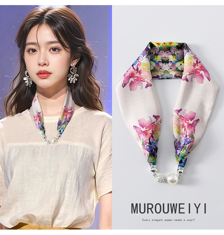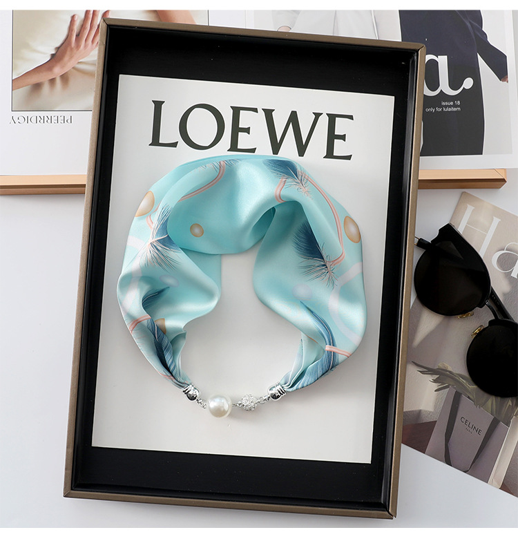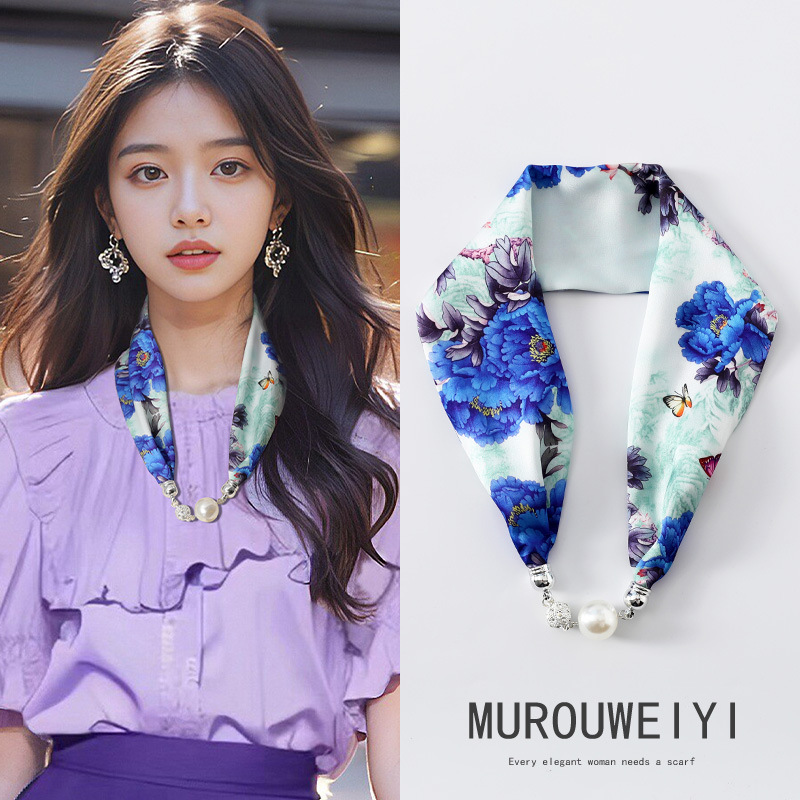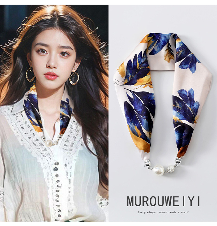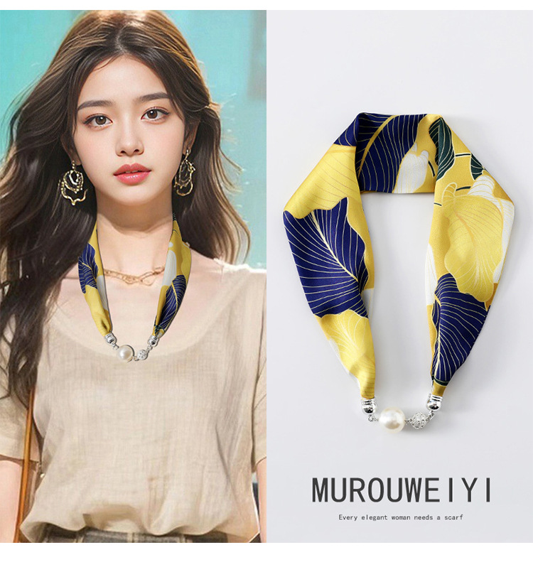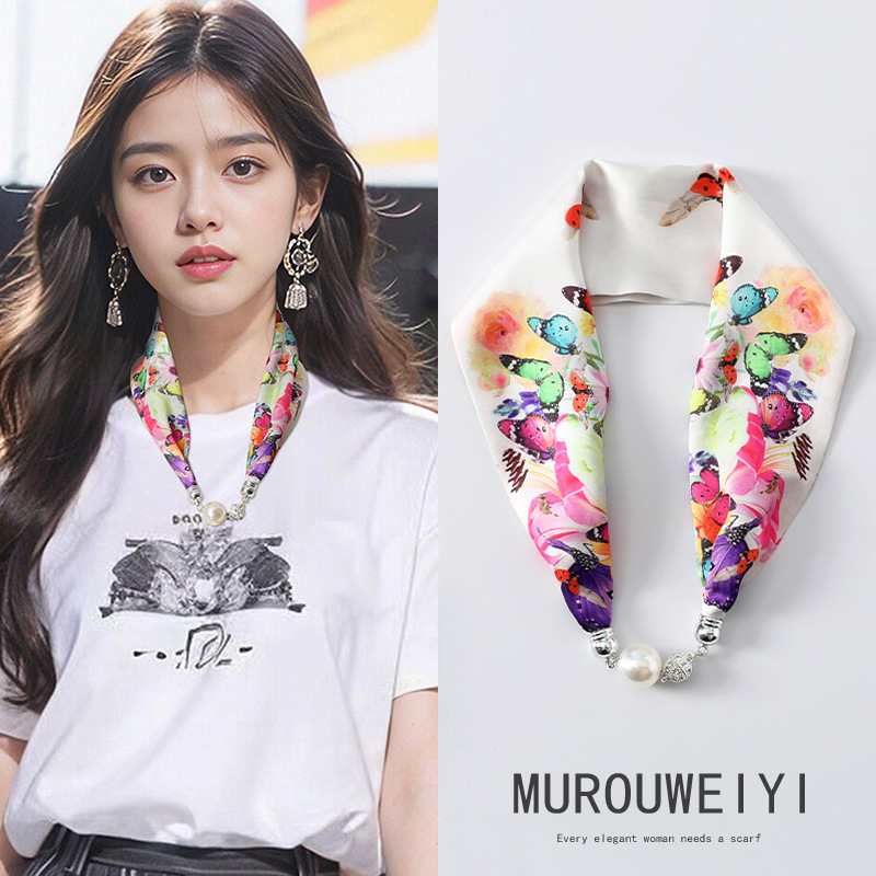 실크 스카프 2024 새로운 자석 버클 목걸이 그늘 아티팩트 여름 장식 목 흉터 목 패턴 목 보호 작은 스카프스토어 가기