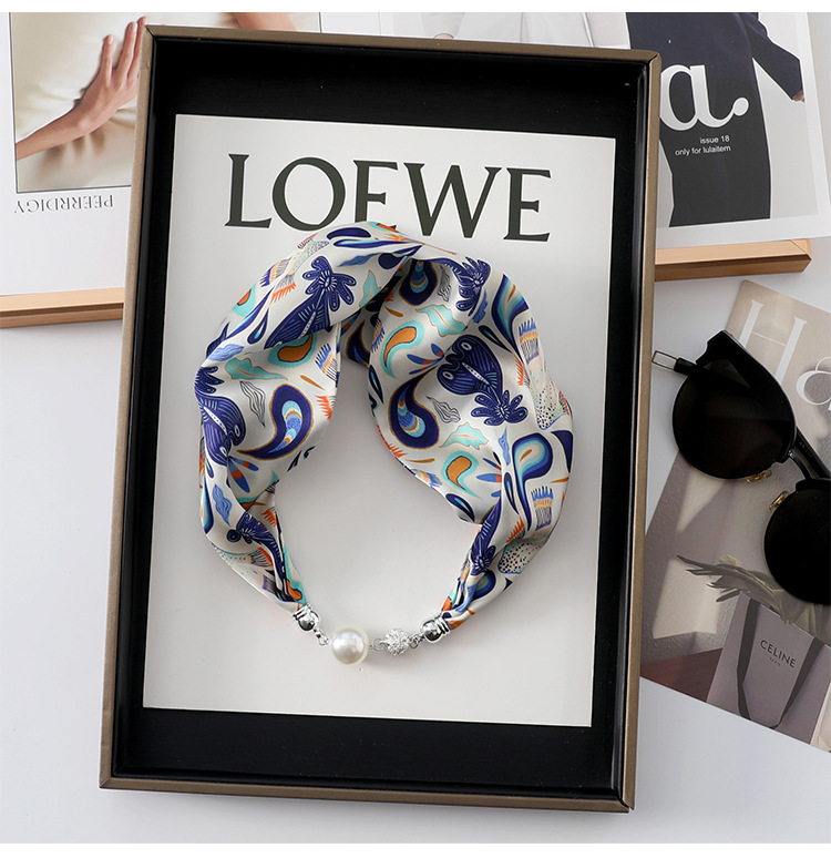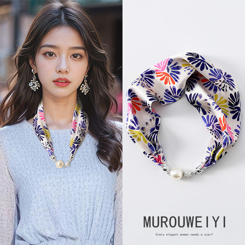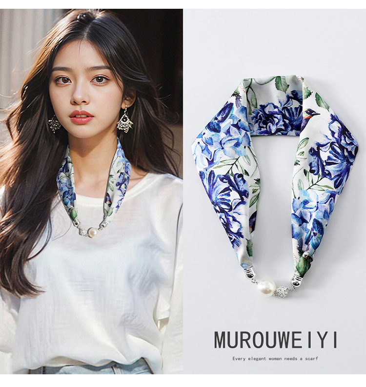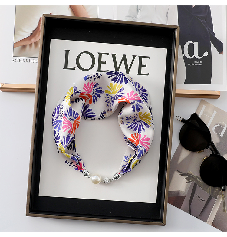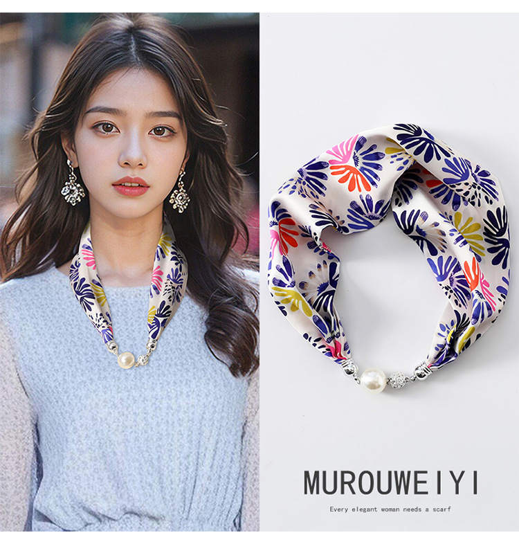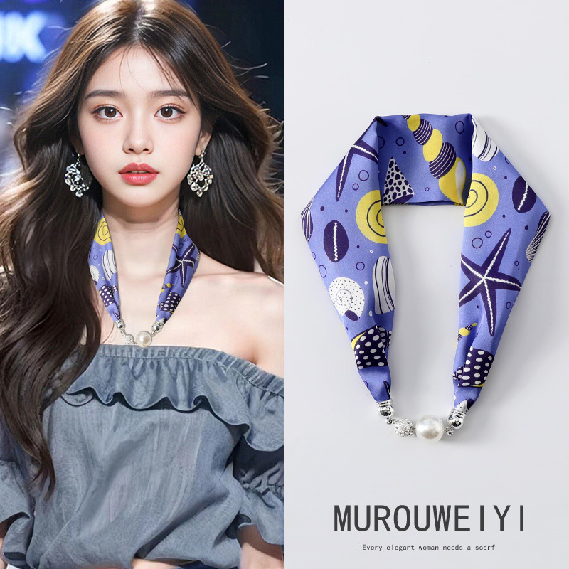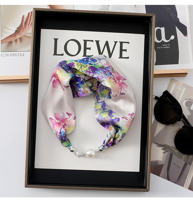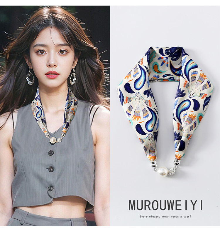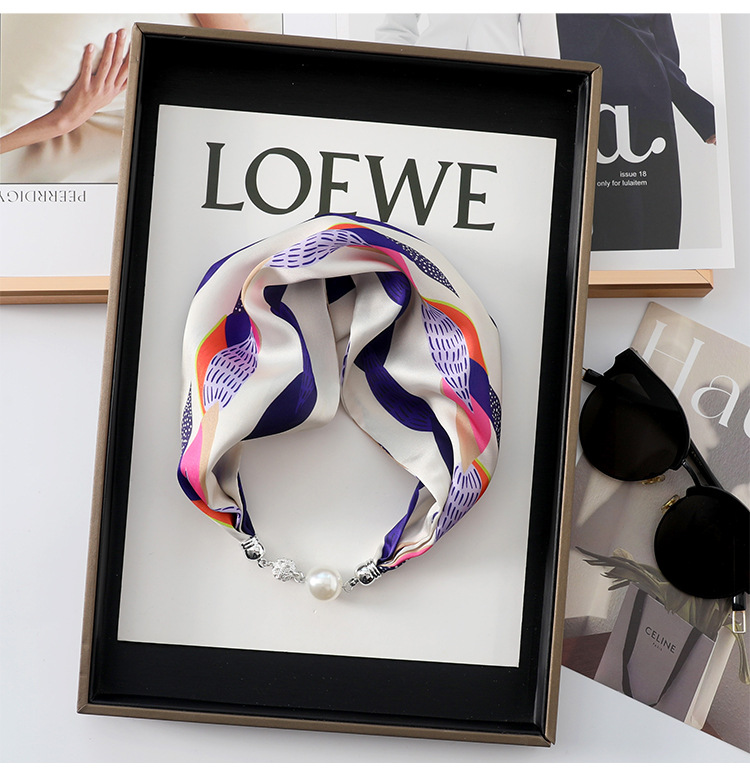 실크 스카프 2024 새로운 자석 버클 목걸이 그늘 아티팩트 여름 장식 목 흉터 목 패턴 목 보호 작은 스카프스토어 가기