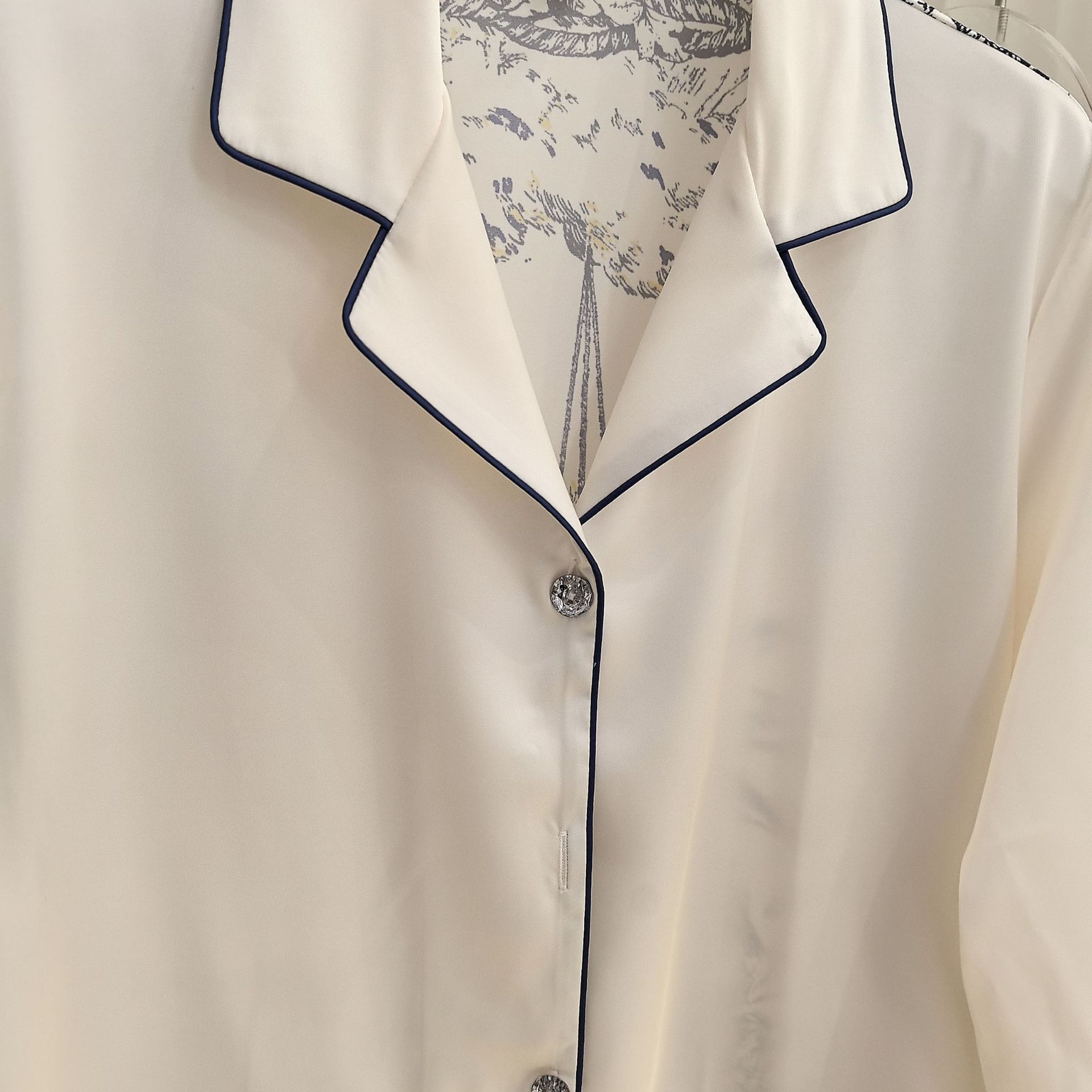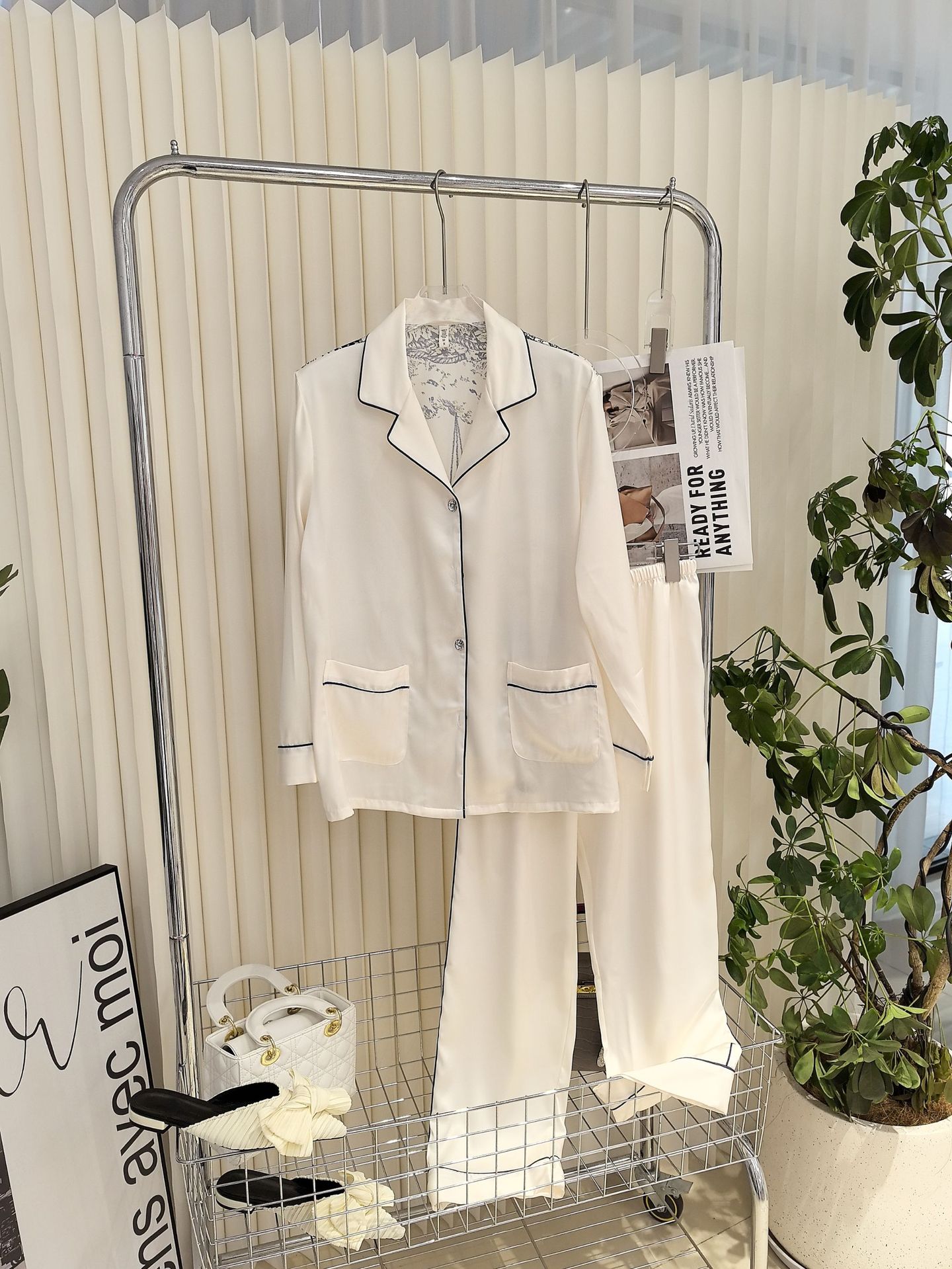 아이스 실크 파자마 여성 여름 반팔 얇은 느슨한 큰 브랜드 긴팔 여성 홈 세트 하이 엔드 투피스 세트스토어 가기