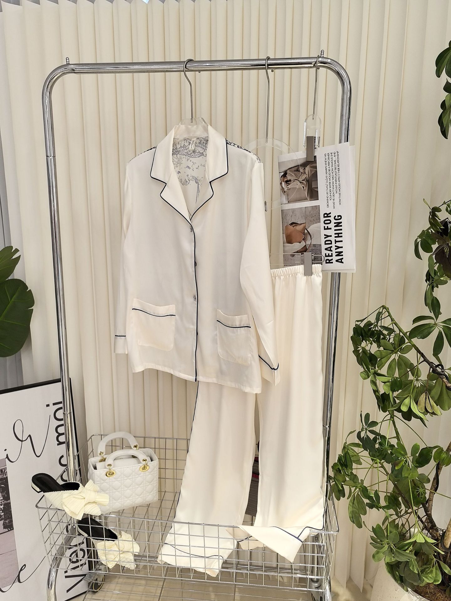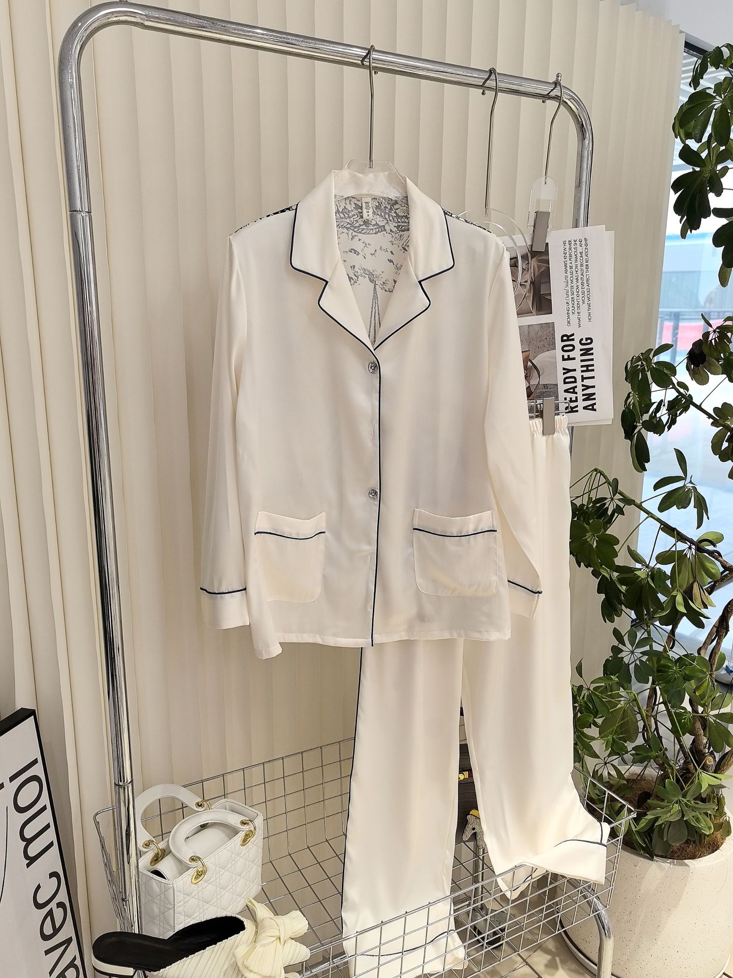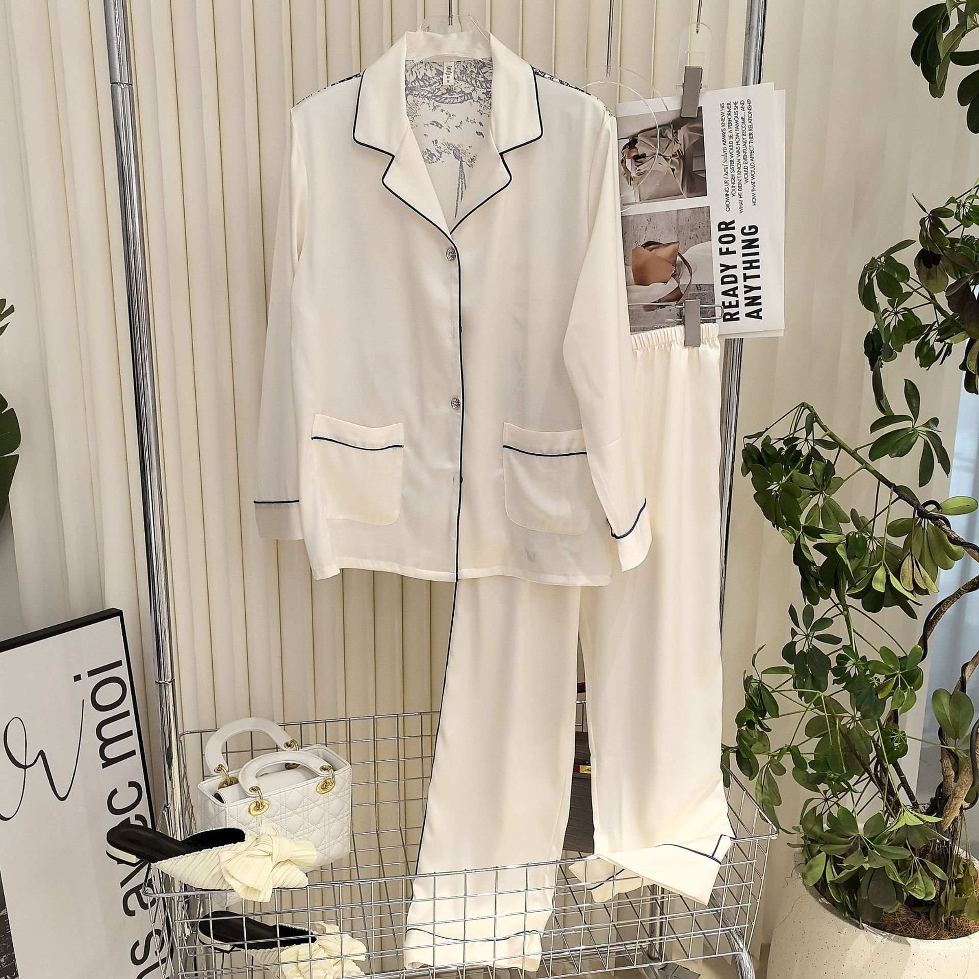 아이스 실크 파자마 여성 여름 반팔 얇은 느슨한 큰 브랜드 긴팔 여성 홈 세트 하이 엔드 투피스 세트